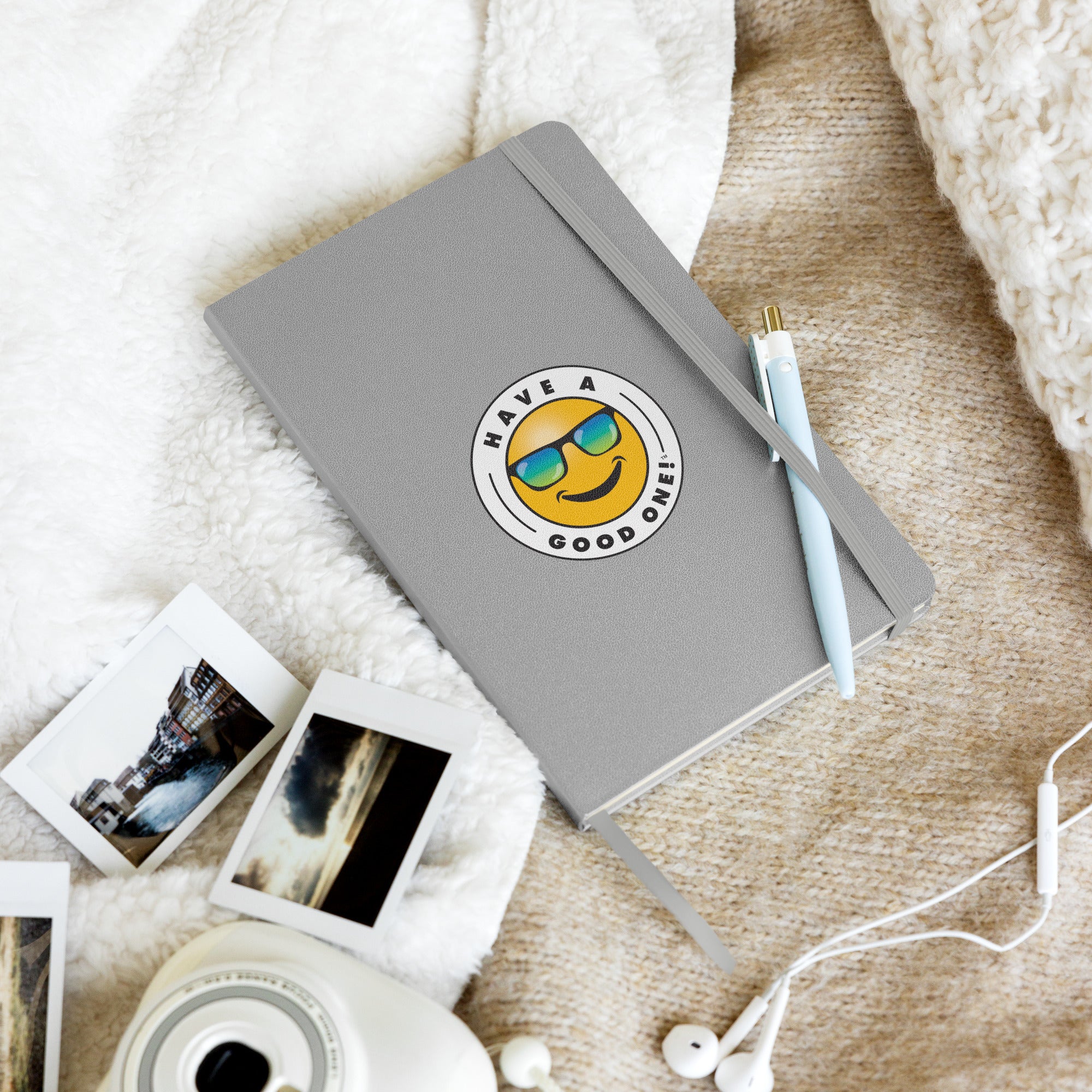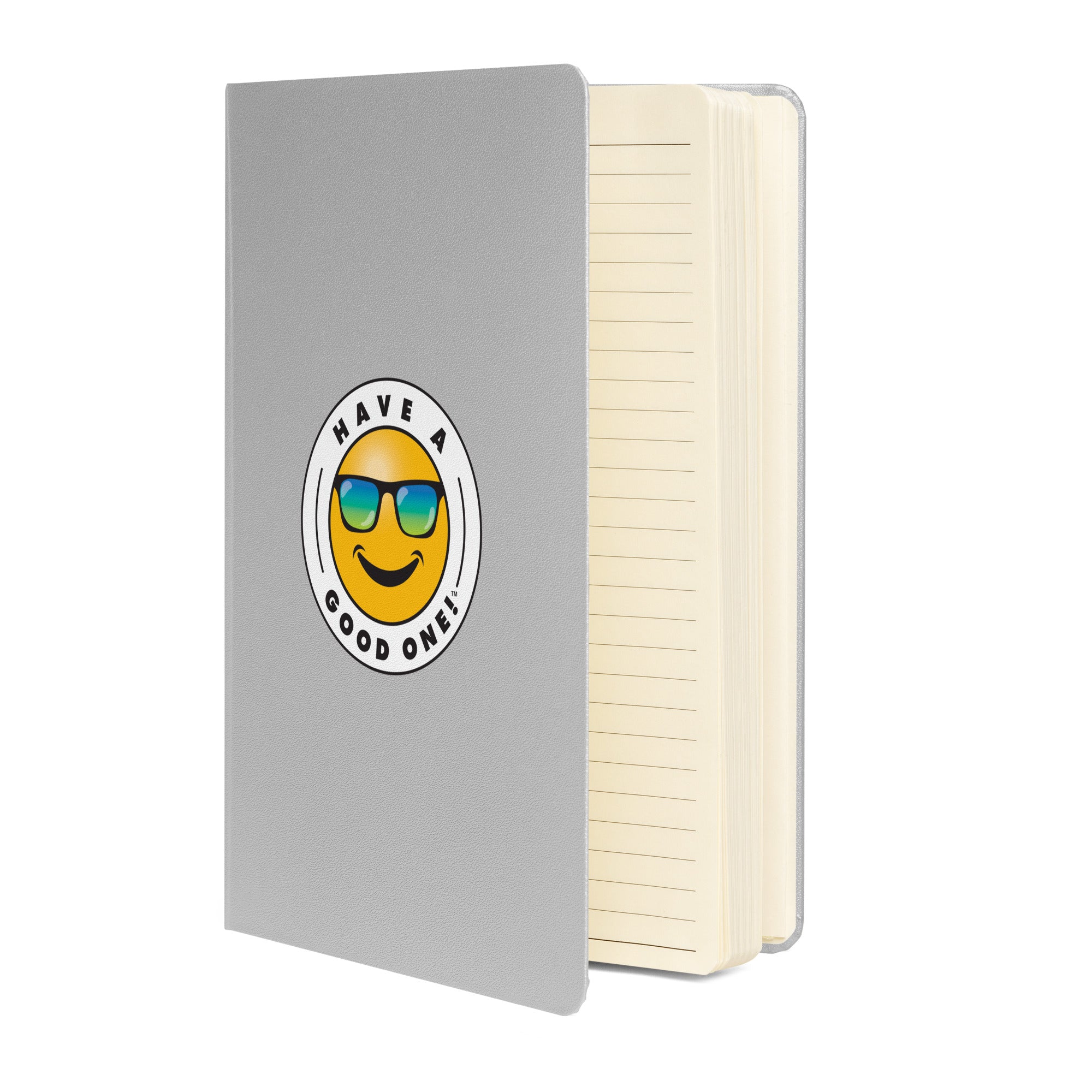 Fun Hardcover Bound Journal With Lines - Silver Color With Blue and Green Have A Good One! Logo