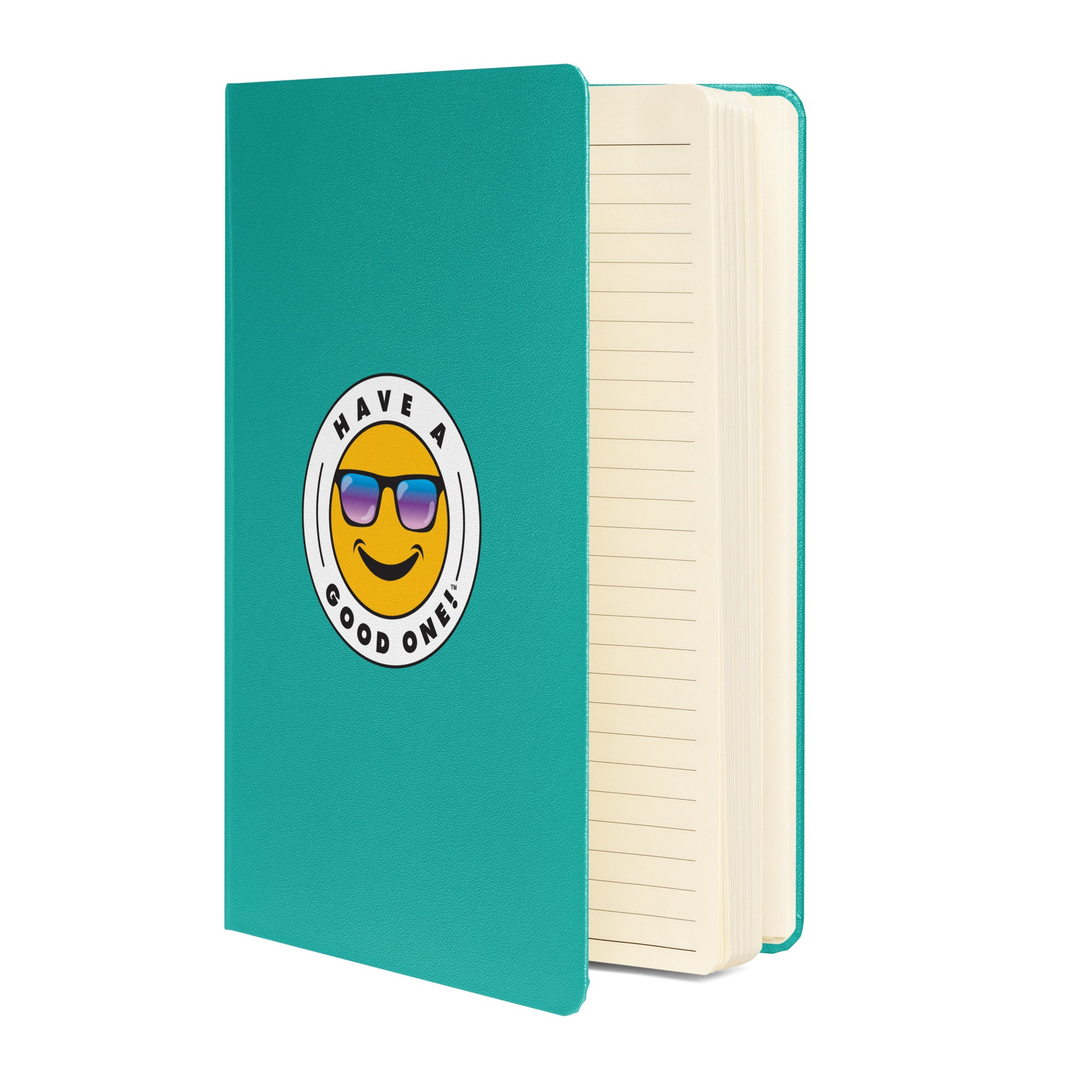 Fun Hardcover Bound Journal With Lines - Turquoise Color With Blue and Purple Have A Good One! Logo