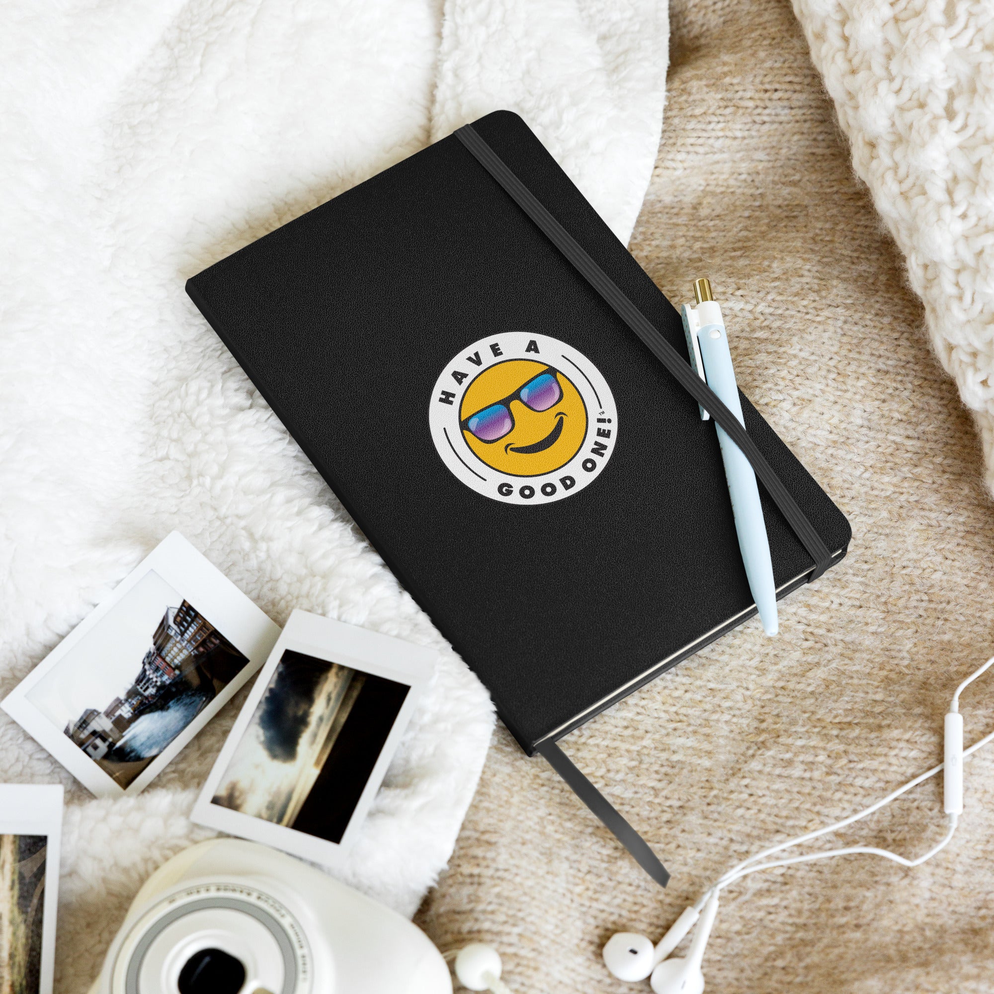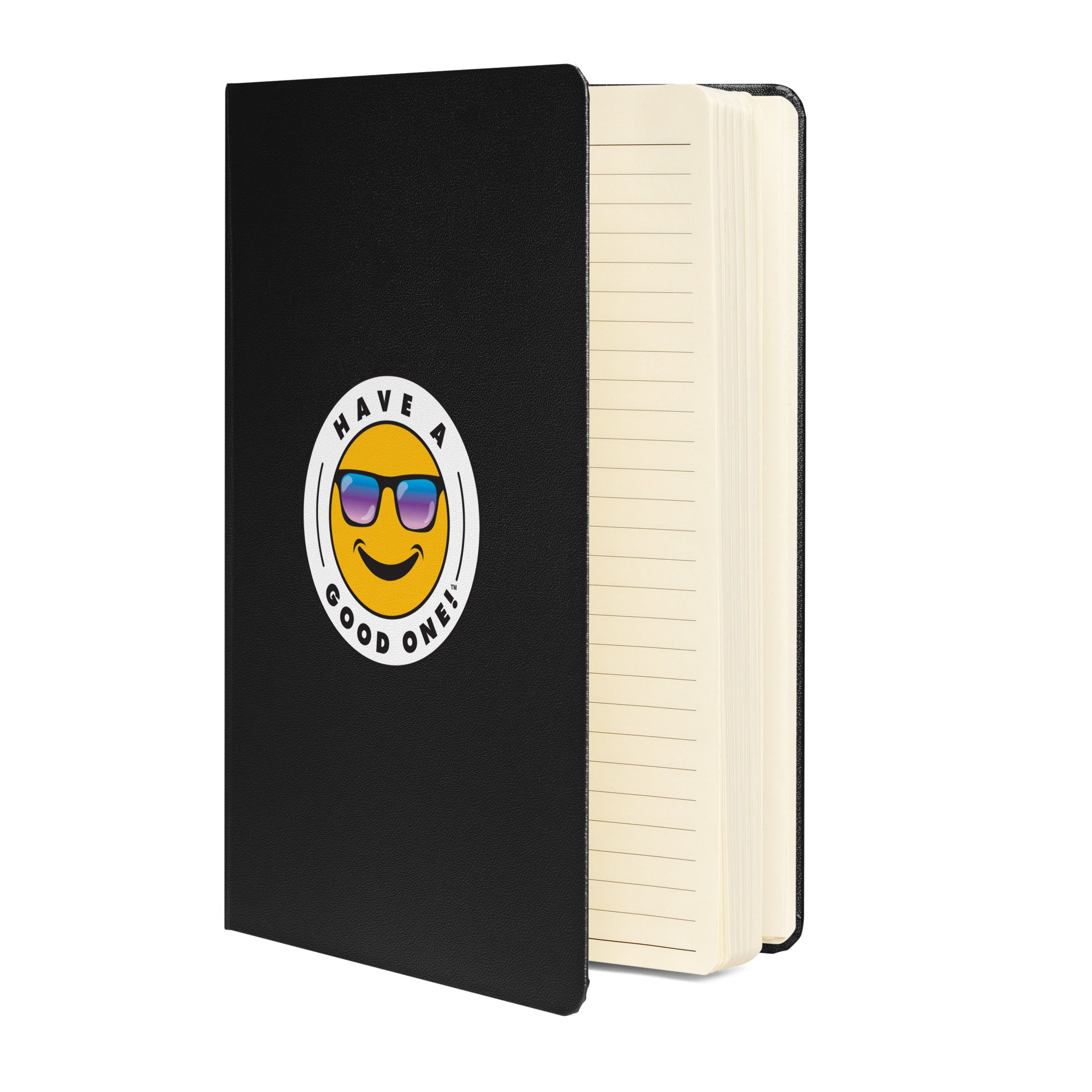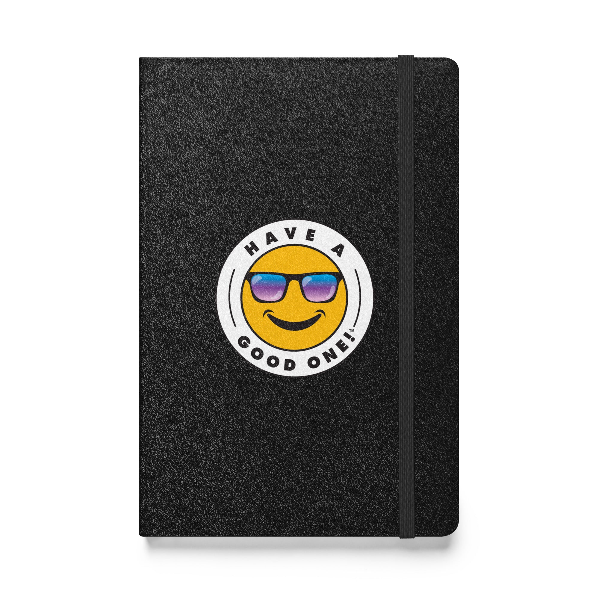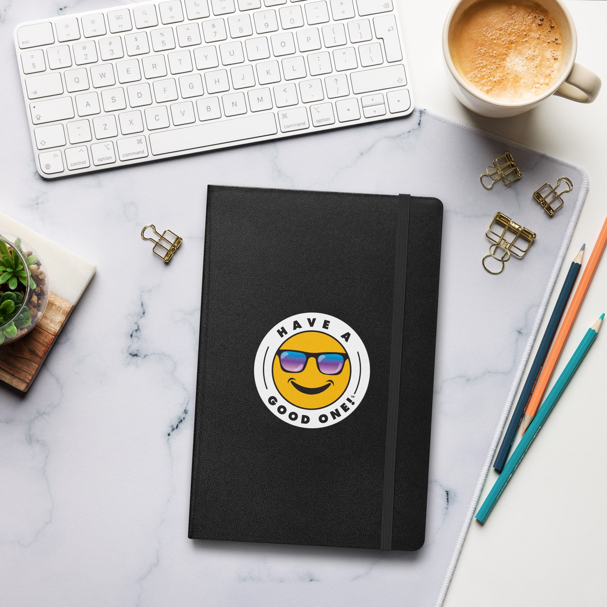 Fun Hardcover Bound Journal With Lines - Black Color With Blue and Purple Have A Good One! Logo