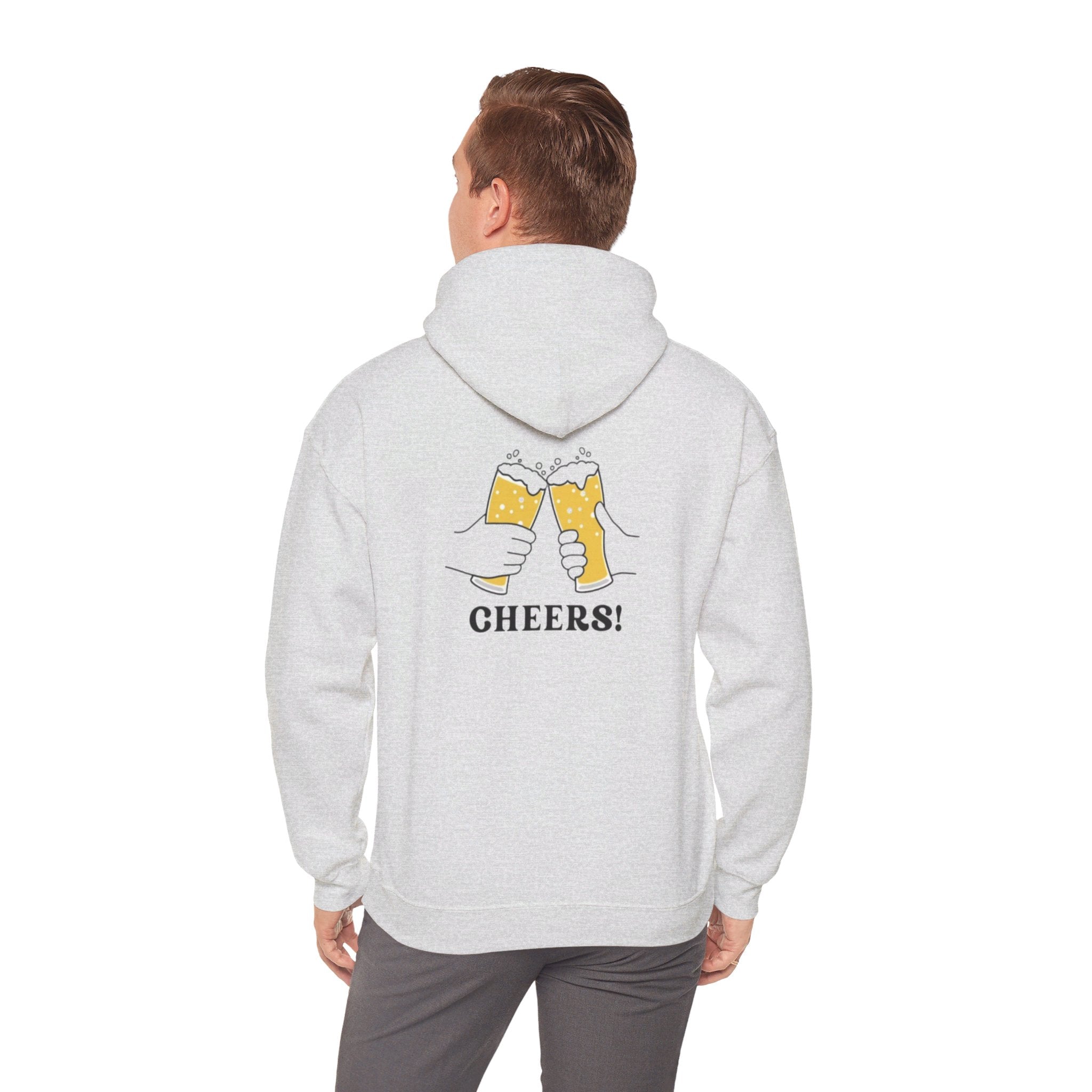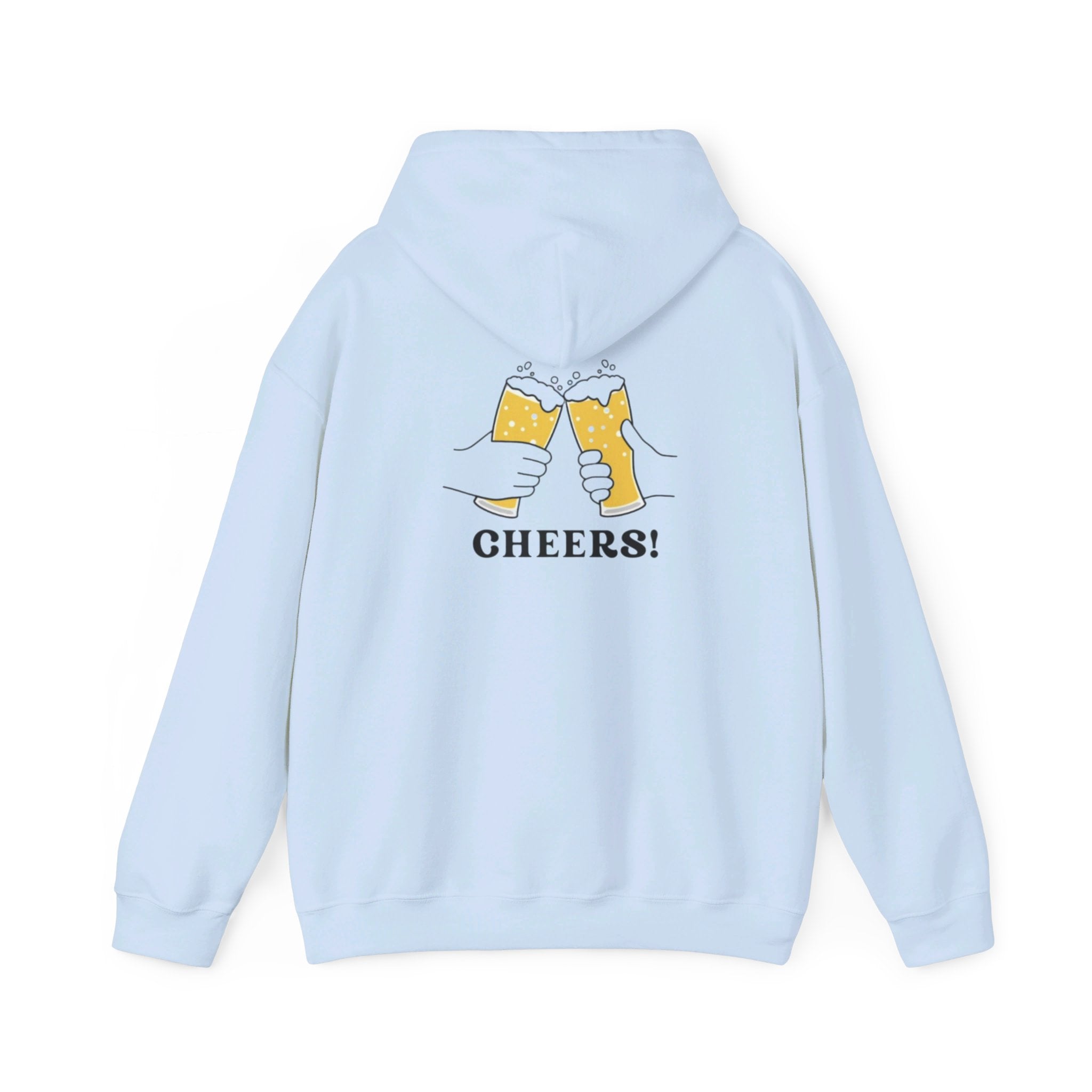 Unisex Heavy Blend Hooded Sweatshirt - Blue Green Logo Front and Beers With CHEERS! on Back of Sweatshirt