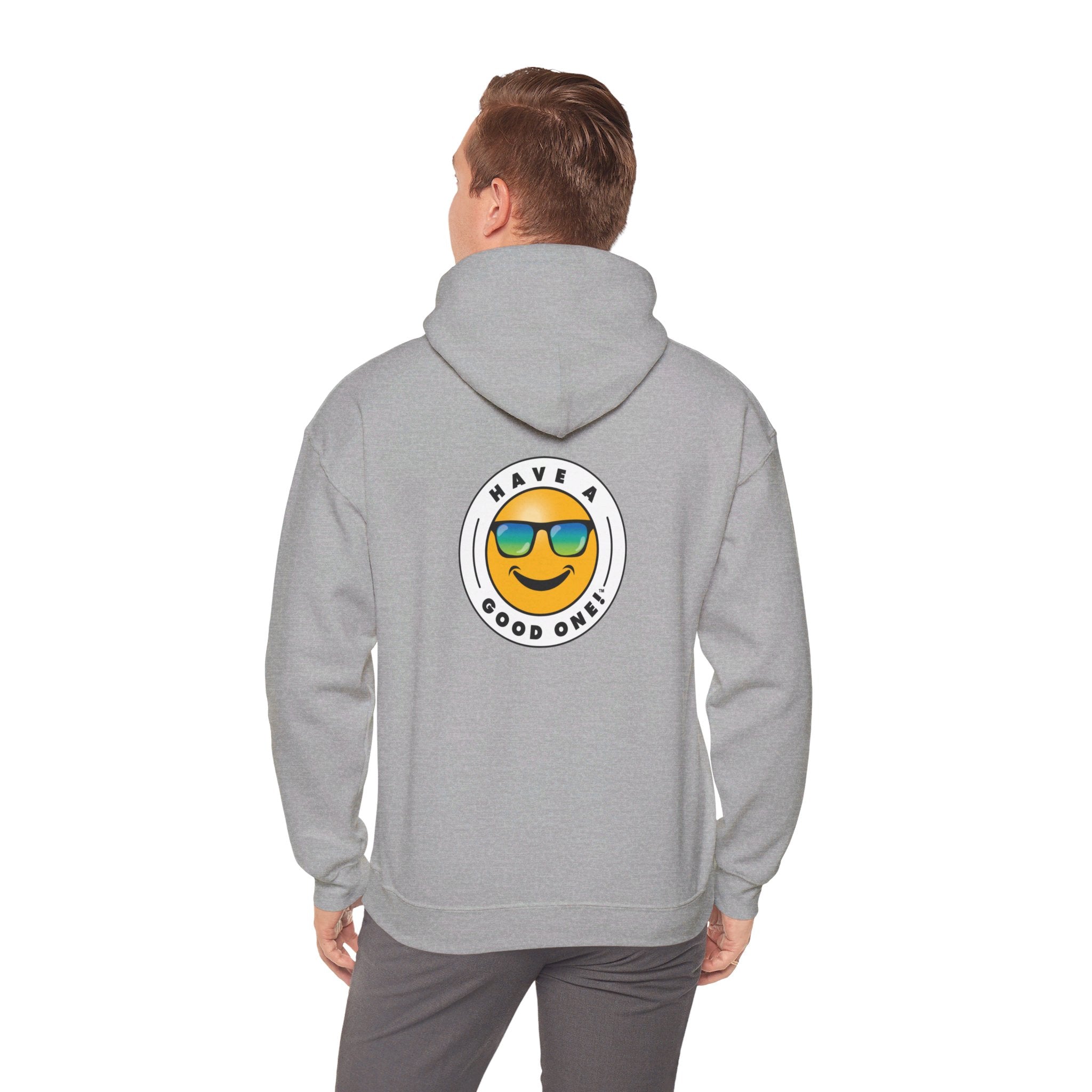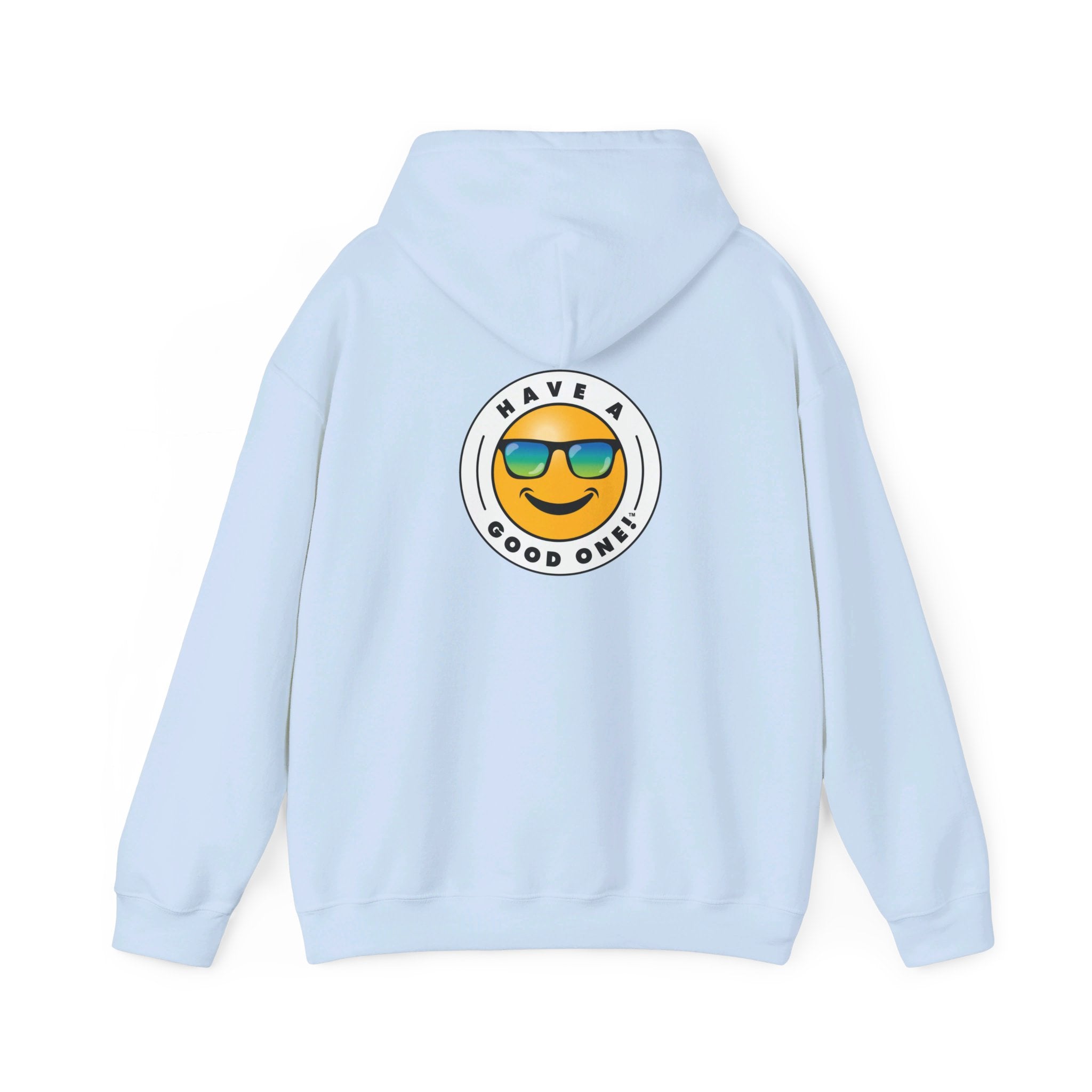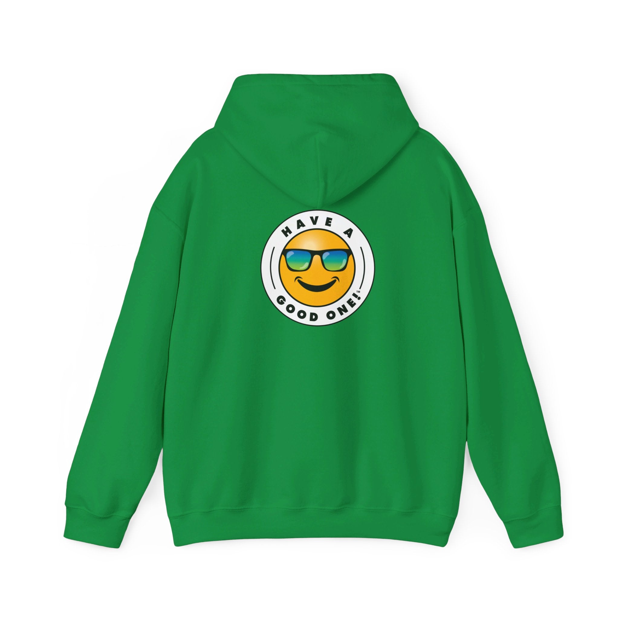 Unisex Heavy Blend Hooded Sweatshirt - Blue Green Logo on Front with Have A Good One! Logo on Back of Sweatshirt