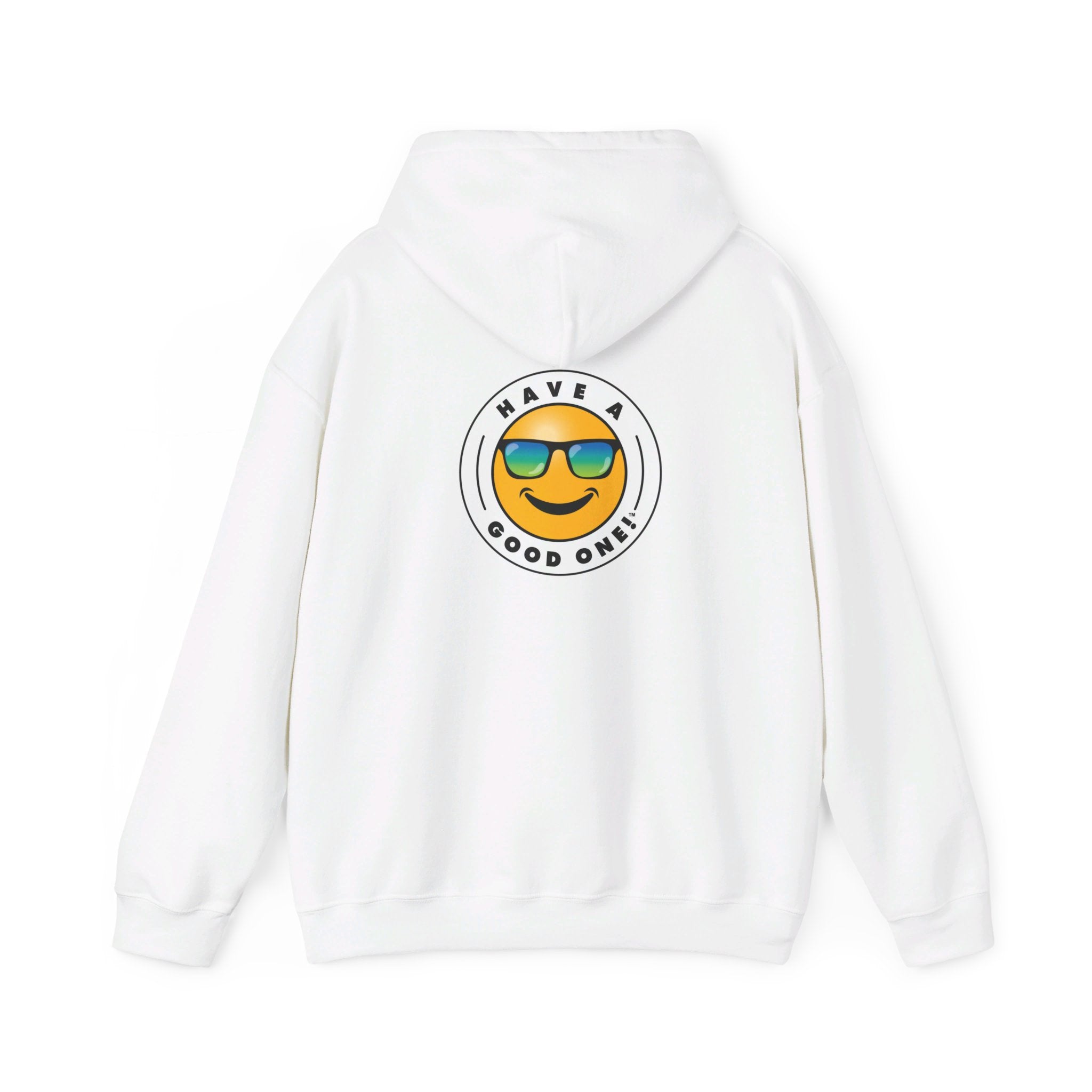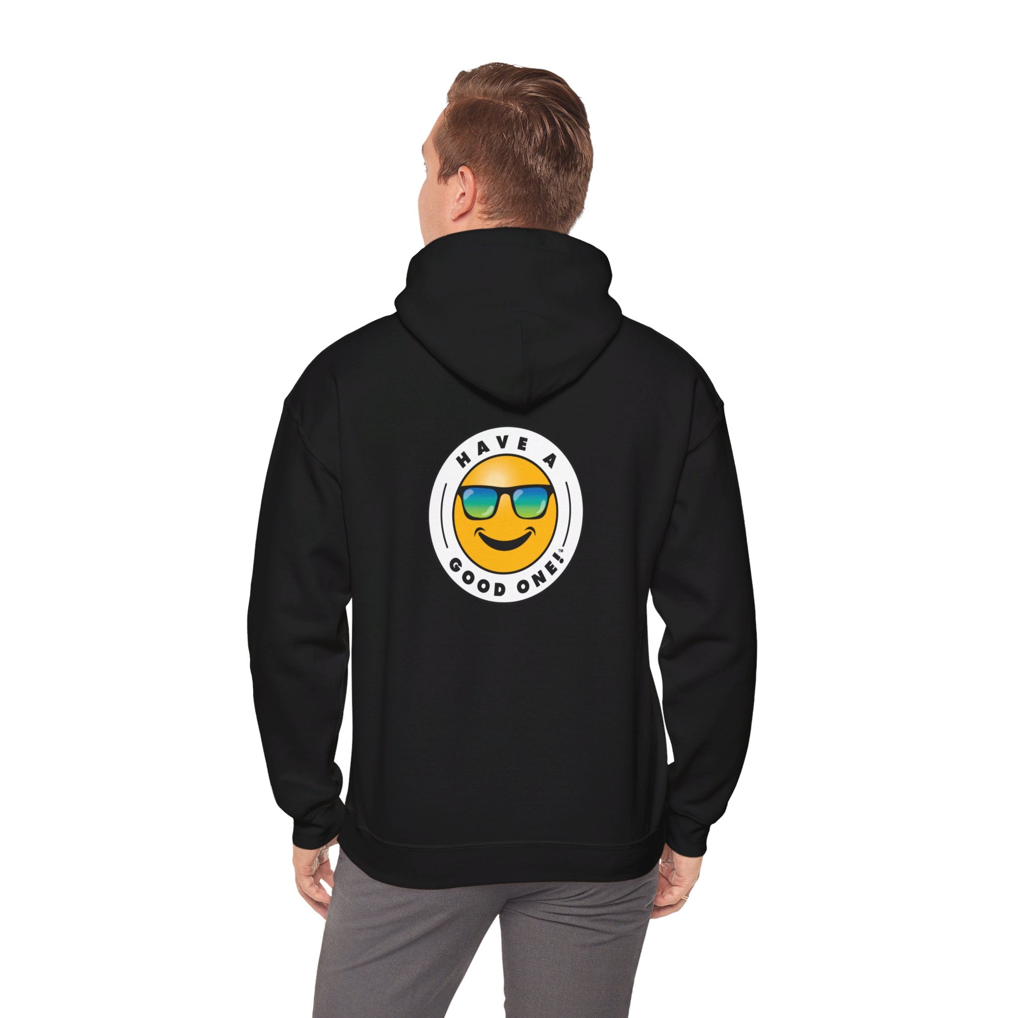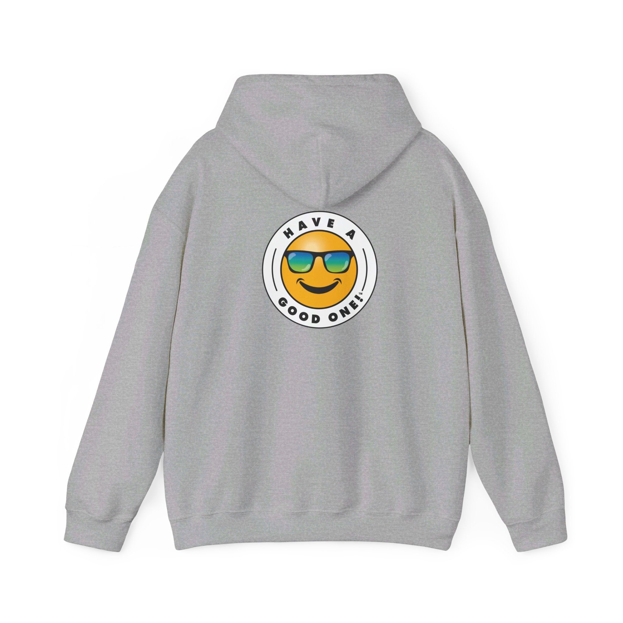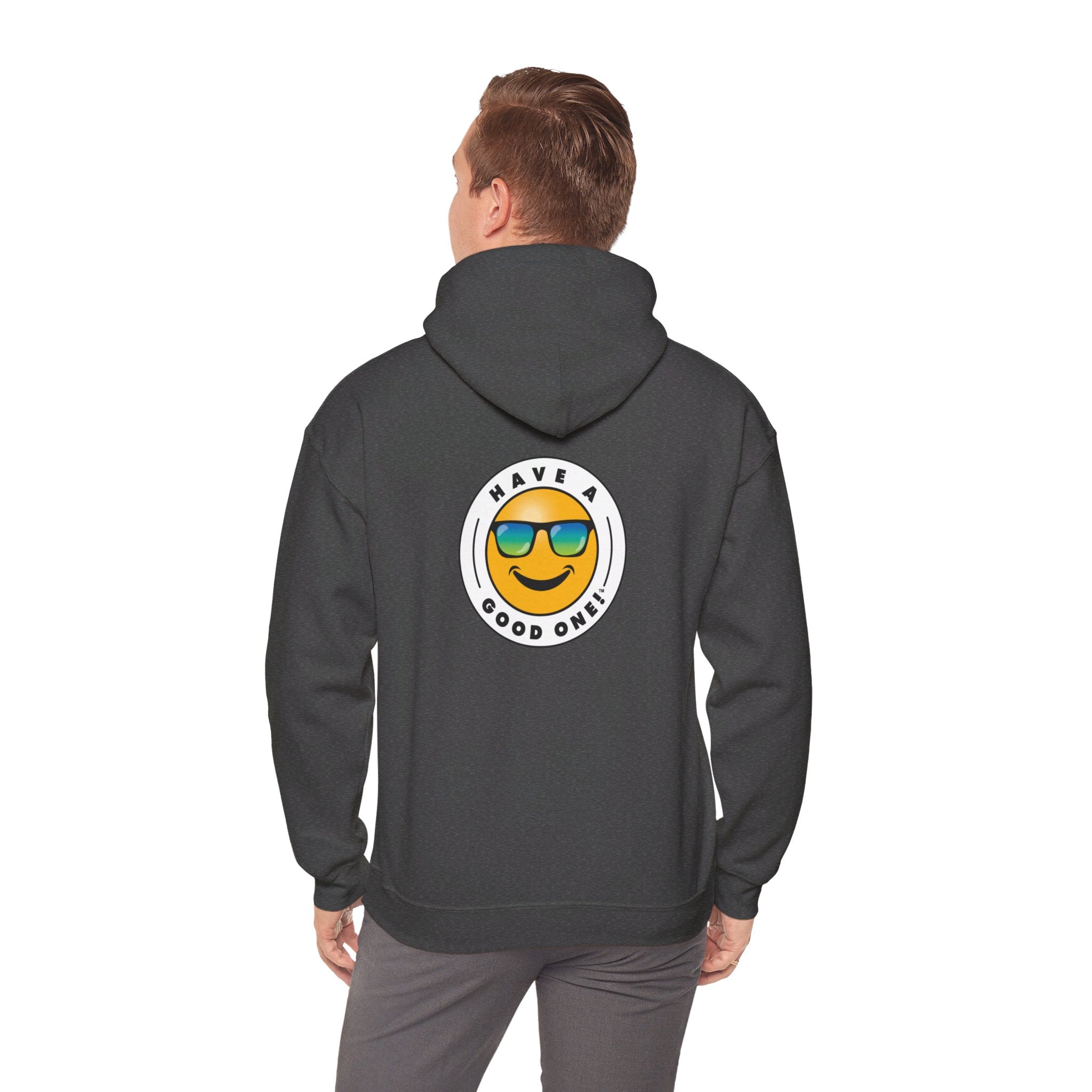 Unisex Heavy Blend Hooded Sweatshirt - Blue Green Logo on Front with Have A Good One! Logo on Back of Sweatshirt