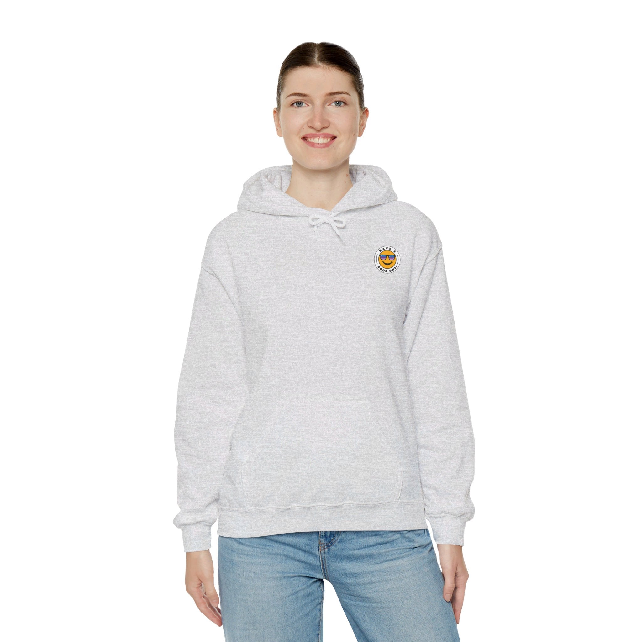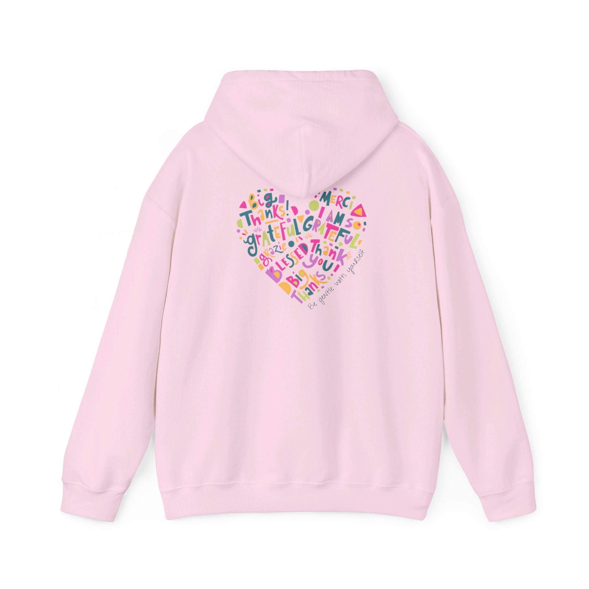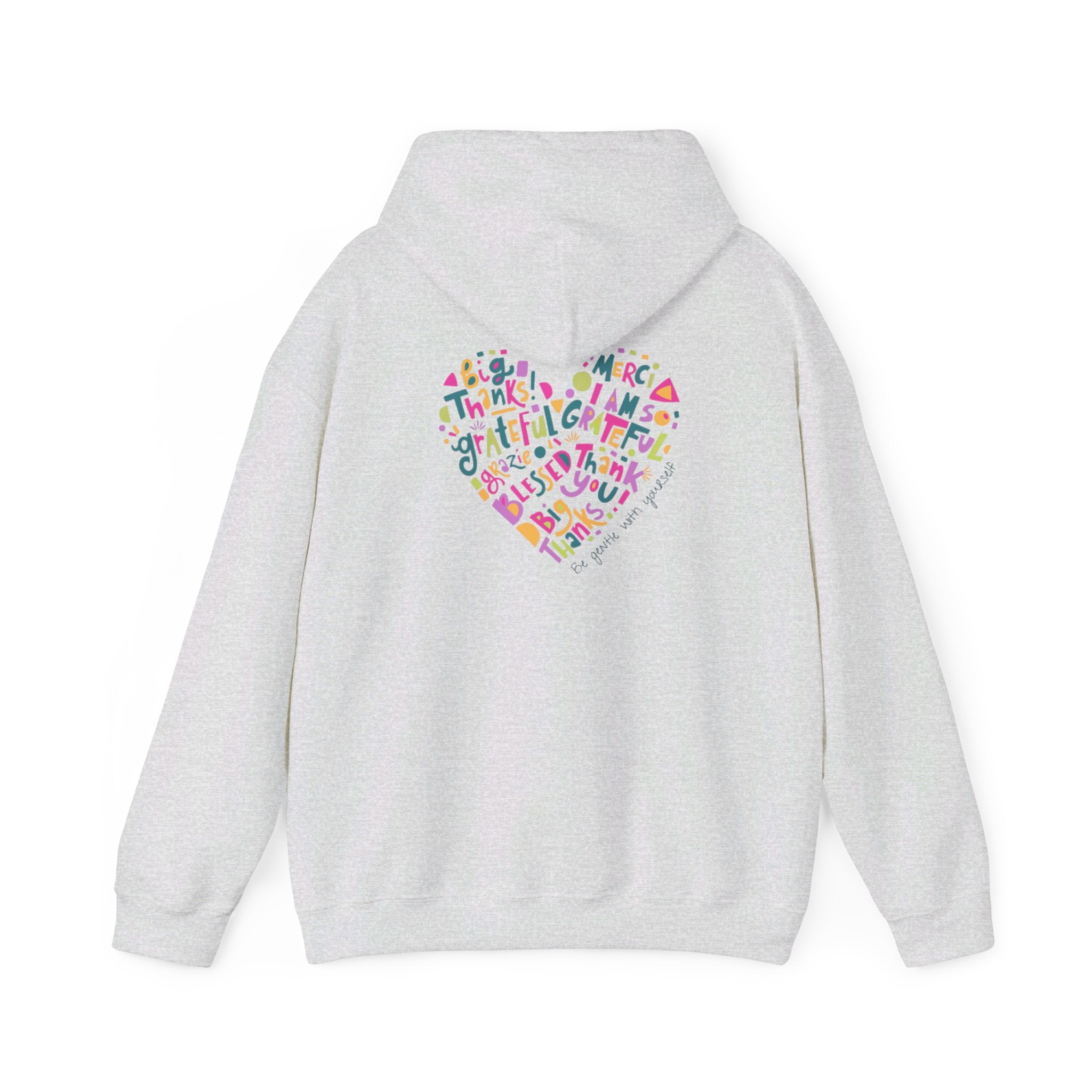 Unisex Heavy Blend Hooded Sweatshirt - Blue Purple Logo Front and Gratitude Heart on Back of Sweatshirt