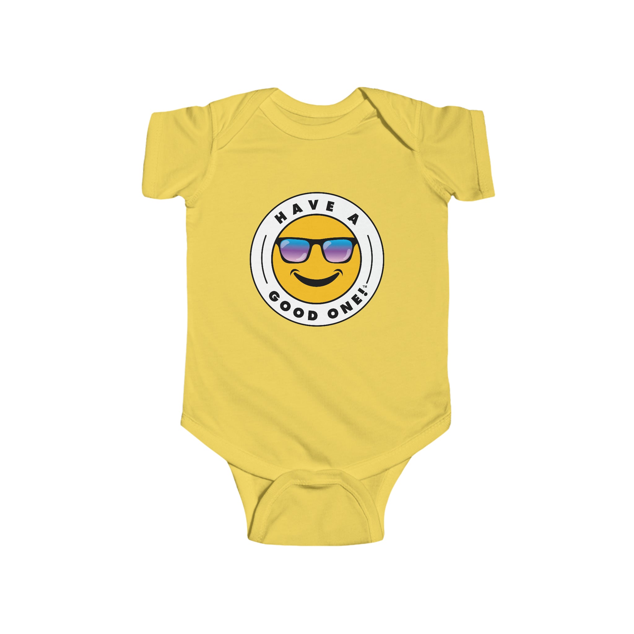 Bundle of Joy Have A Good One! Infant Bodysuit - Butter Color With Blue Purple Logo