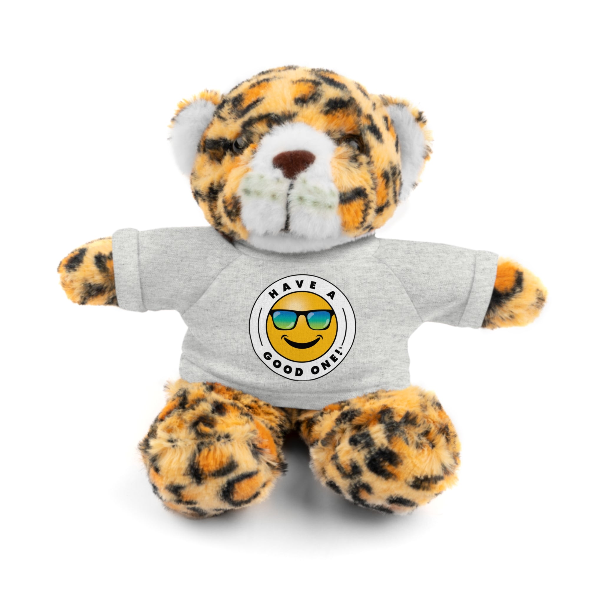 Designed to put ear-to-ear smiles on any child! These stuffed animals come with a playful attitude and cheerful tees. Each plushie is 8" tall and features polyester and plastic pellet stuffing. The tees are 100% cotton. Ideal for children 3 and older but perfect for all ages. They are cuddly and fun. They also make great gifts. You can't help but smile looking at these adorable stuffed animals. Get one today and Have A Good One!