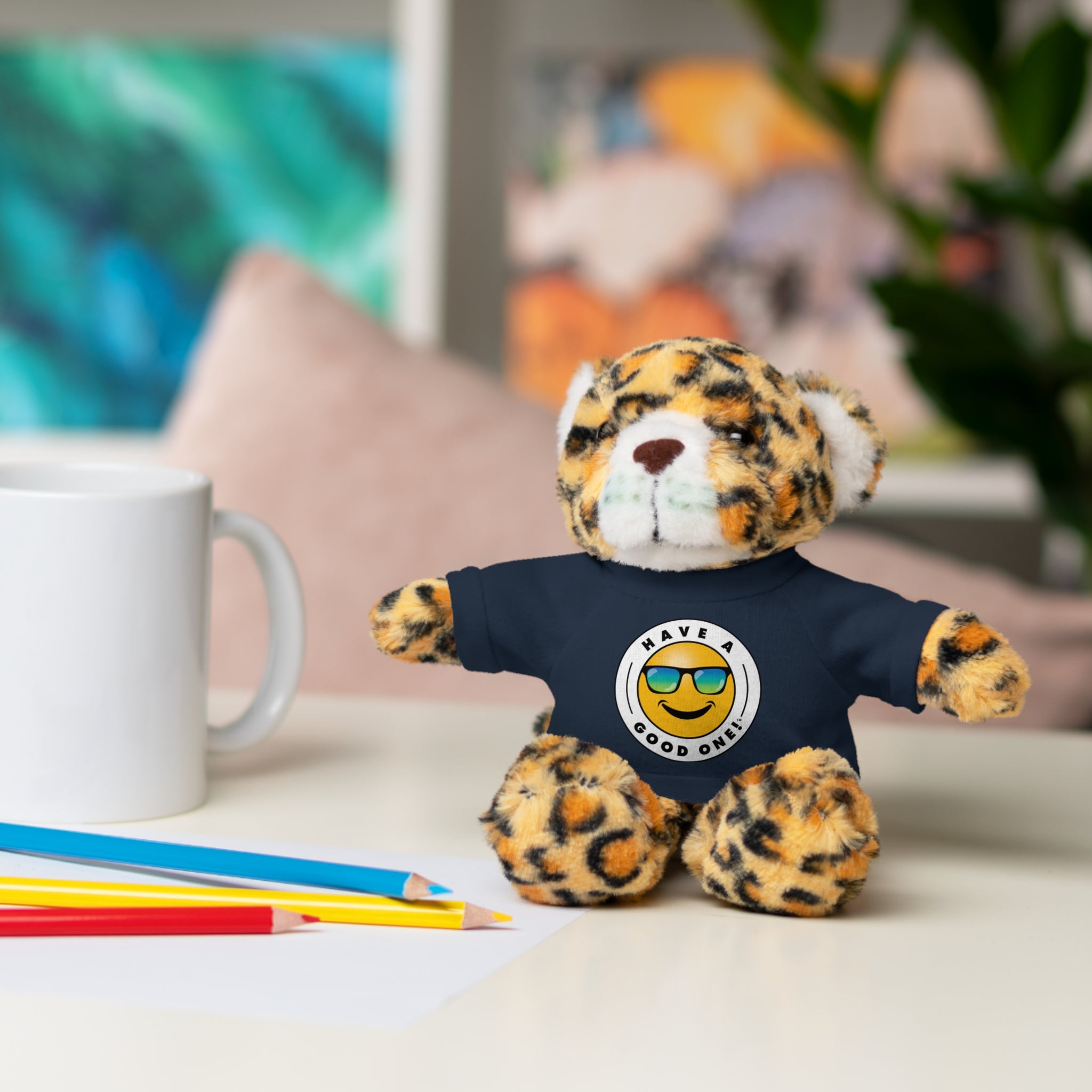 Designed to put ear-to-ear smiles on any child! These stuffed animals come with a playful attitude and cheerful tees. Each plushie is 8" tall and features polyester and plastic pellet stuffing. The tees are 100% cotton. Ideal for children 3 and older but perfect for all ages. They are cuddly and fun. They also make great gifts. You can't help but smile looking at these adorable stuffed animals. Get one today and Have A Good One!