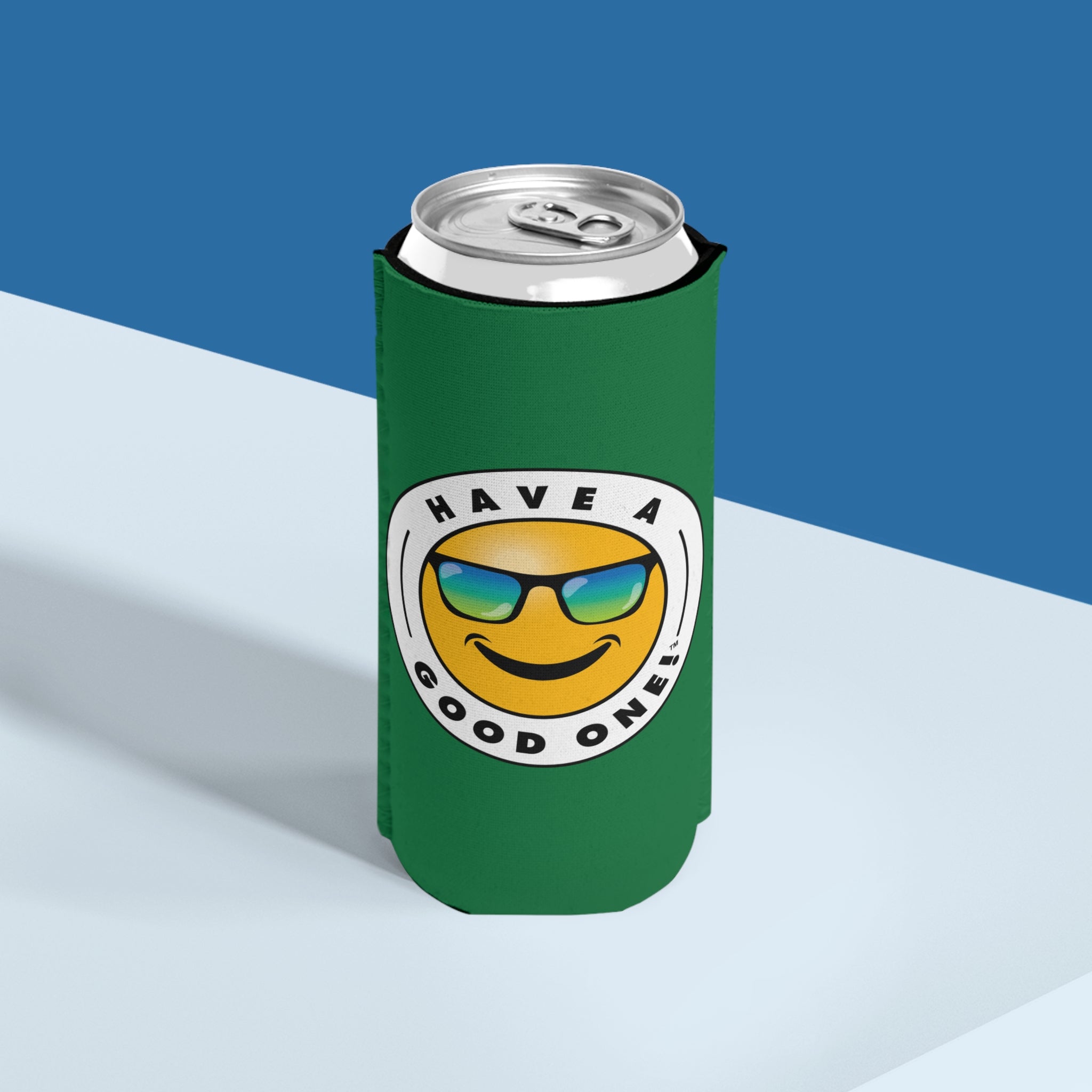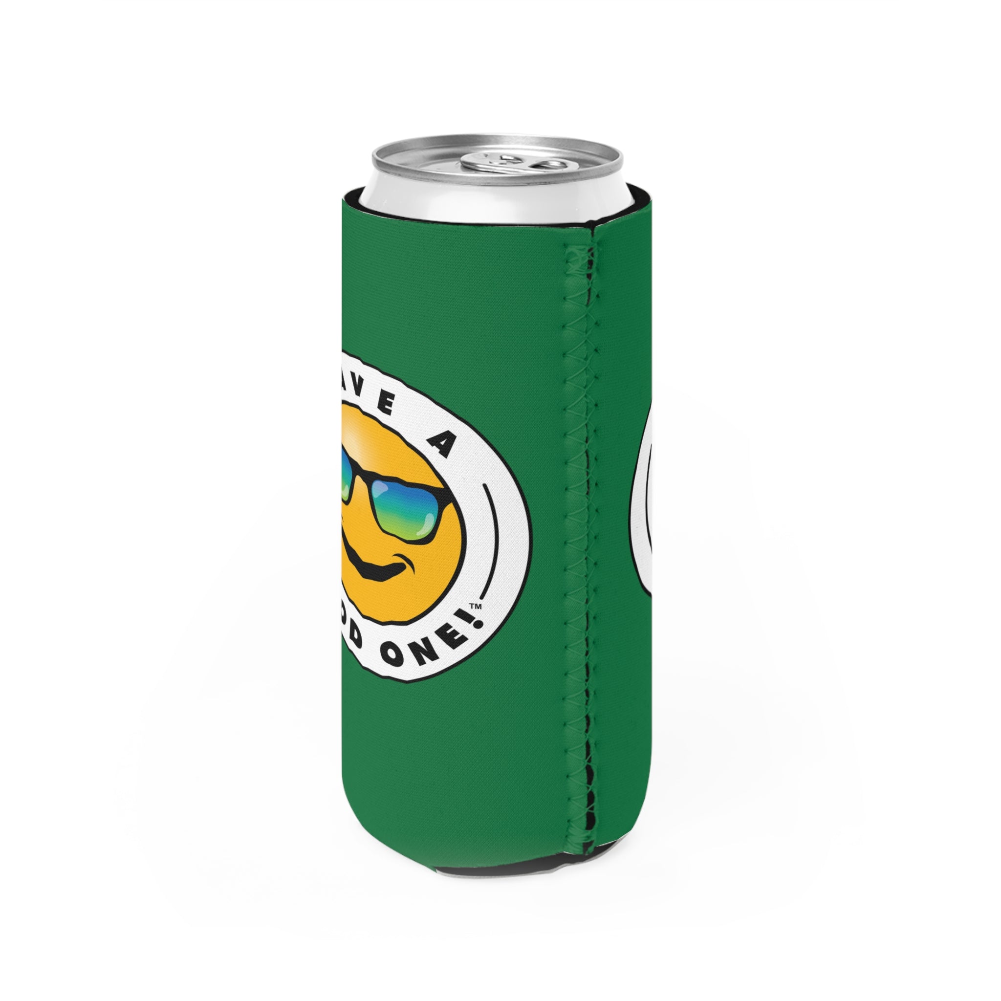 Grab N' Go Koozie Cooler Slim Sleeve - Dark Green With Blue and Green Logo