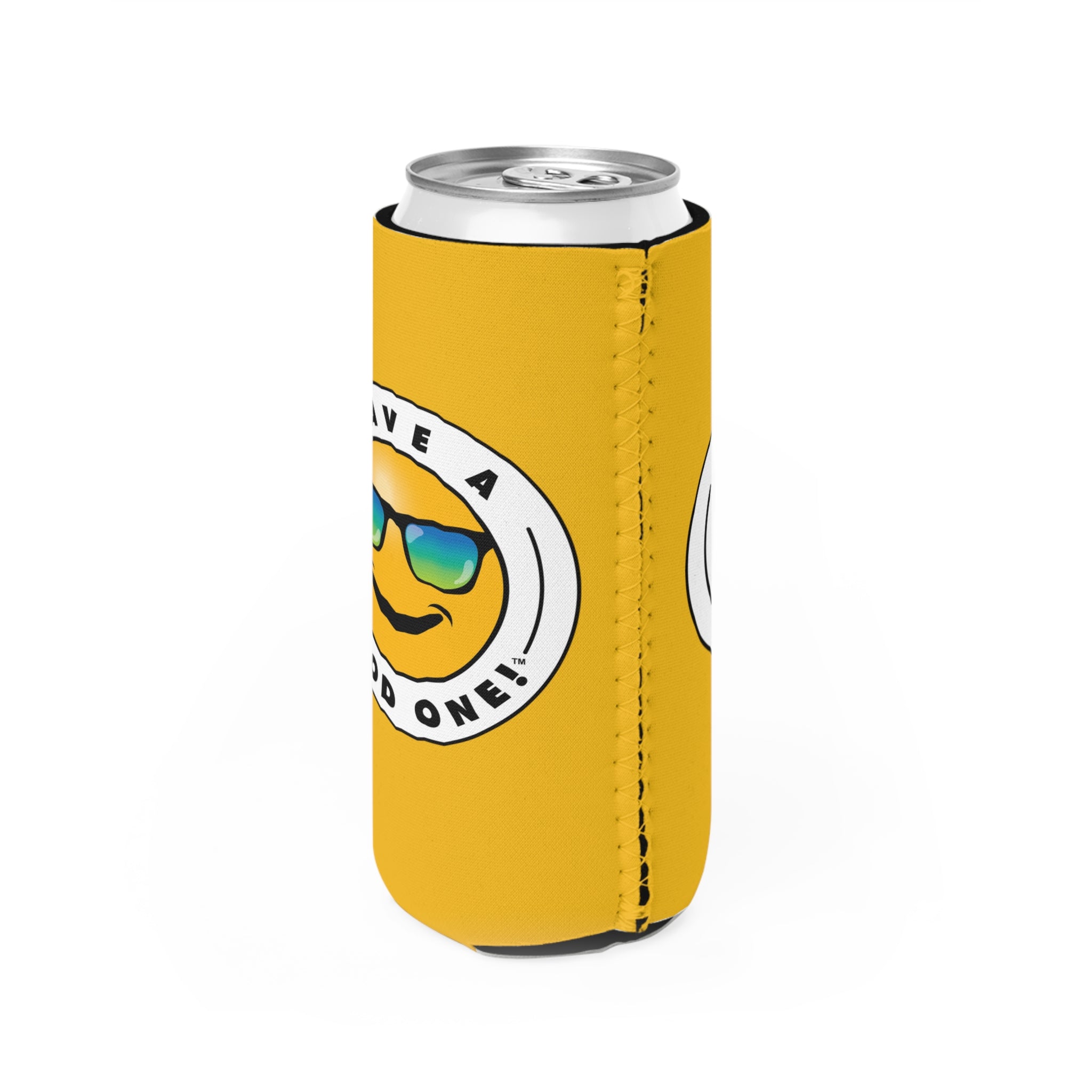 Grab N' Go Koozie Cooler Slim Sleeve - Yellow Color With Blue and Green Logo