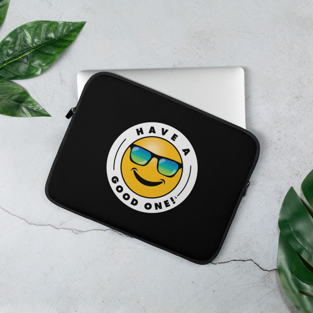 Grab N’ Go Neoprene Laptop Sleeve With Fun Have A Good One! Logo – Black Color With Blue Green Logo