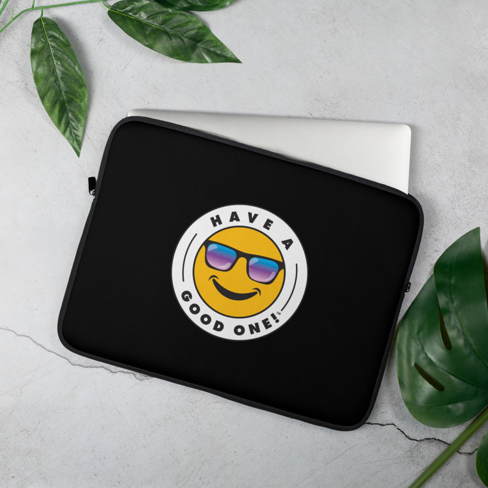 Grab N’ Go Neoprene Laptop Sleeve With Fun Have A Good One! Logo – Black Color With Blue Purple Logo