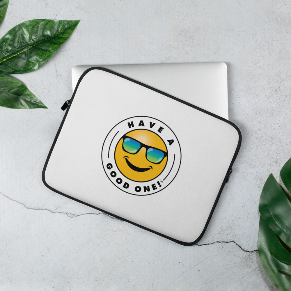 Grab N’ Go Neoprene Laptop Sleeve With Fun Have A Good One! Logo – White Color With Blue Purple Logo