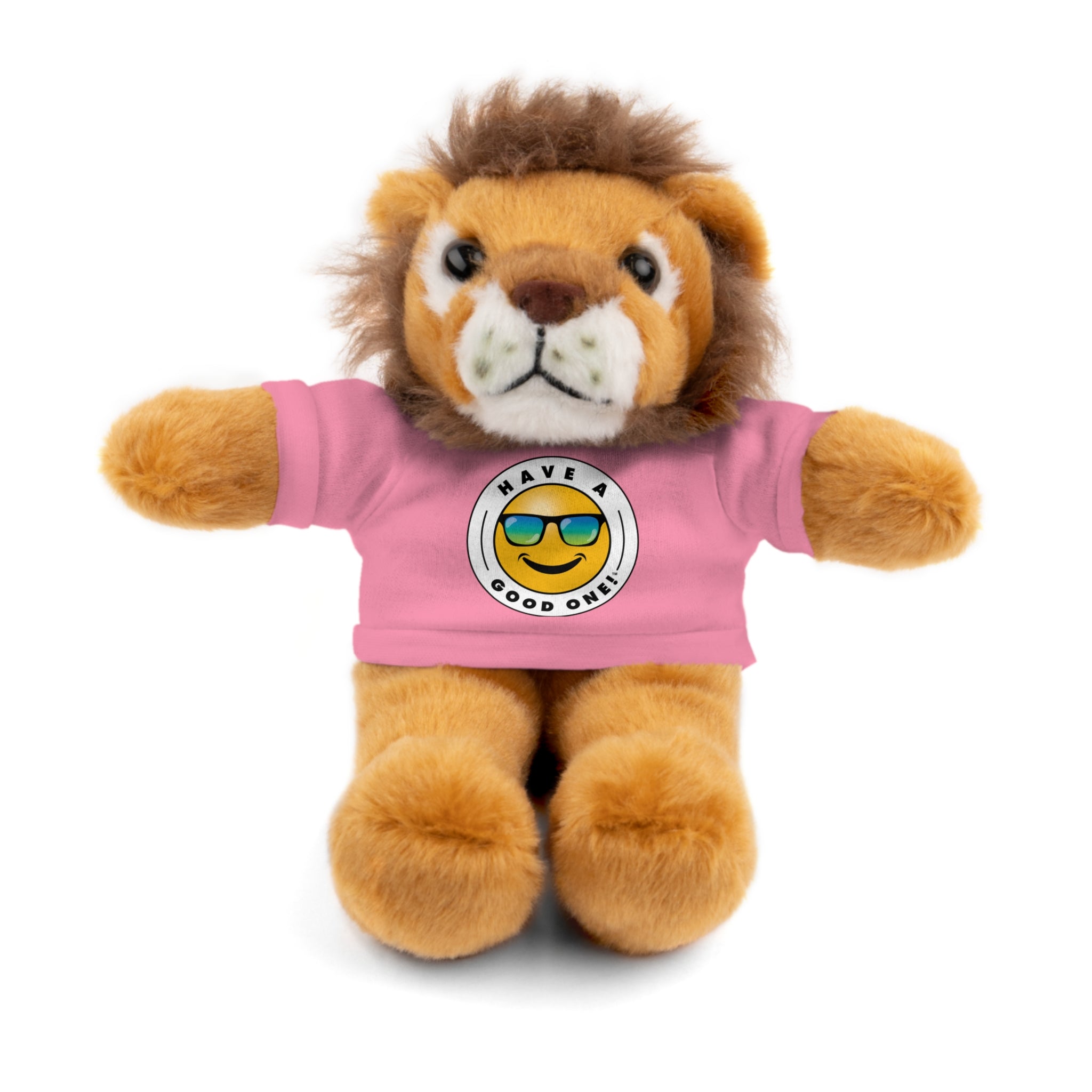 Lucky Lion Have A Good One! Stuffed Animal - Pink Color Shirt With Blue Green Have A Good One! Logo