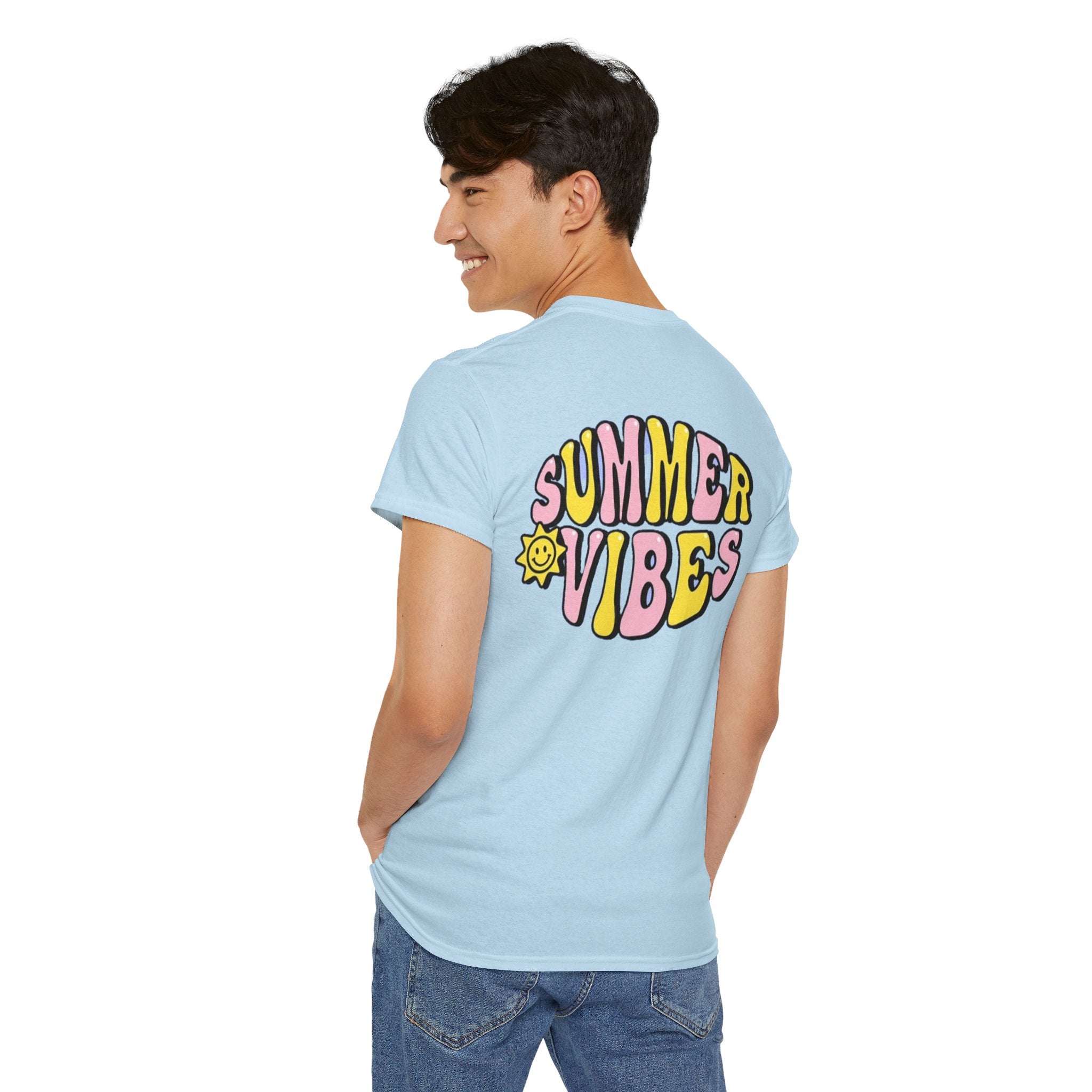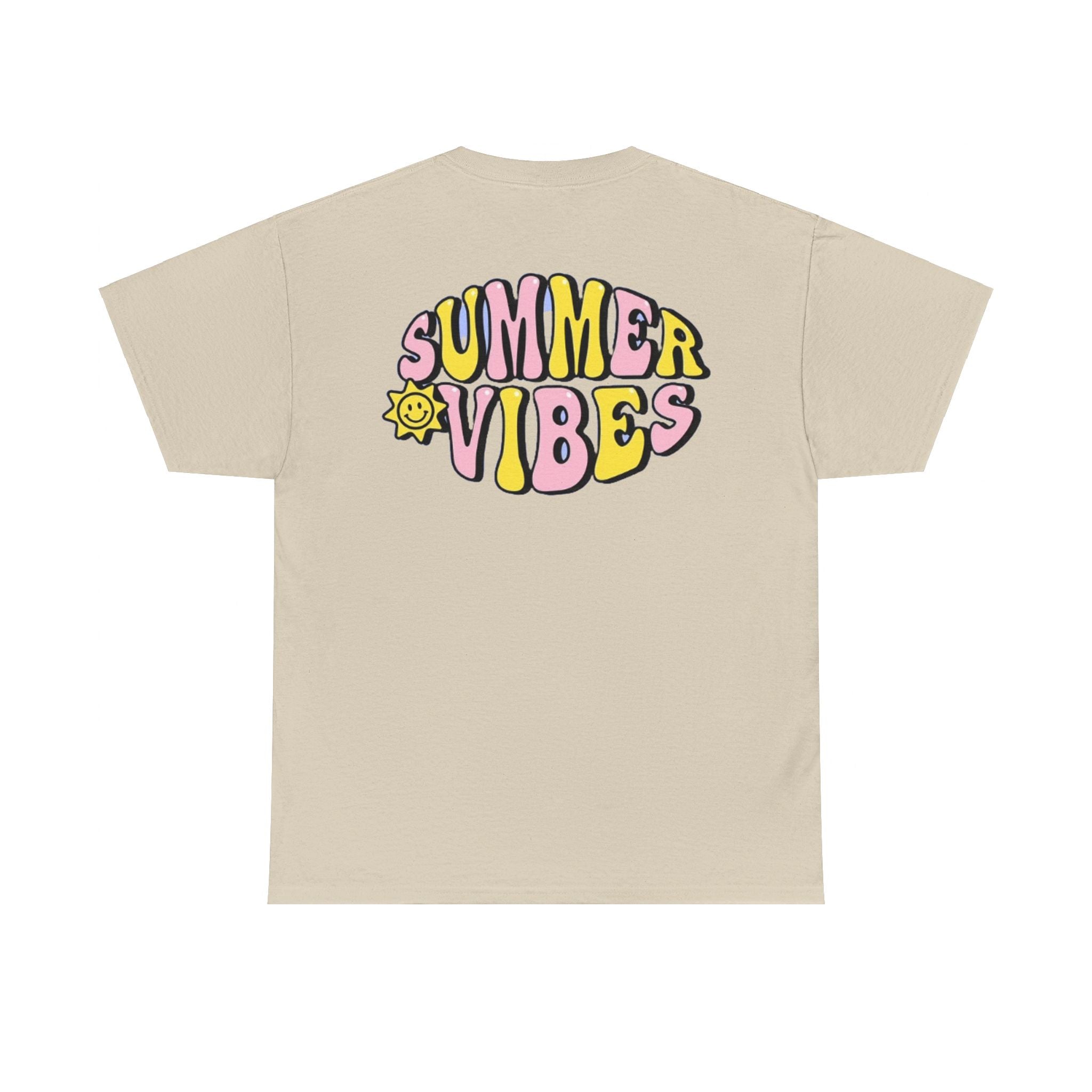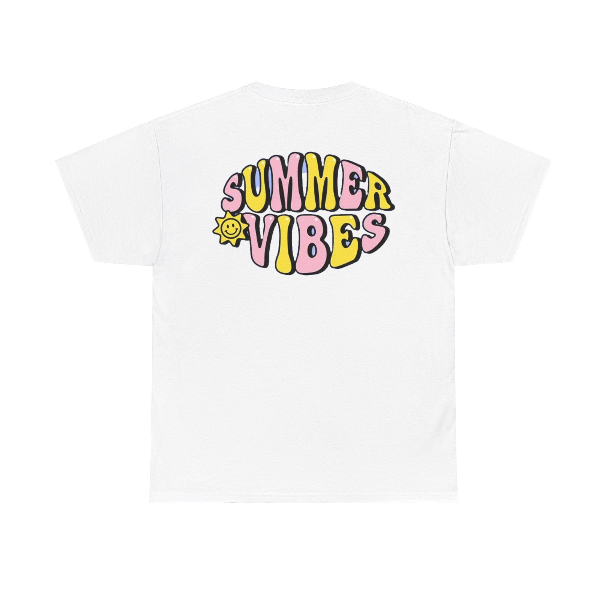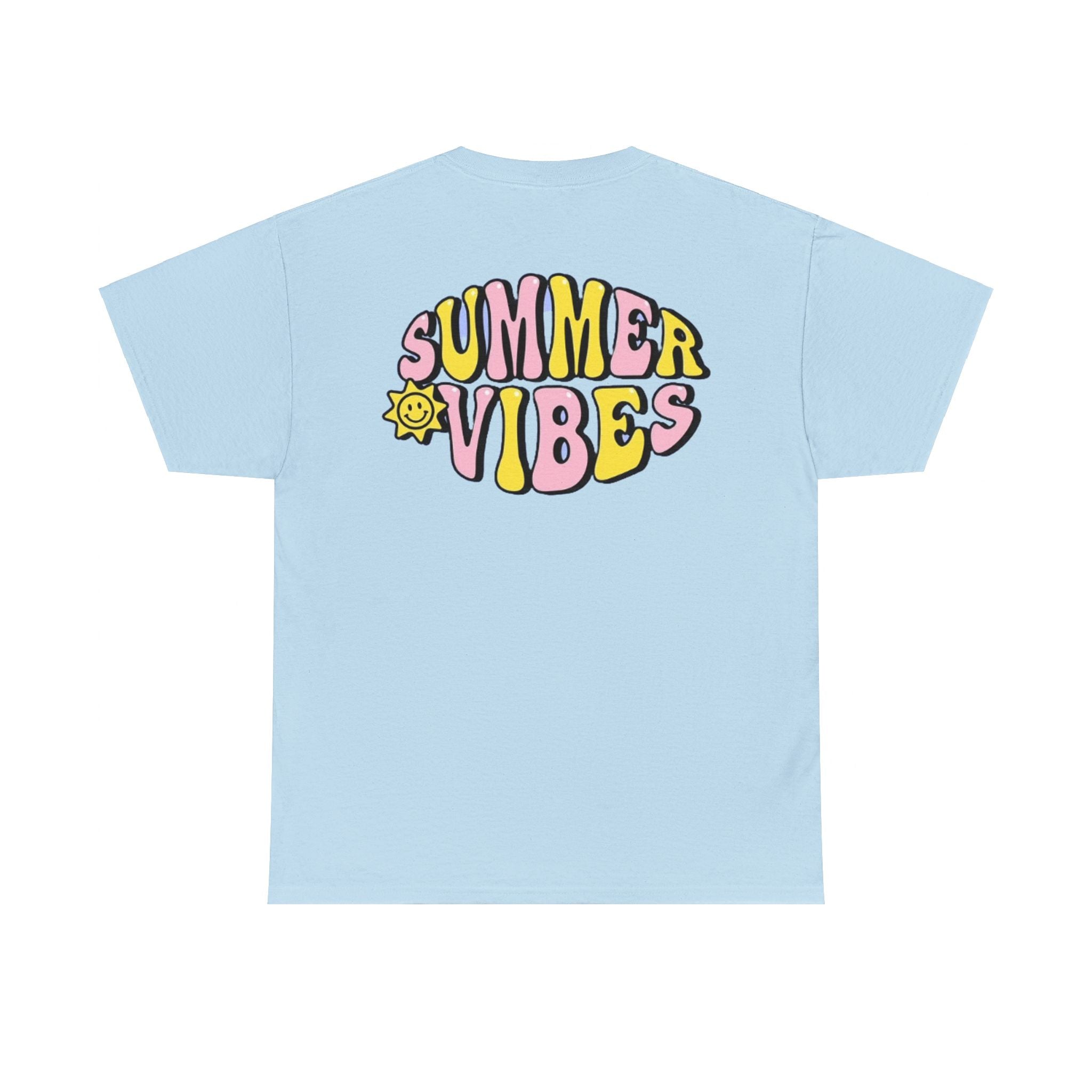 SUMMER VIBES! Hip and comfy casual t-shirt for the beach, boat, sporting event, or just relaxing wherever you are! You can be cool and spread the good vibes with this fun t-shirt! It a relaxed, classic fit designed for comfort and style. It is made from 100% cotton and is both durable and soft. It is unisex so it wears well on anyone and everyone. Let's all Have A Good One! Great vibes, good times, pass it on!