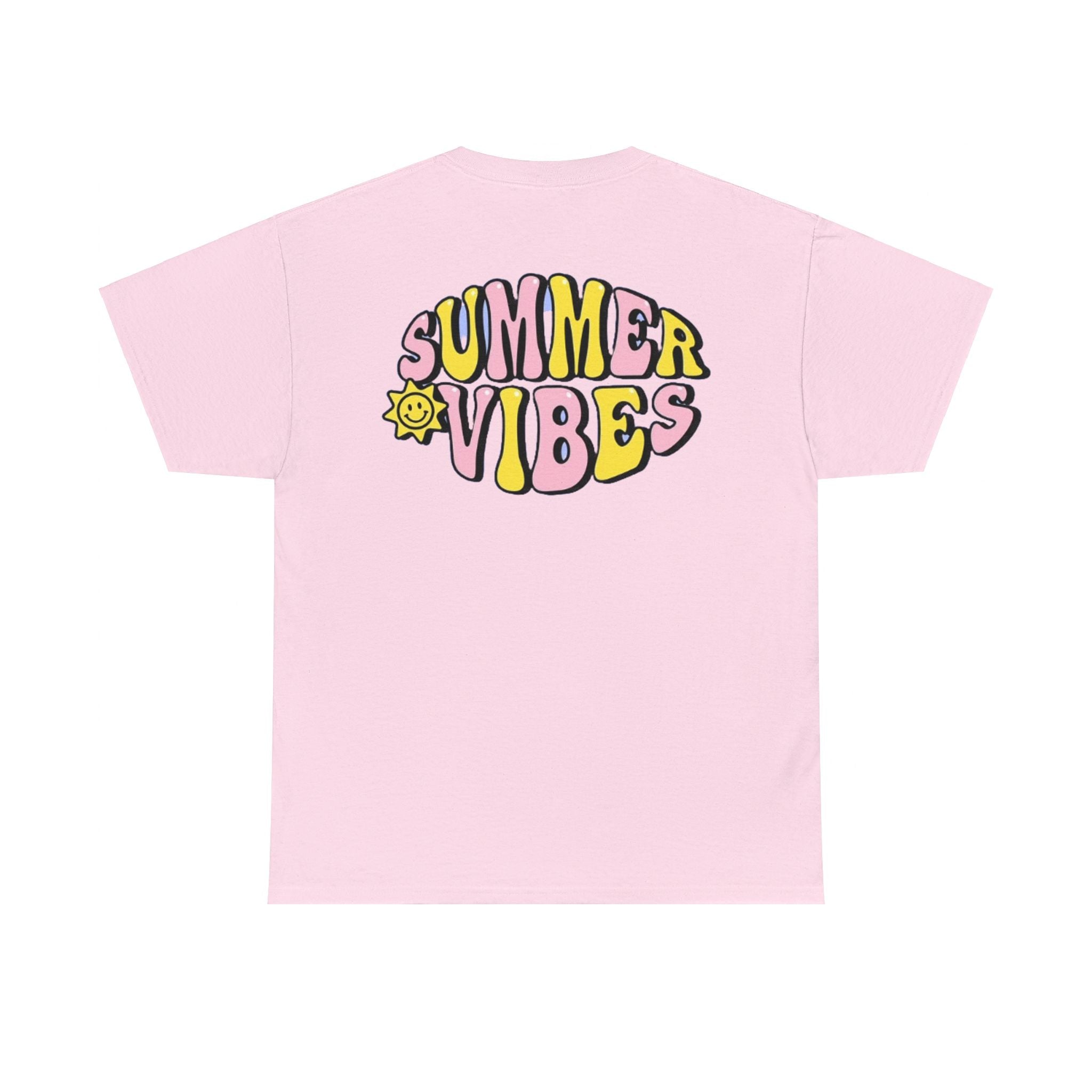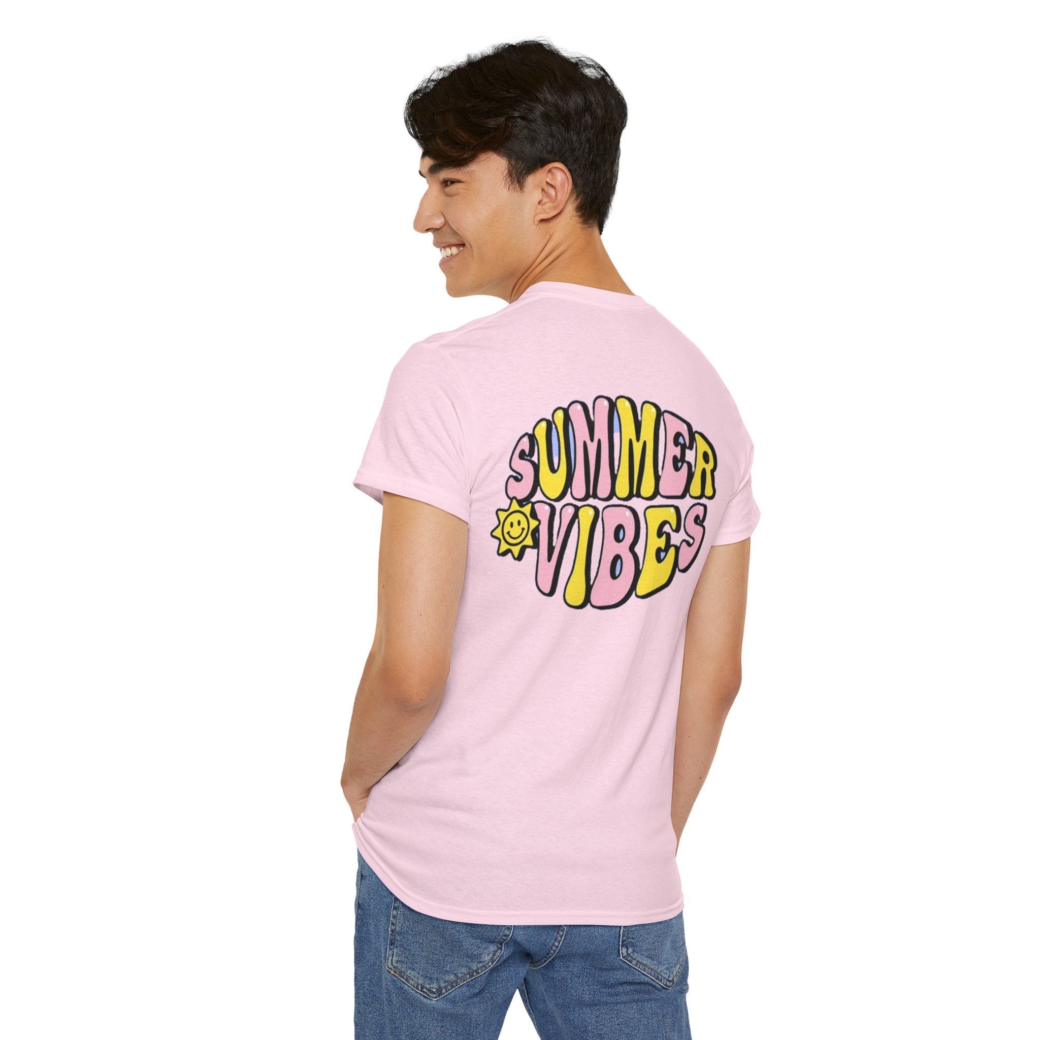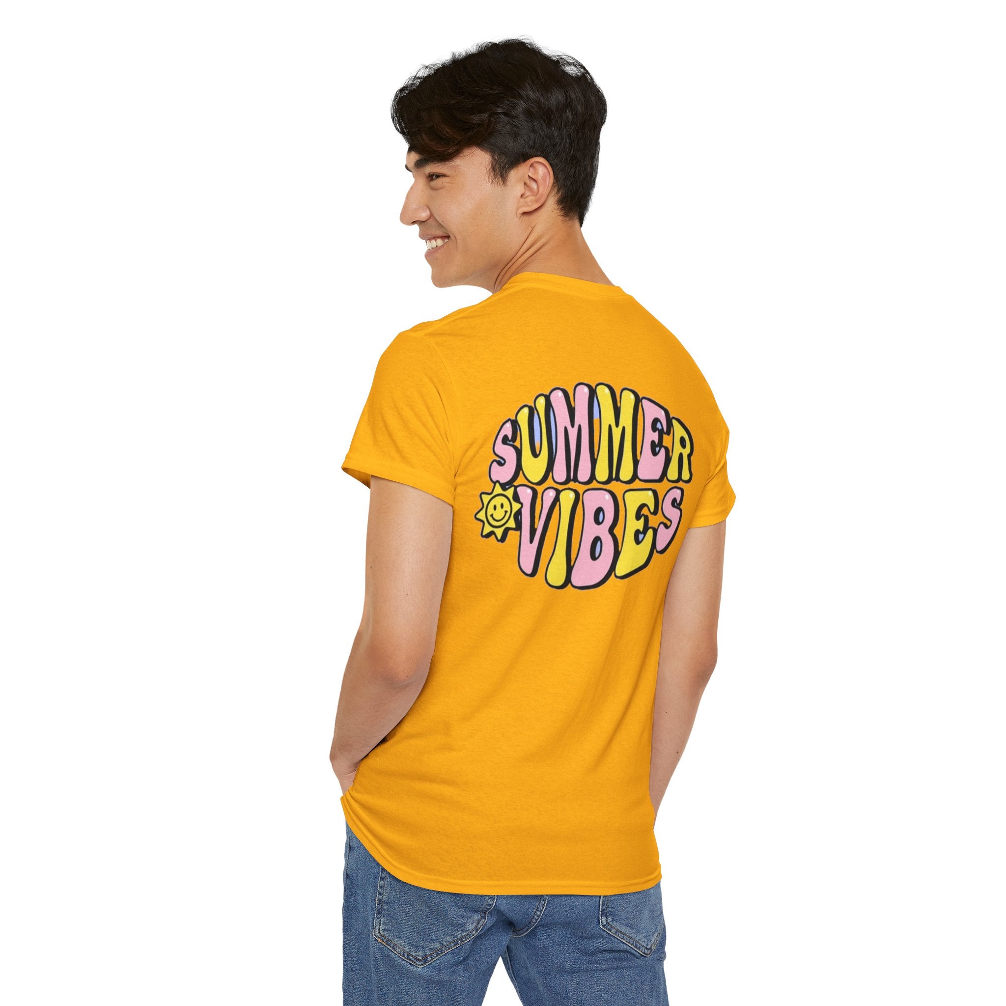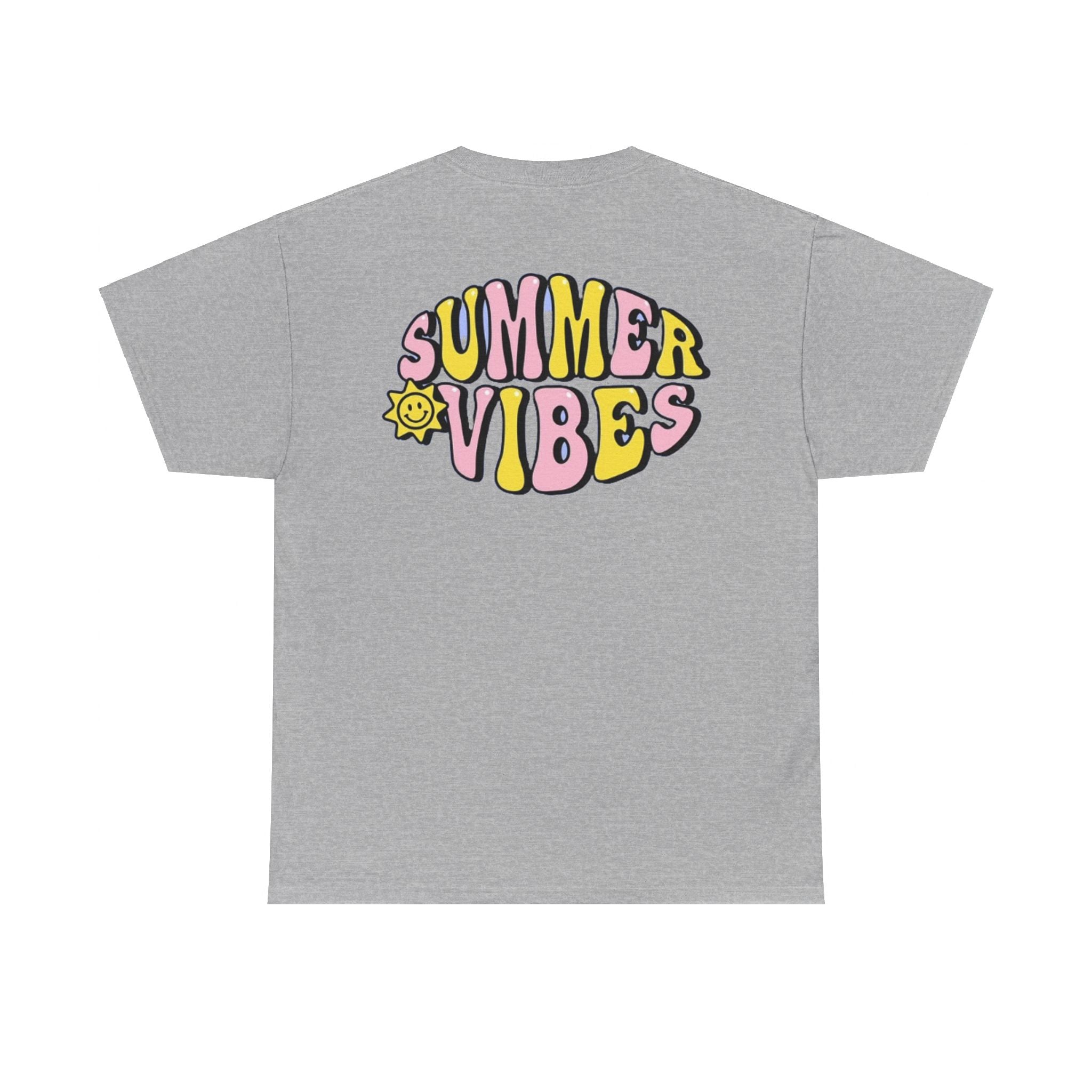 SUMMER VIBES! Hip and comfy casual t-shirt for the beach, boat, sporting event, or just relaxing wherever you are! You can be cool and spread the good vibes with this fun t-shirt! It a relaxed, classic fit designed for comfort and style. It is made from 100% cotton and is both durable and soft. It is unisex so it wears well on anyone and everyone. Let's all Have A Good One! Great vibes, good times, pass it on!