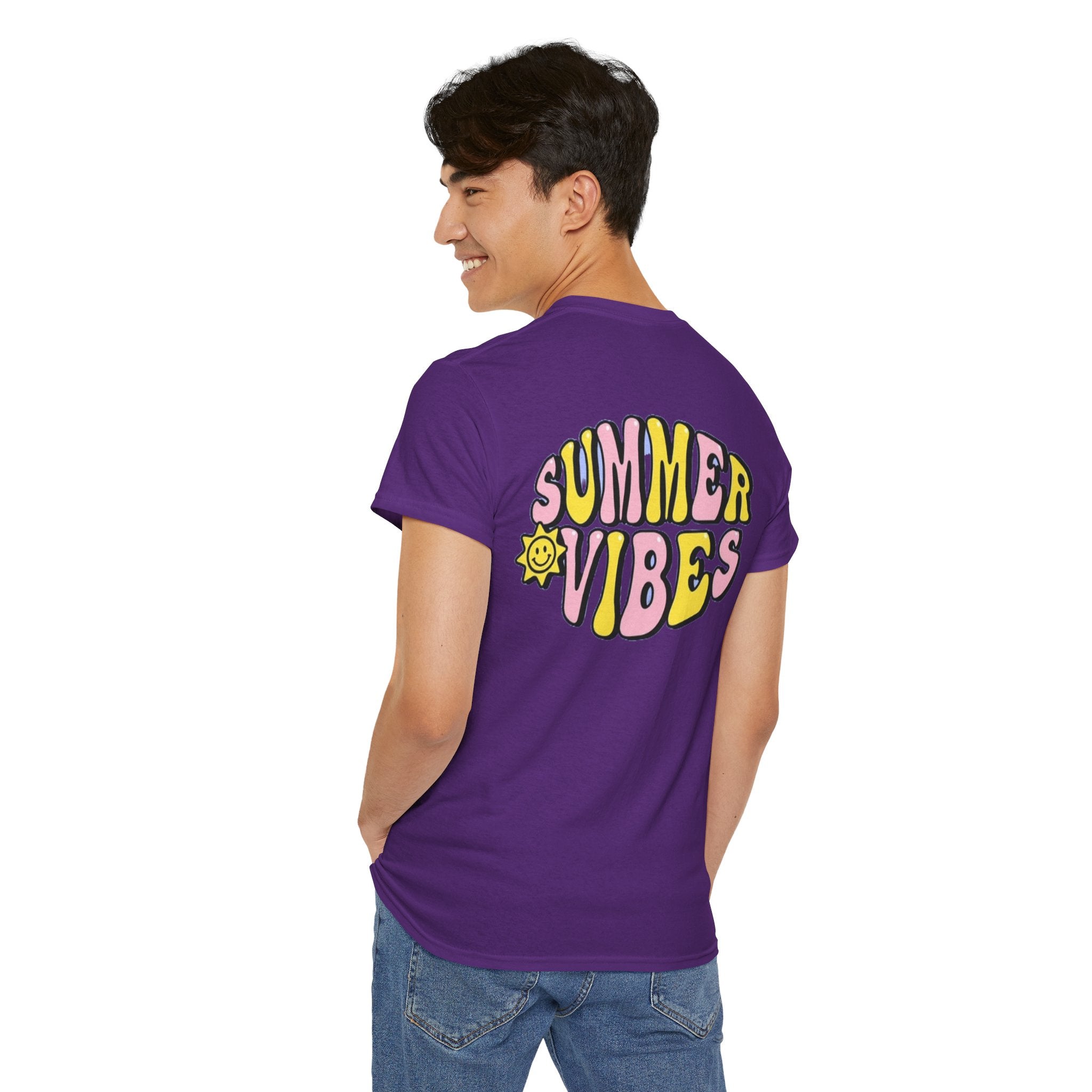 Cotton T-Shirt With Blue Purple Have A Good One Logo and SUMMER VIBES on Back