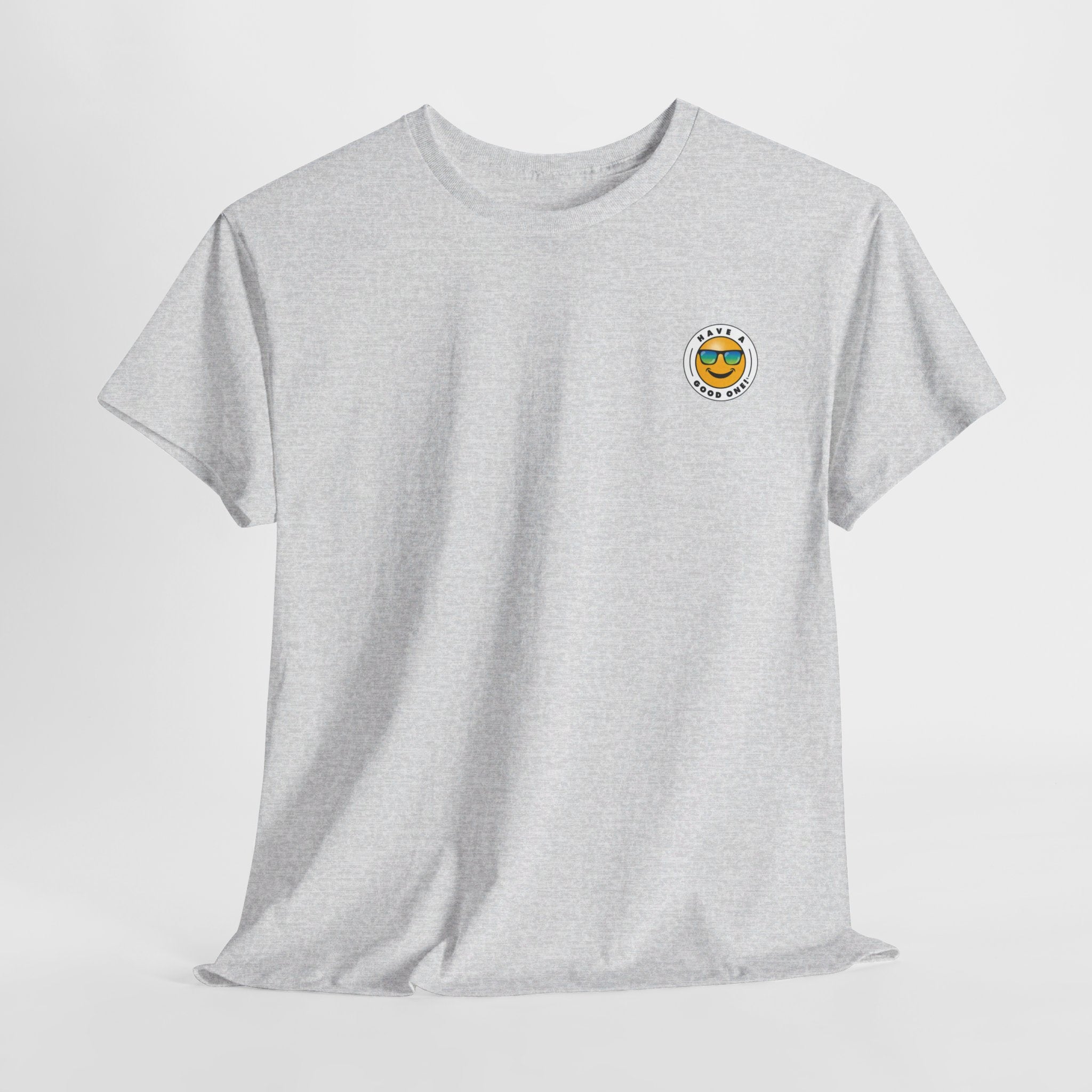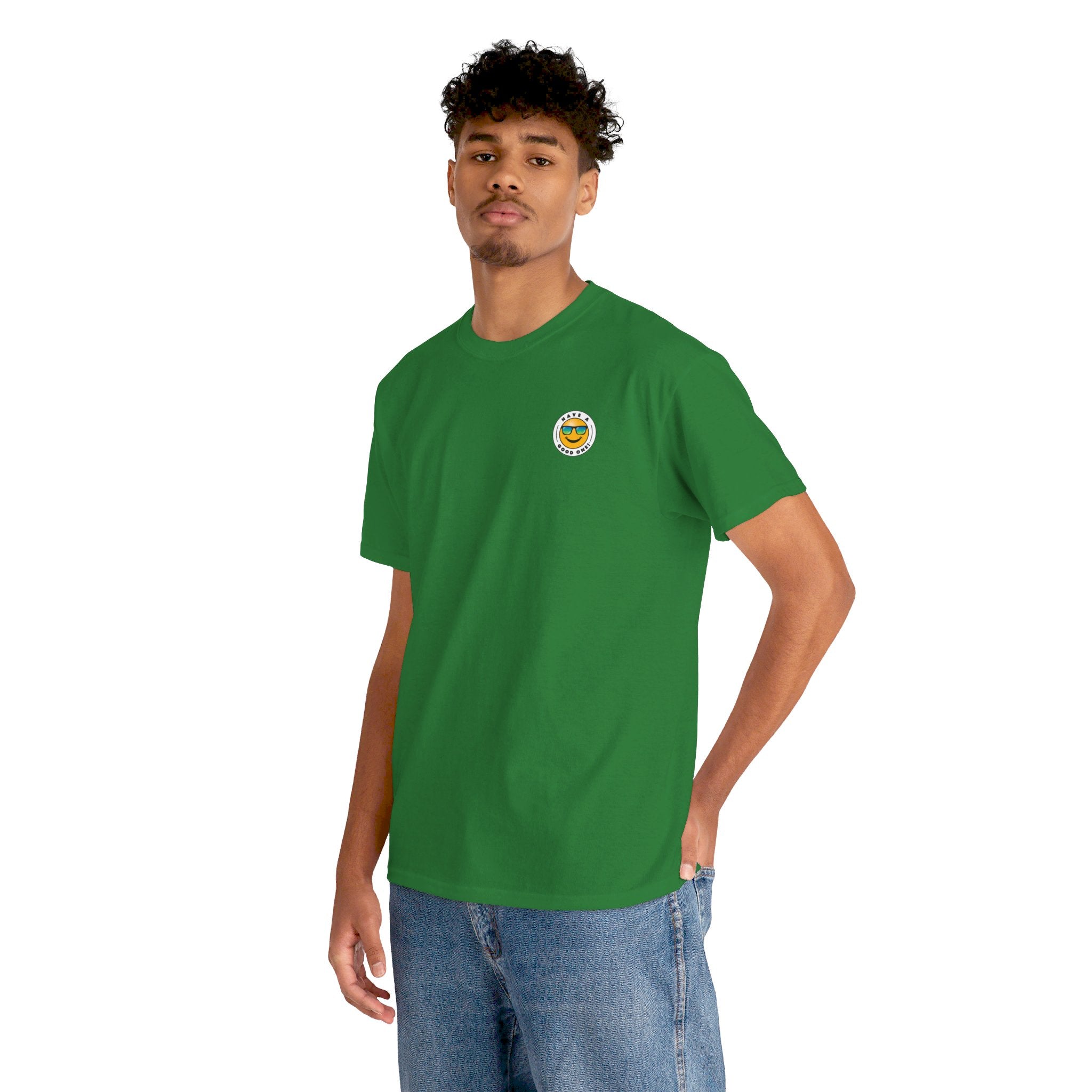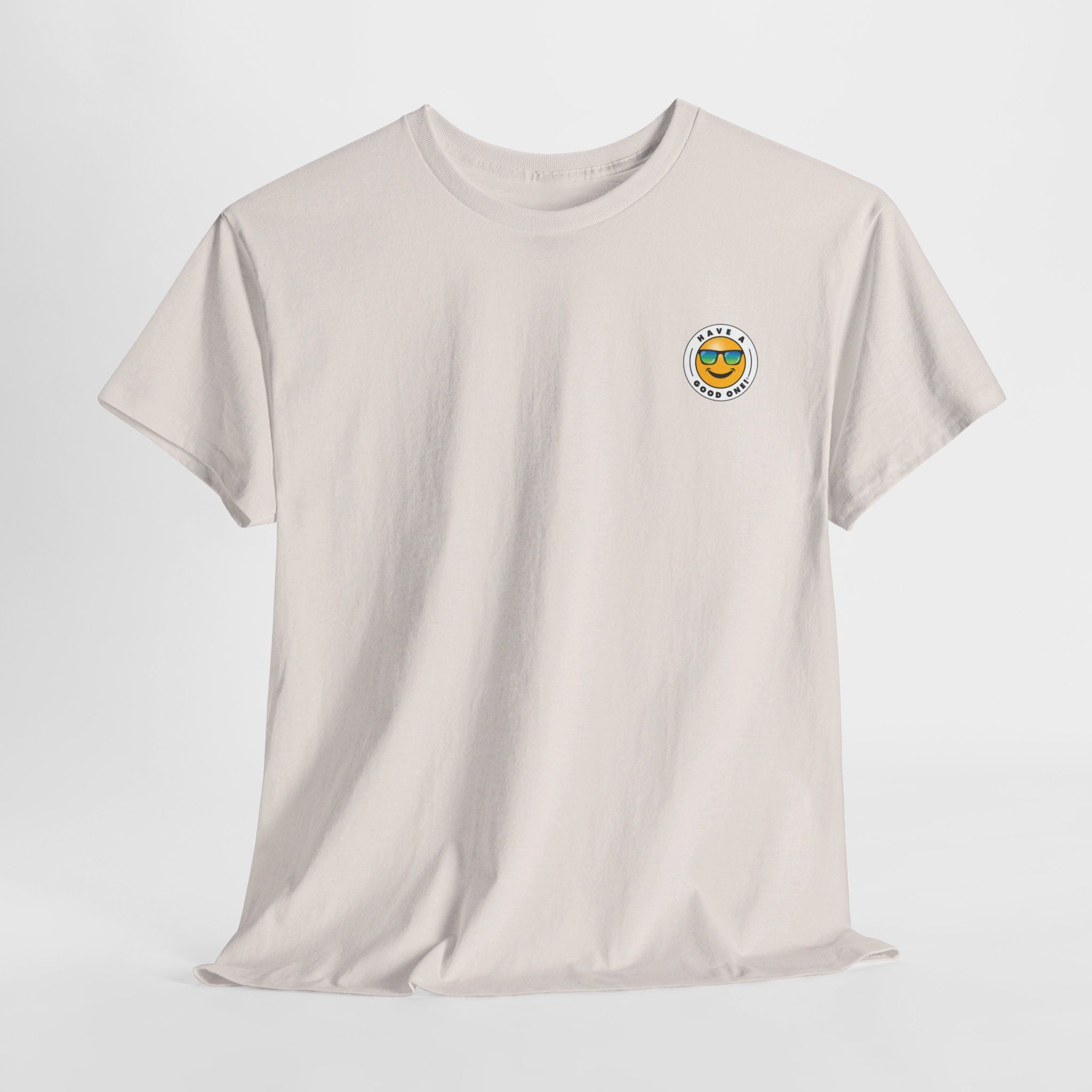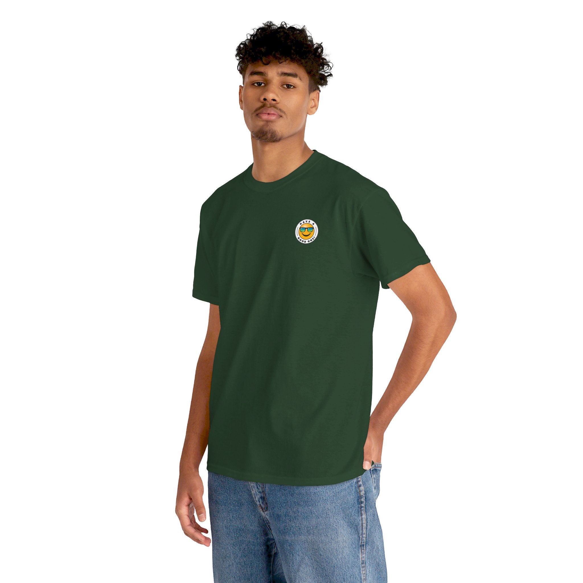 Cotton T-Shirt With Blue Green Logo and GOOD VIBES ONLY Design on Back of Shirt