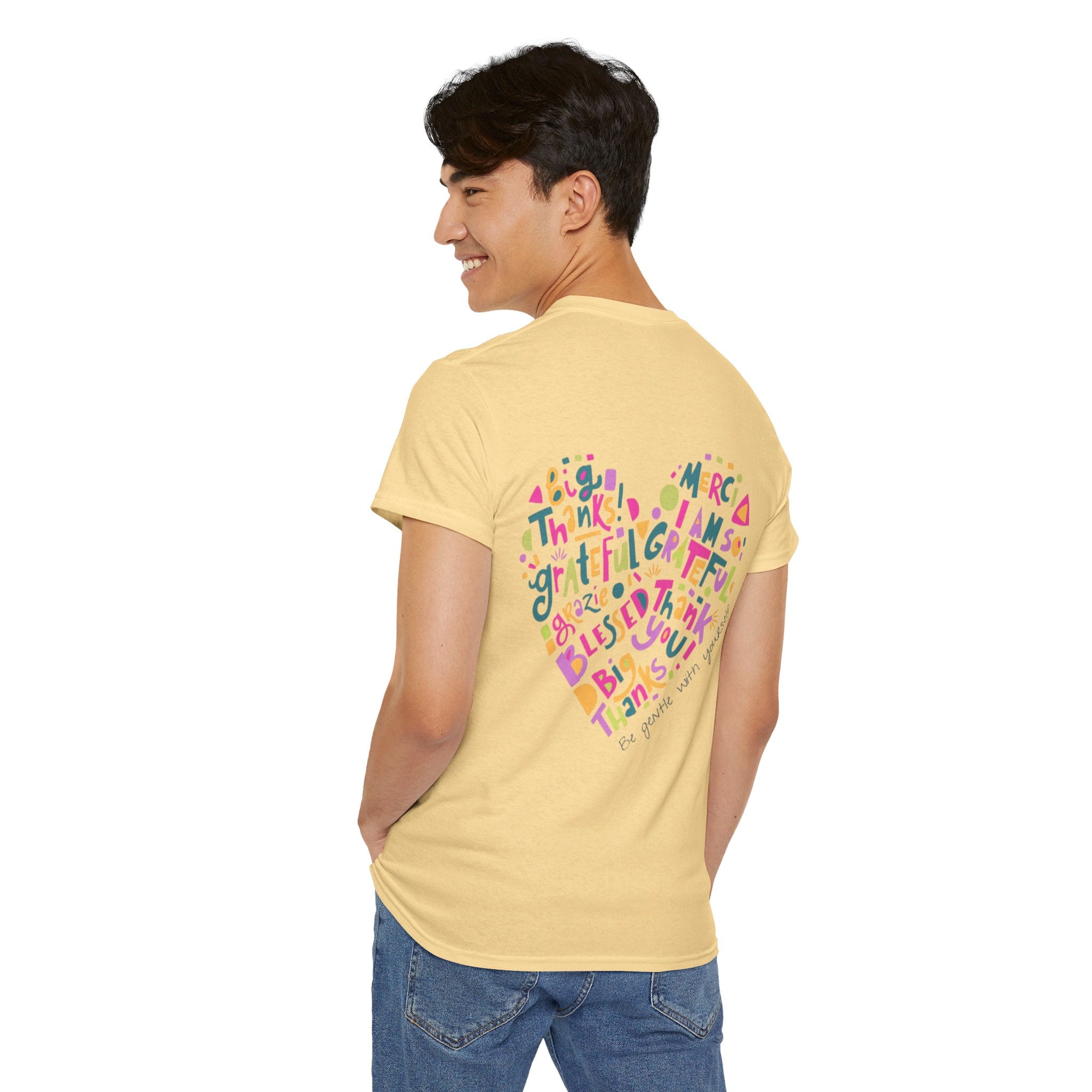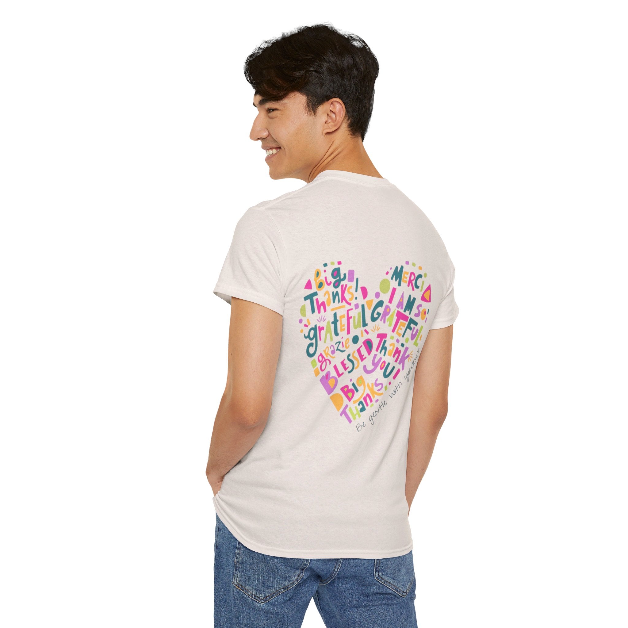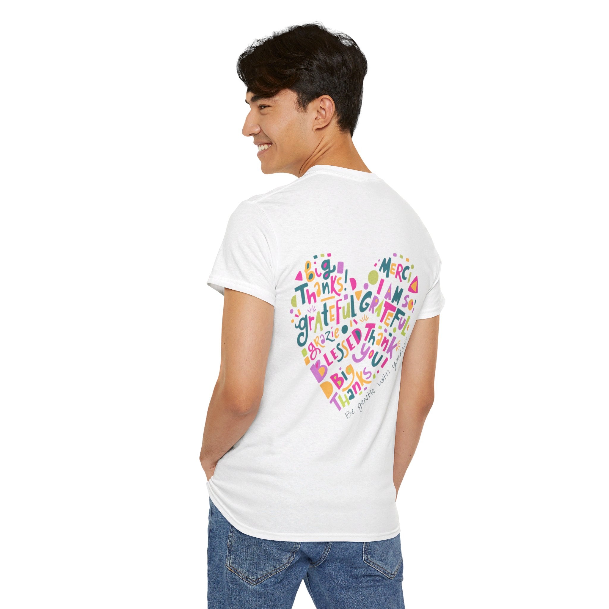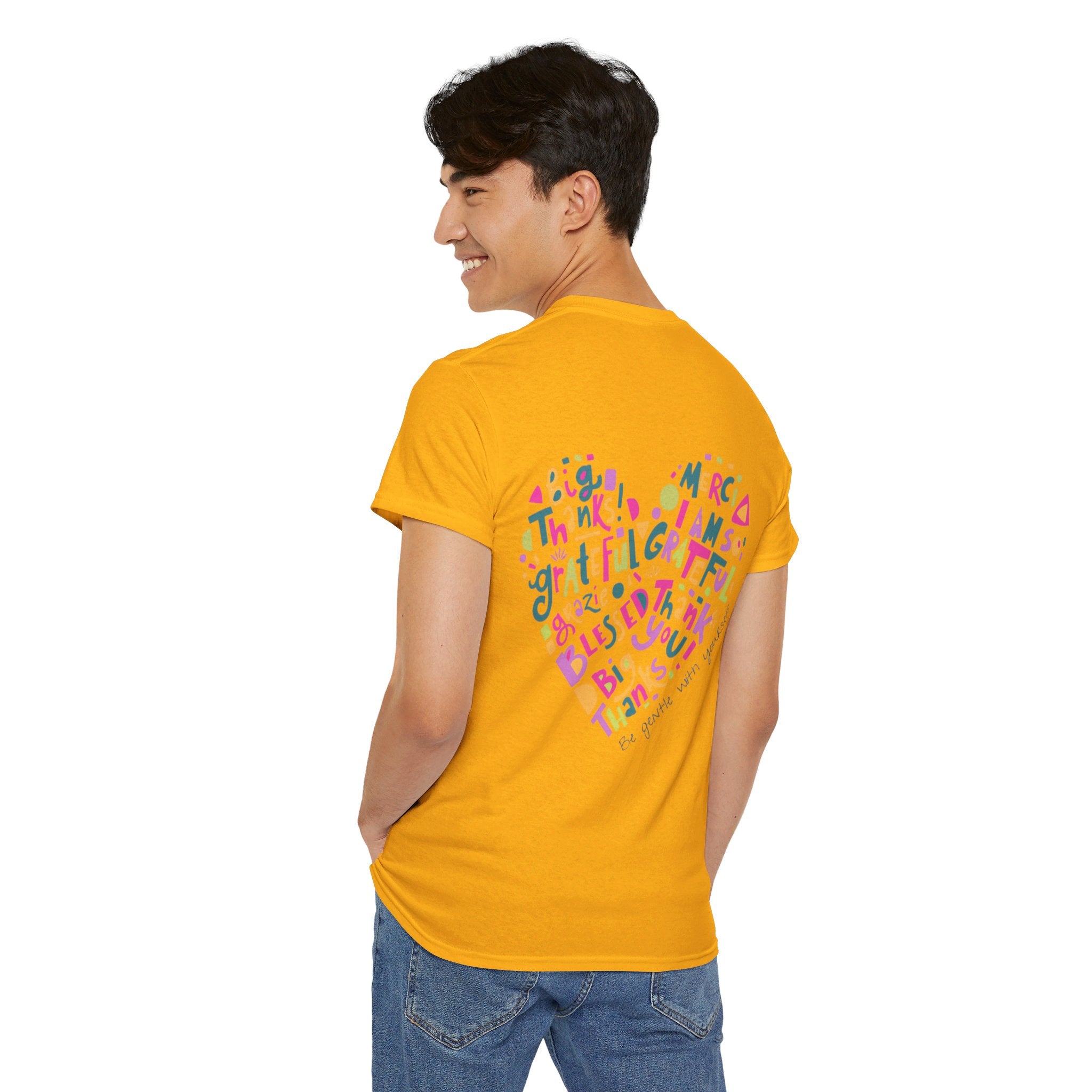 Cotton T-Shirt With Blue Purple Have A Good One Logo and Be Gentle With Yourself Heart on Back of Shirt