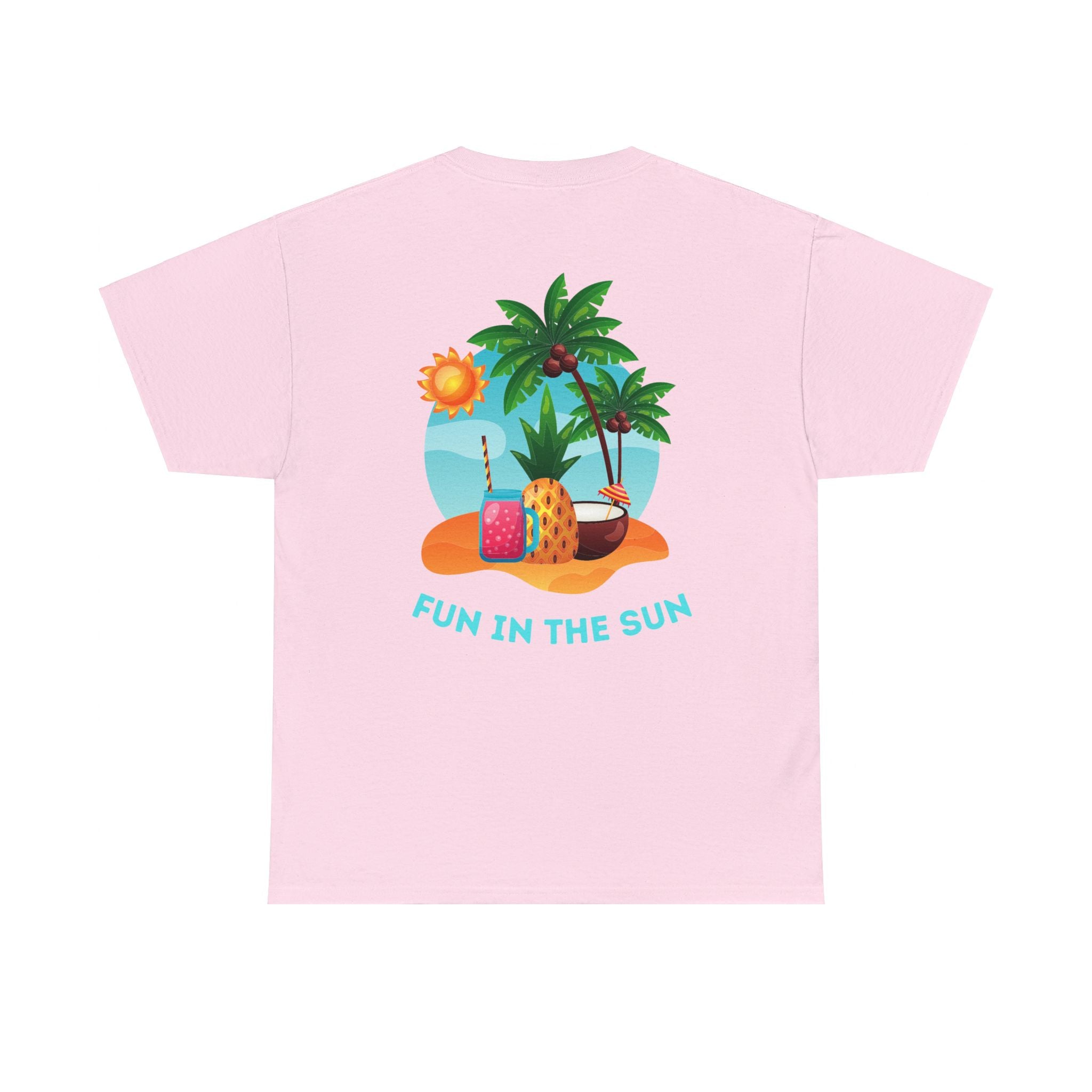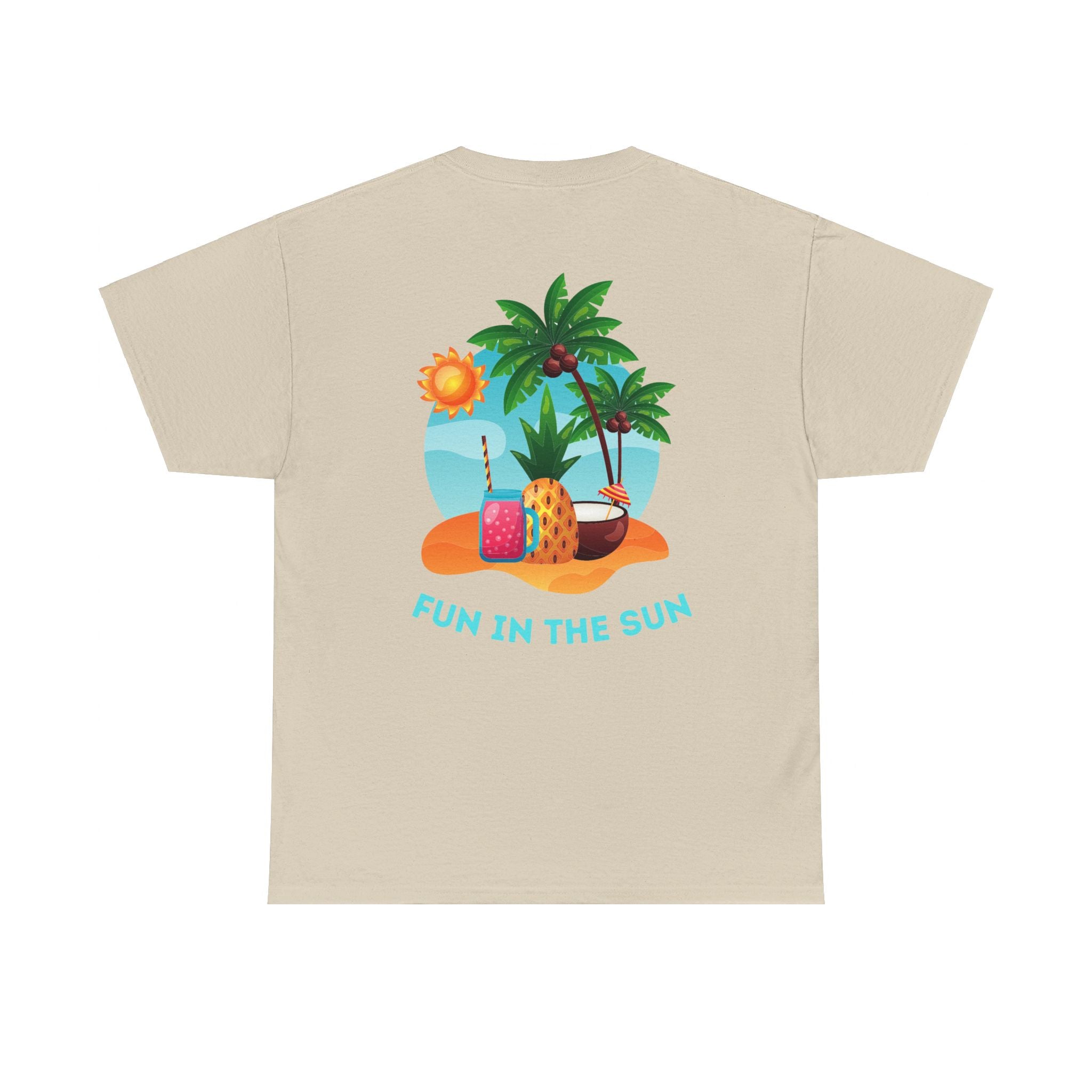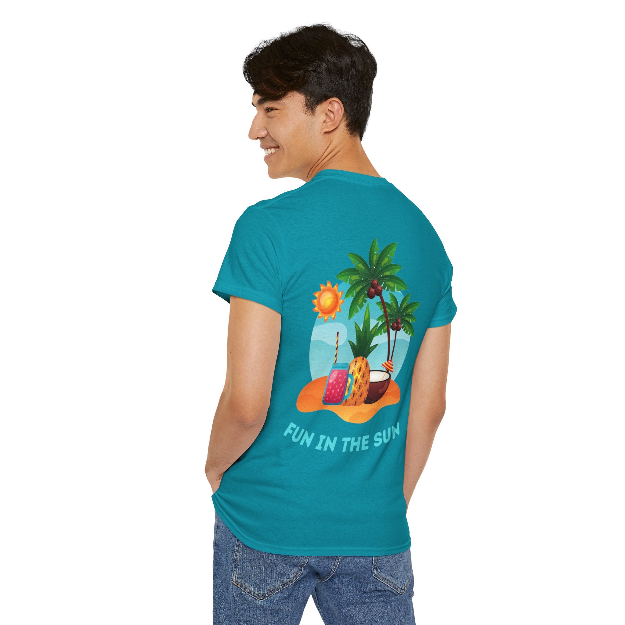 Cotton T-Shirt With Green Blue Have A Good One Logo and Fun In The Sun on Back of Shirt