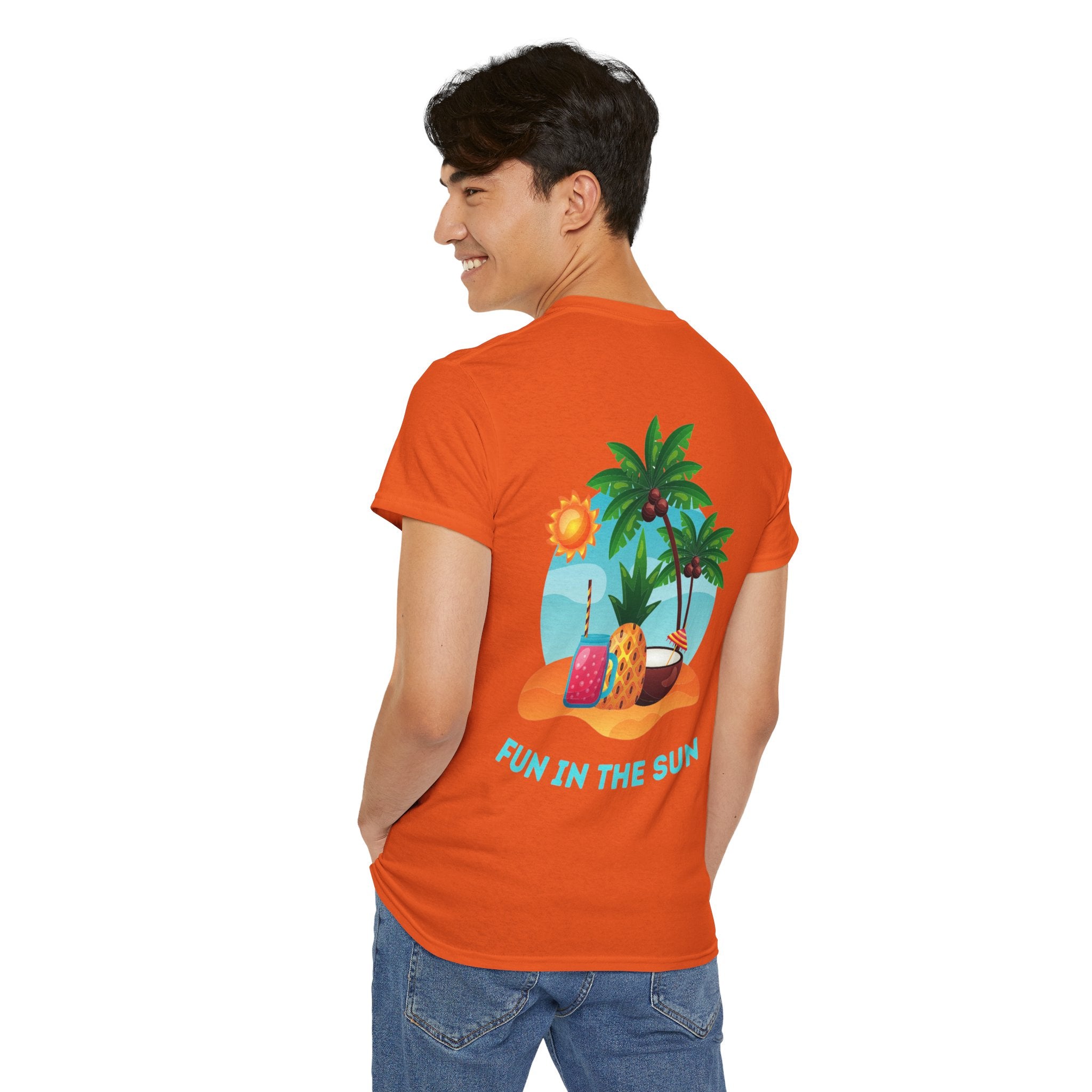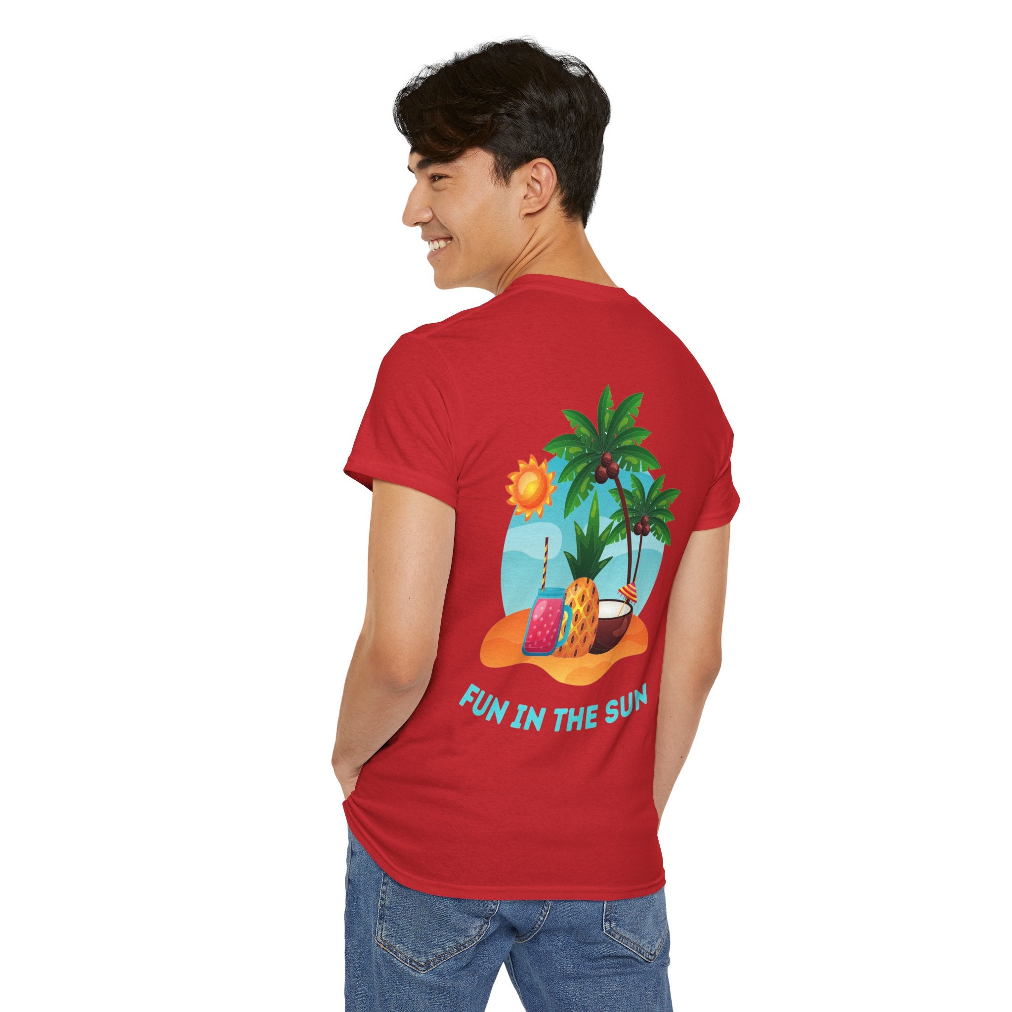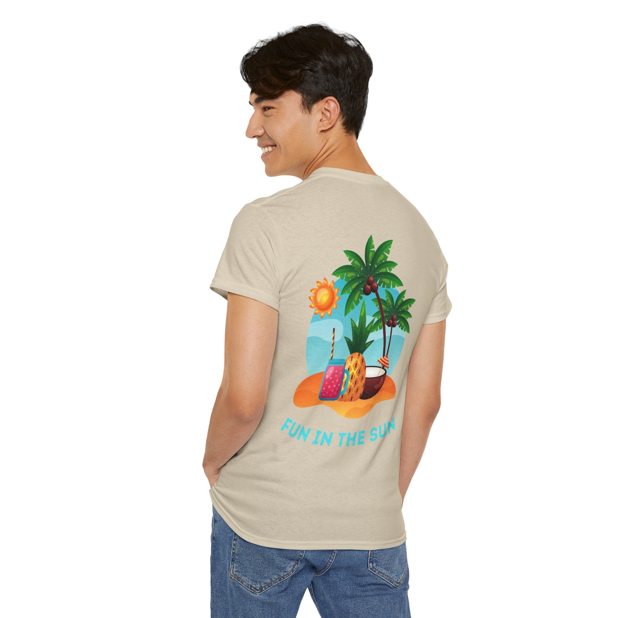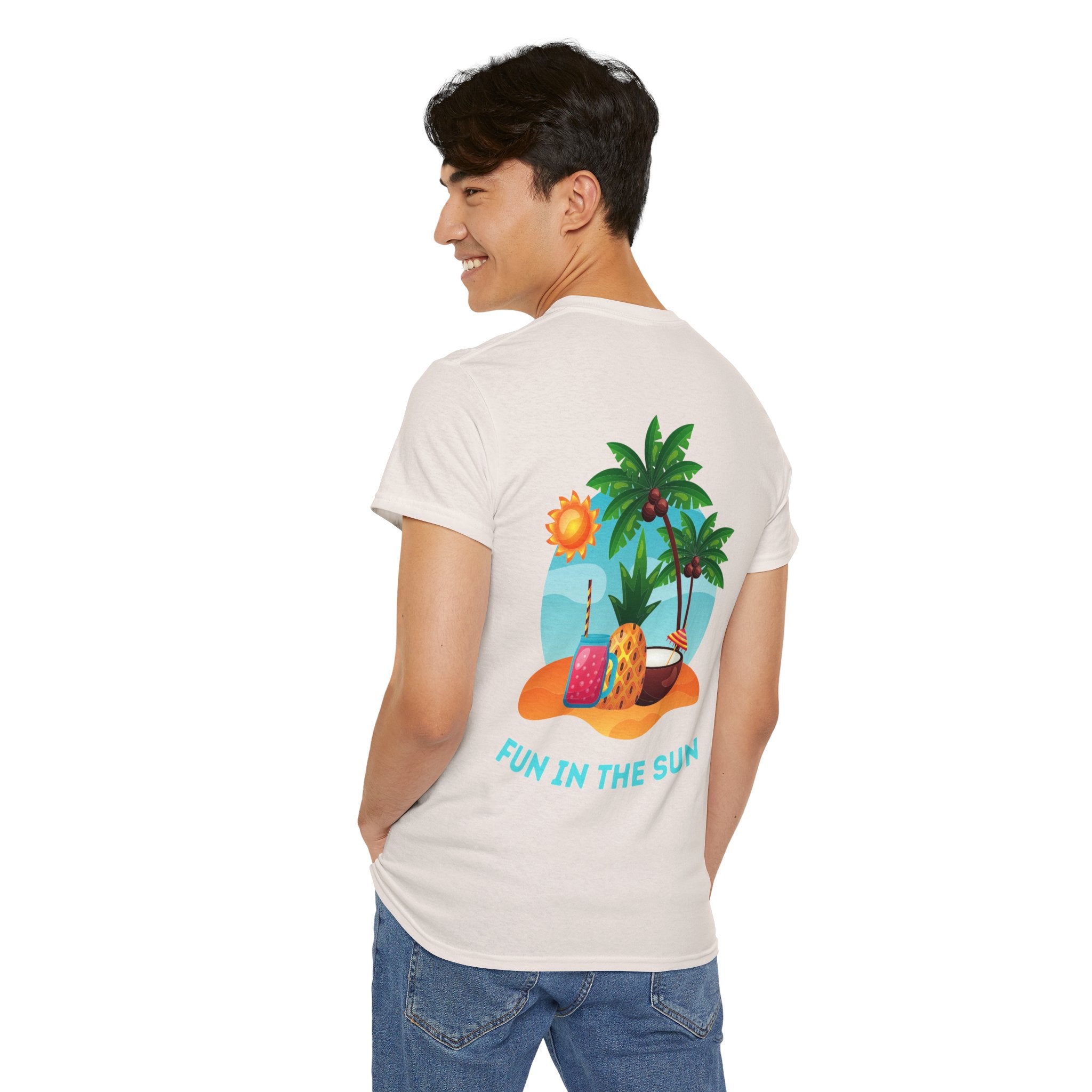 Cotton T-Shirt With Green Blue Have A Good One Logo and Fun In The Sun on Back of Shirt