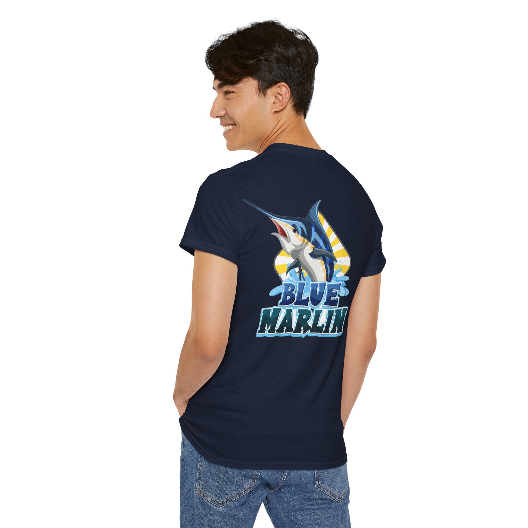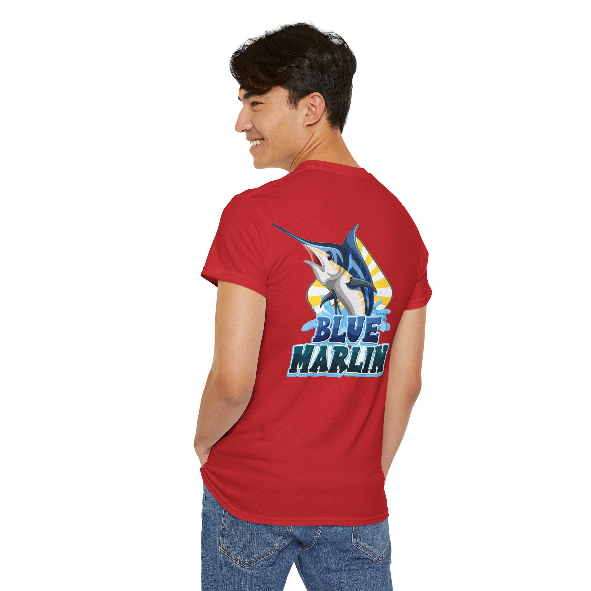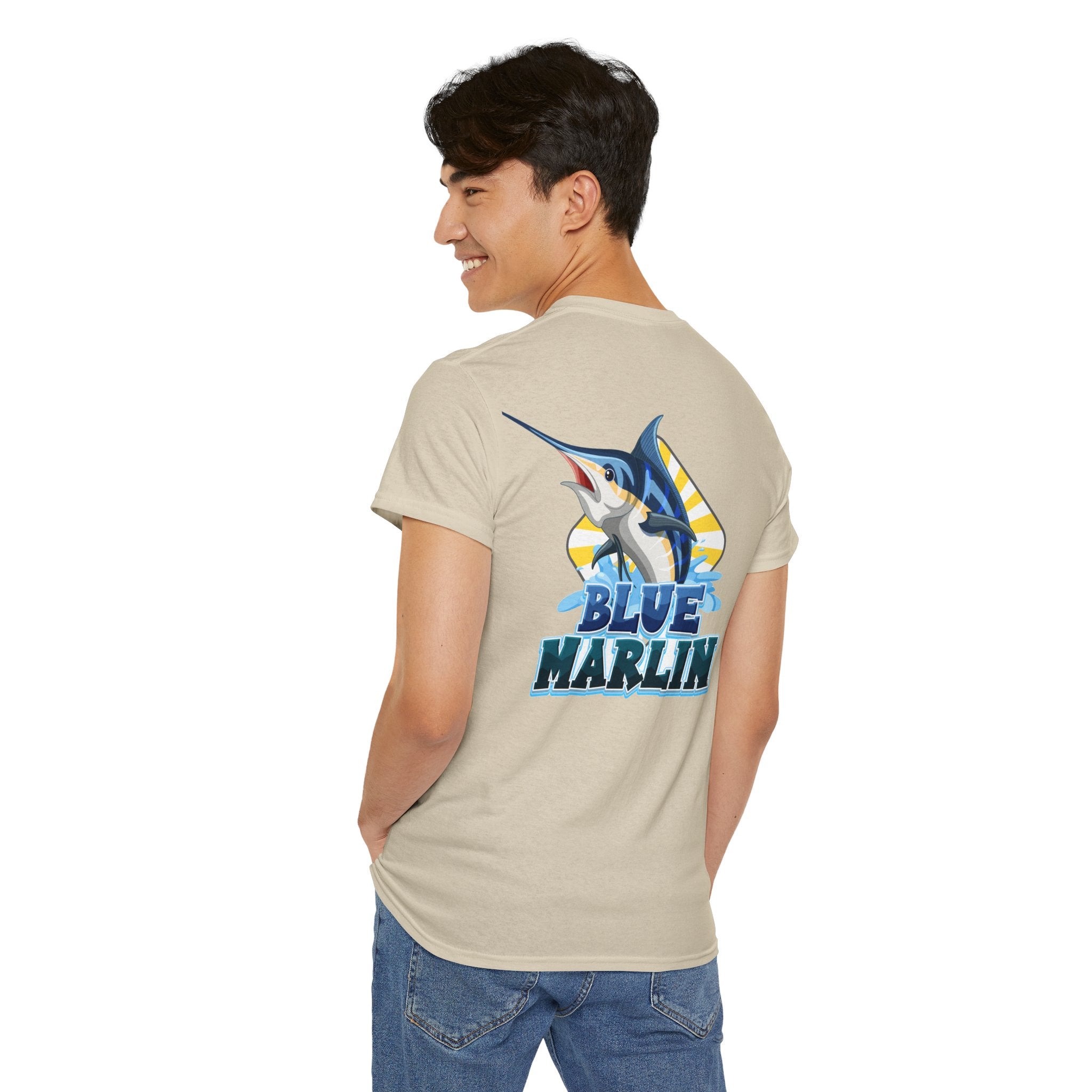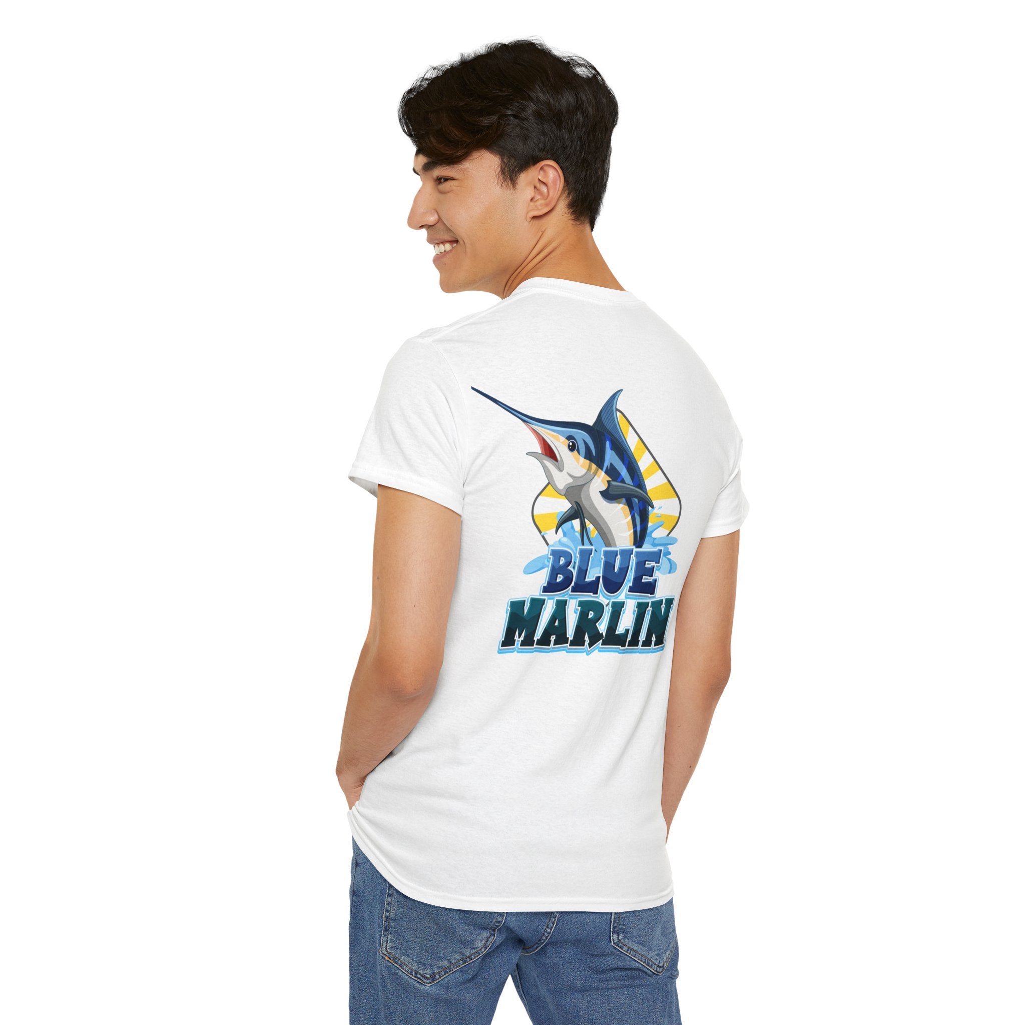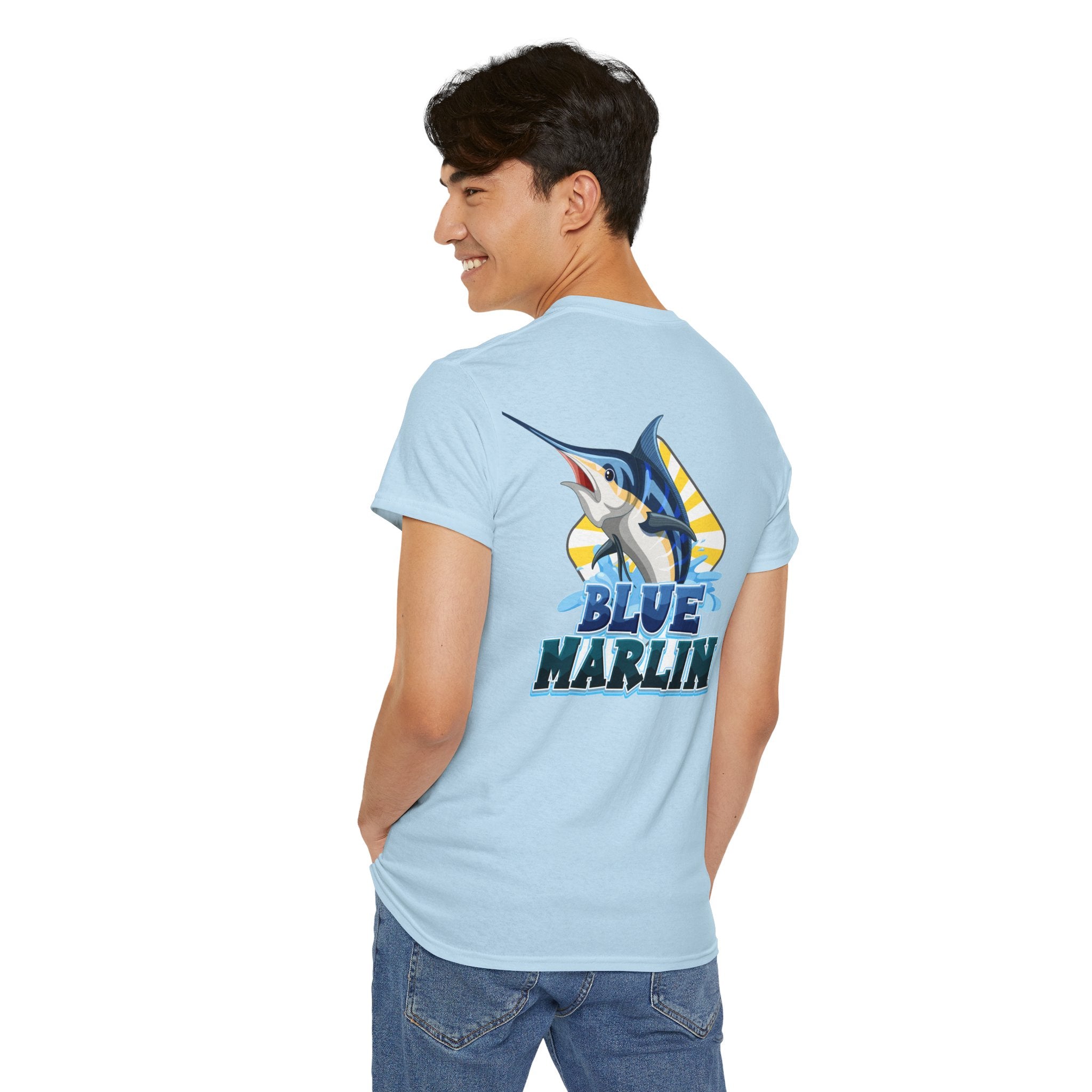 Blue Marlin Fish! Let's go fishing! Hip and comfy casual t-shirt for the beach, boat, sporting event, or just relaxing wherever you are! You can be cool and spread the good vibes with this fun t-shirt! It a relaxed, classic fit designed for comfort and style. It is made from 100% cotton and is both durable and soft. It is unisex so it wears well on anyone and everyone. Let's all Have A Good One! Great vibes, good times, pass it on!