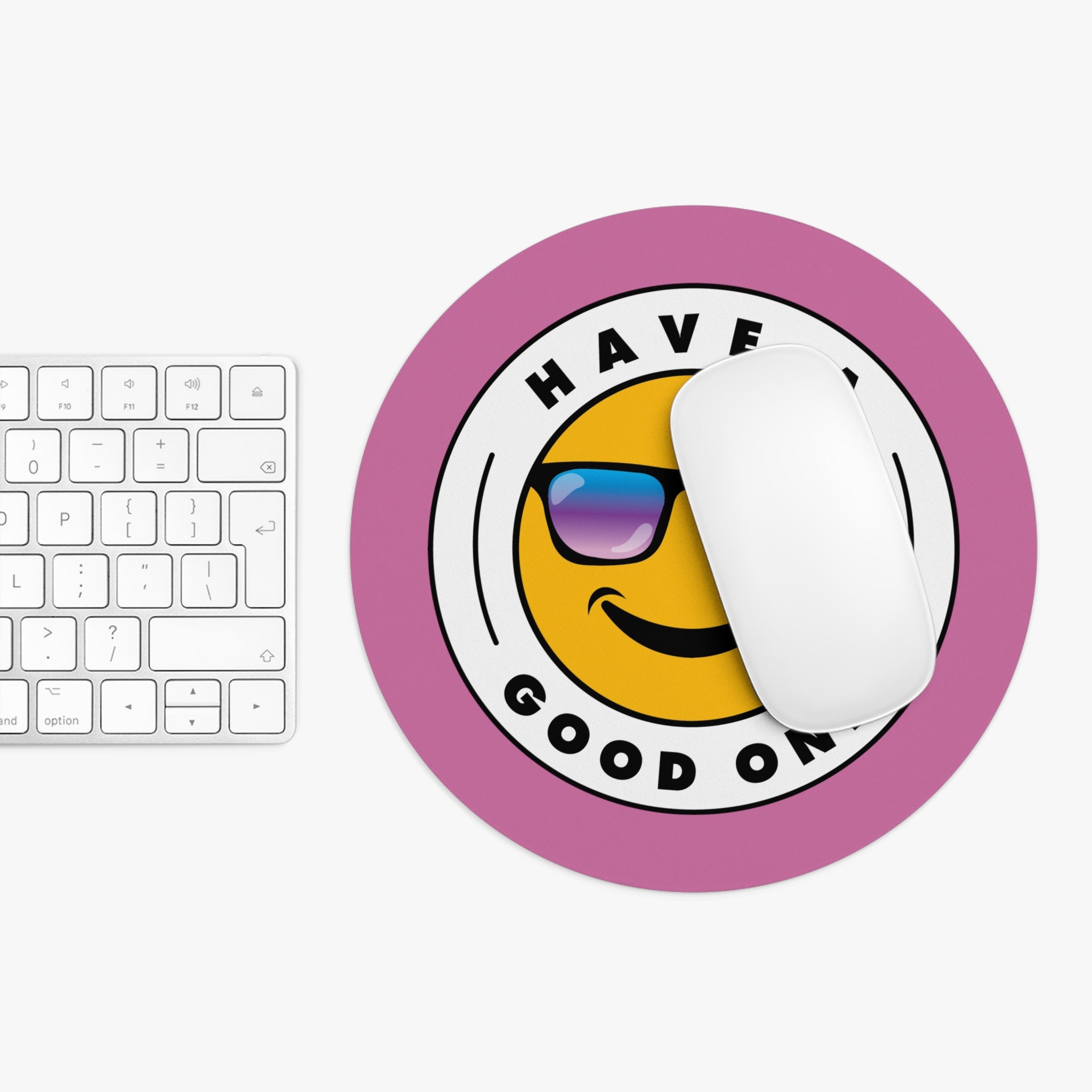 Cool Vibe Mouse Pad With Fun Have A Good One! Logo - Light Pink Color With Blue Purple Logo