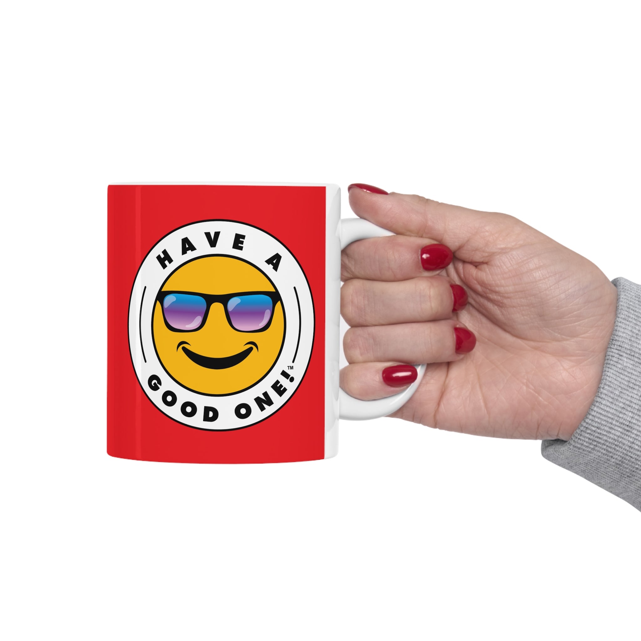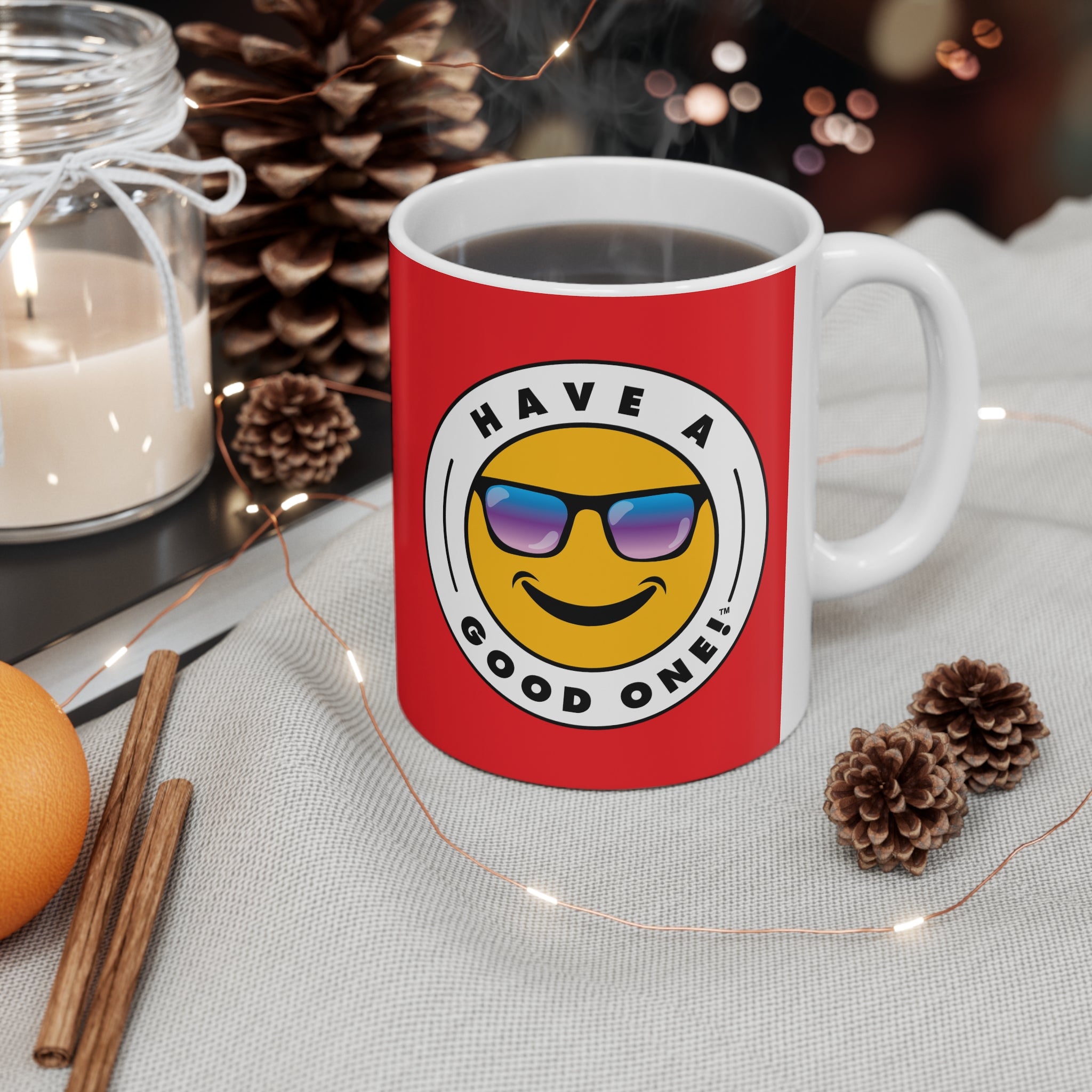 You can get cozy and warm up to an nice cup of coffee, tea or soup with this feel good and fun ceramic coffee mug! Anything you enjoy out of this mug will make that "Aaahhh!" moment even better. The mug is BPA and Lead-free, microwave and dishwasher-safe, and made of durable ceramic in this ideal 11-ounce size. This is the perfect gift for coffee, tea, and chocolate lovers. No matter what you are enjoying in this mug you are sure to Have A Good One! while using it!