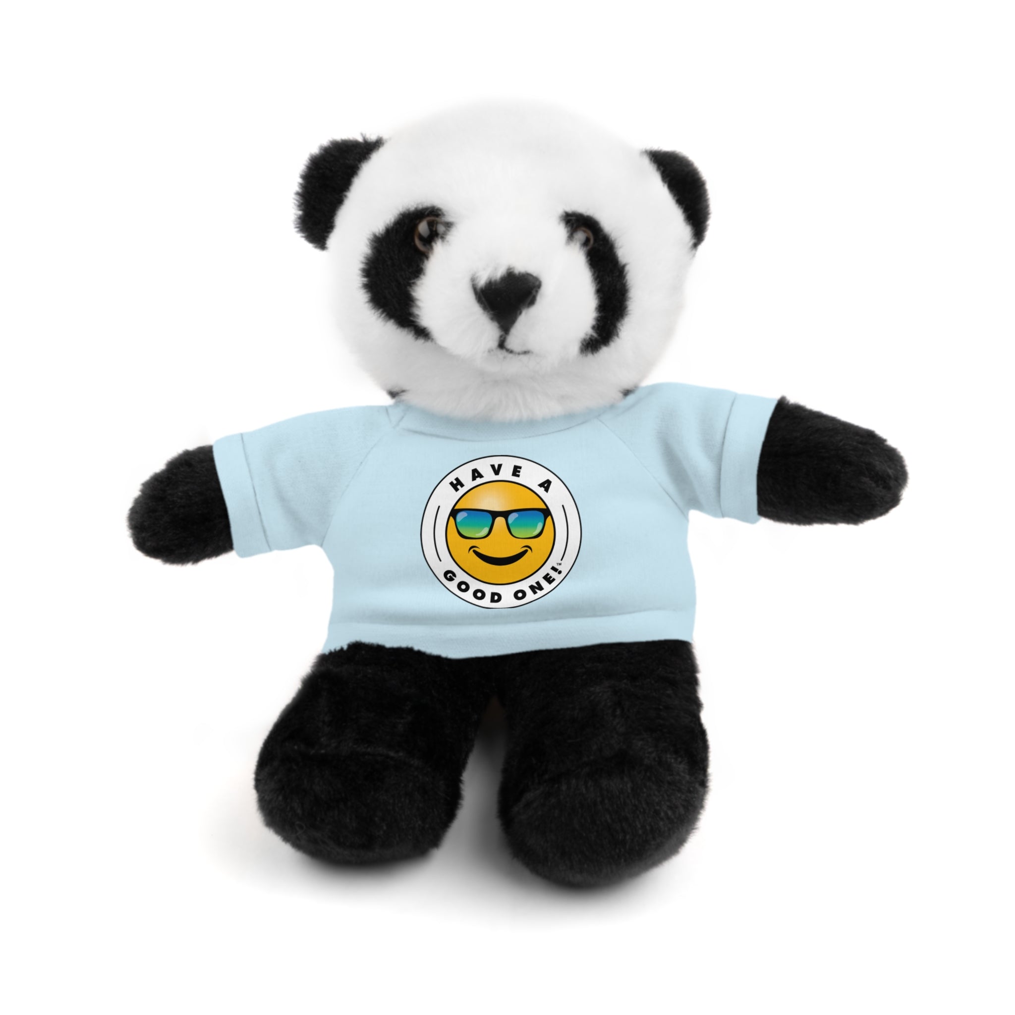 Designed to put ear-to-ear smiles on any child! These stuffed animals come with a playful attitude and cheerful tees. Each plushie is 8" tall and features polyester and plastic pellet stuffing. The tees are 100% cotton. Ideal for children 3 and older but perfect for all ages. They are cuddly and fun. They also make great gifts. You can't help but smile looking at these adorable stuffed animals. Get one today and Have A Good One!