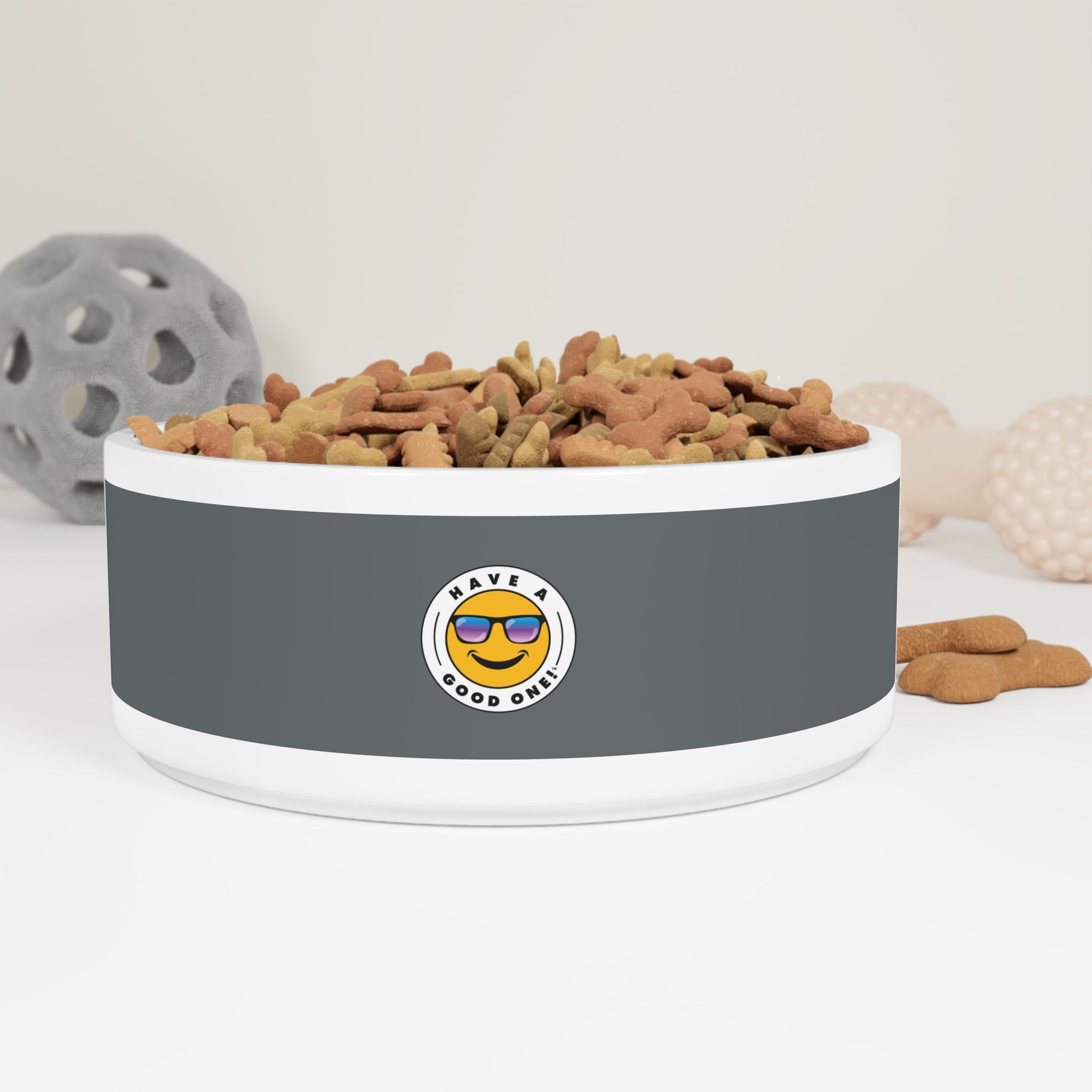 Posh Pet Have A Good One! Pet Bowl - Dark Grey Color With Blue Purple Logo