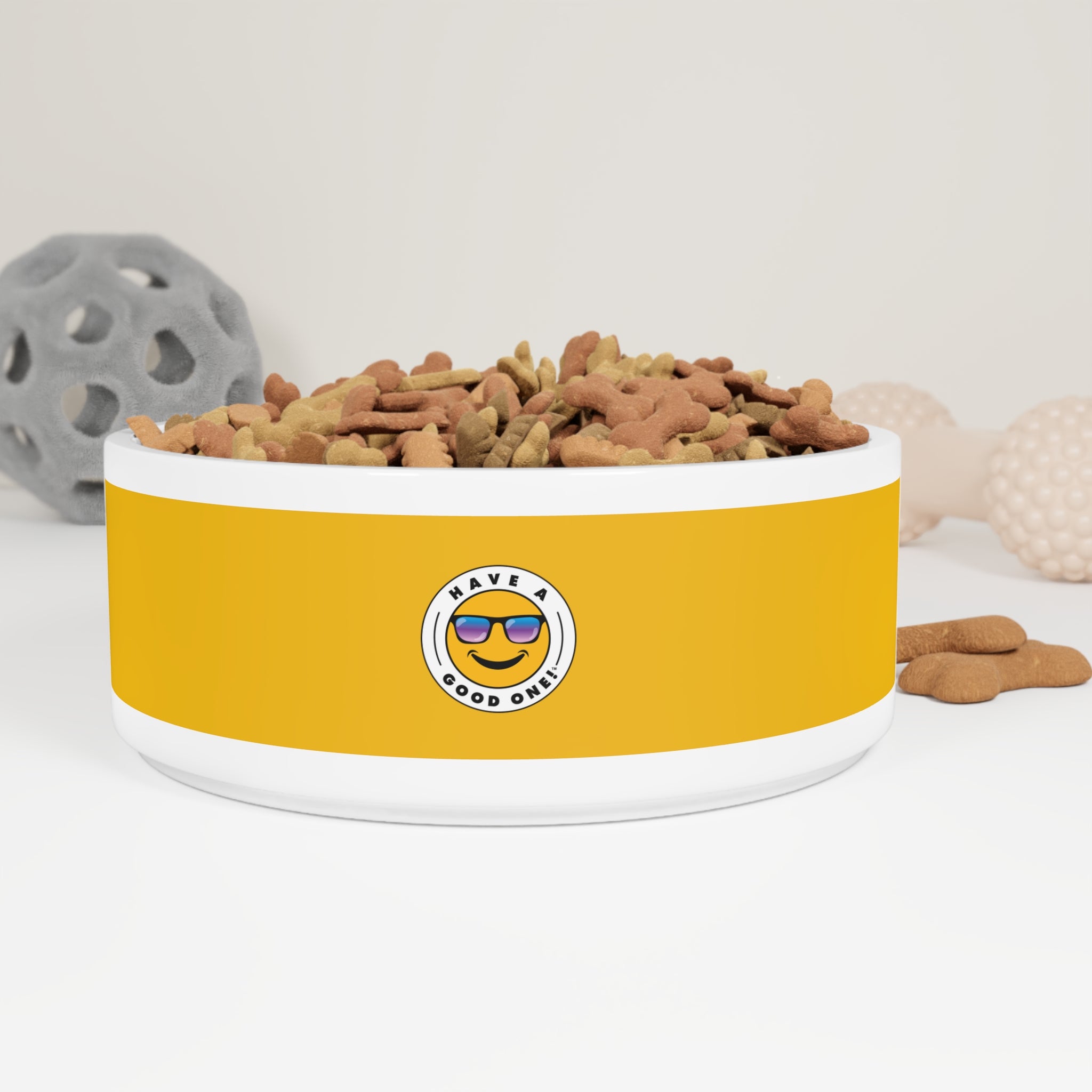 This large pet bowl is as stylish as it is practical! It is a great way to introduce a bit more pet personality into feeding time for your pet. These ceramic bowls measure 6" in diameter, 2.25" in height and 19" in circumference. It holds 16 oz of pet food. Ideal for both cats and dogs. This bowl pairs perfectly with our pet food mat as a winning combination for meal time. This bowl will make your pet feel special and will bring cheer and a smile. We know your pet will enjoy each meal using this fun bowl and will Have A Good One!