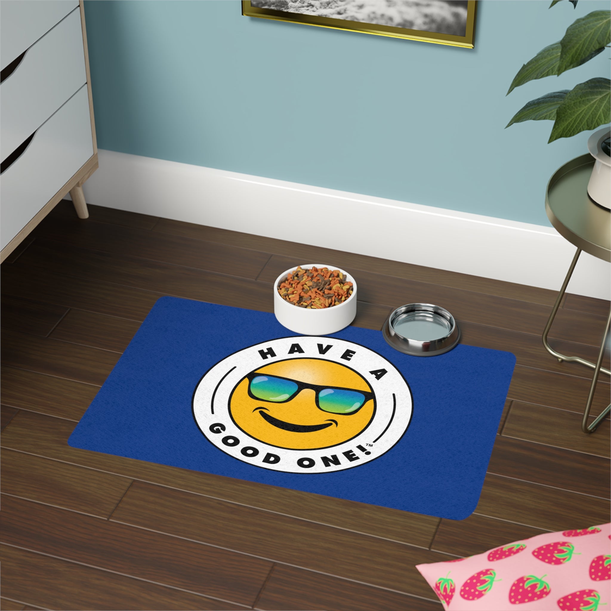 Posh Pet Have A Good One! Food Mat - Dark Blue Color With Blue Green Logo