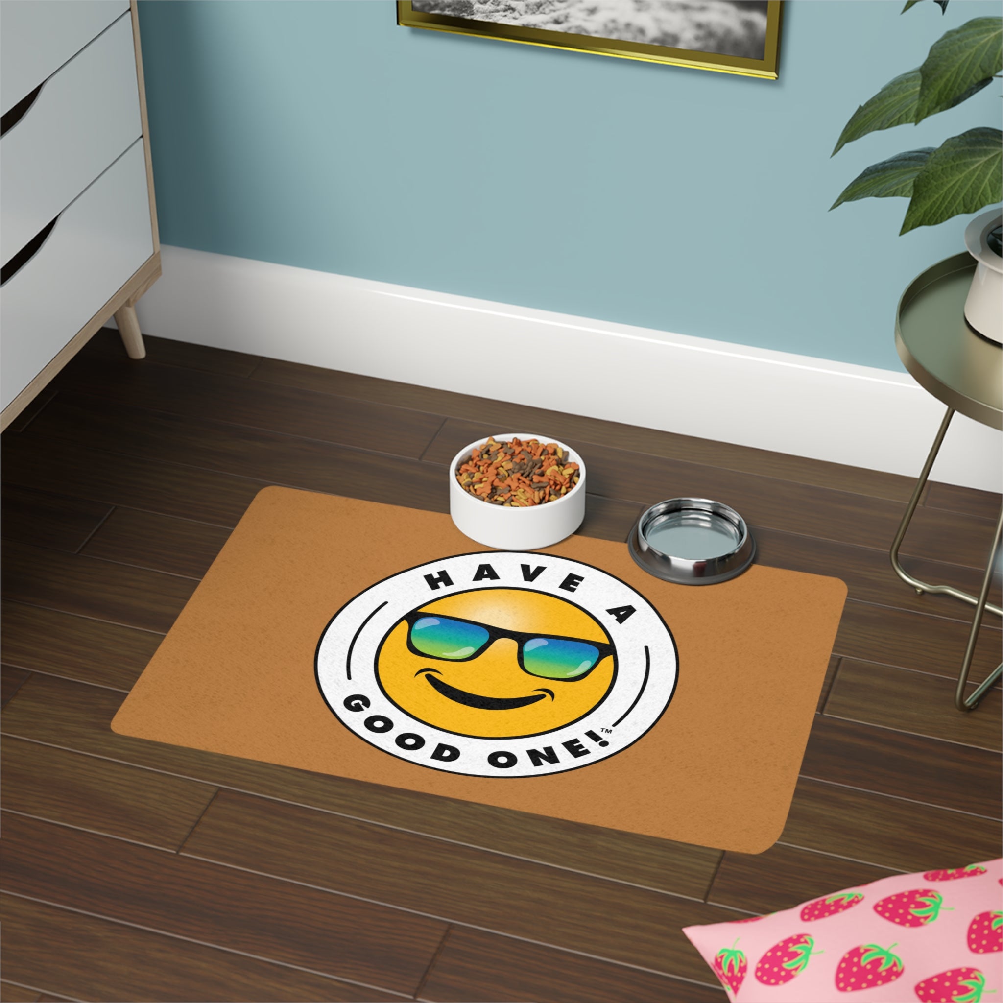 Posh Pet Have A Good One! Food Mat - Light Brown Color With Blue Green Logo