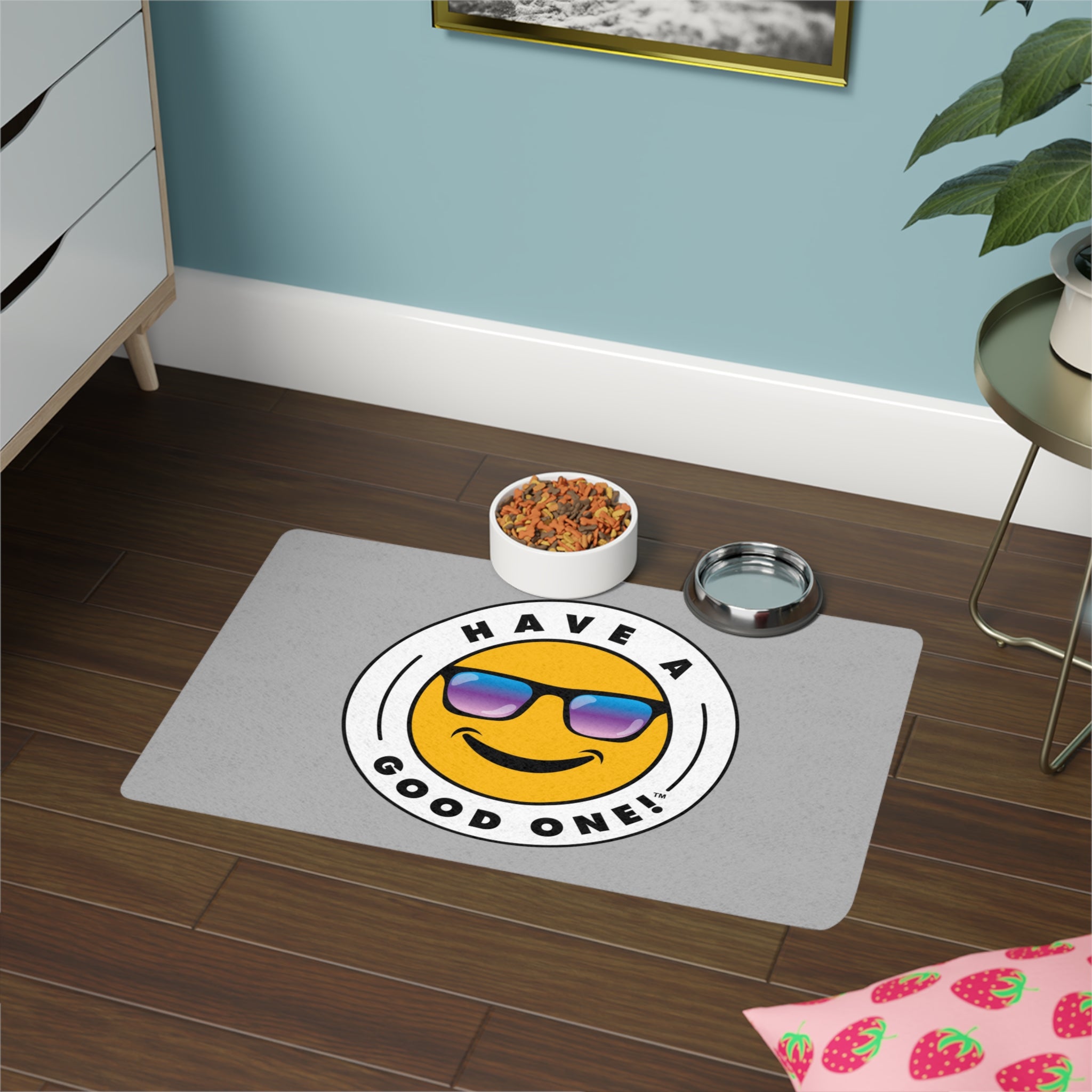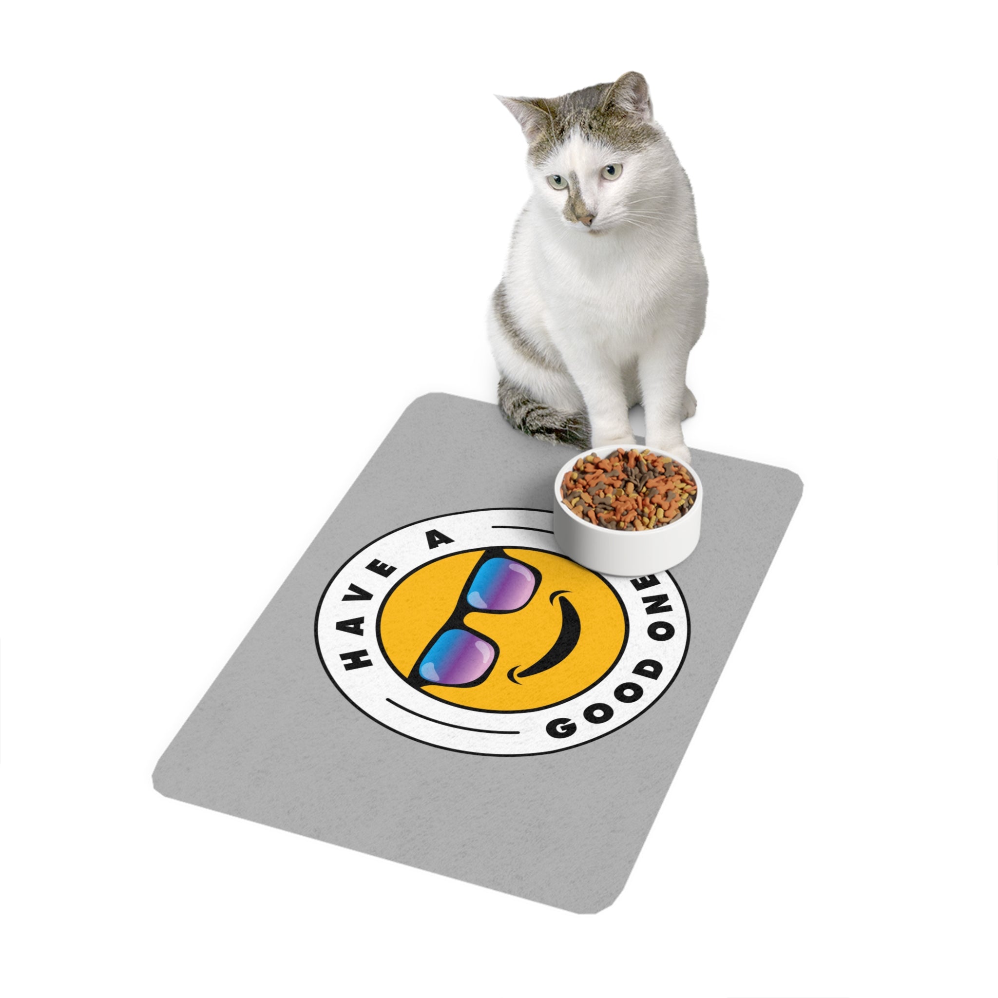 Posh Pet Have A Good One! Food Mat - Light Grey Color With Blue Purple Logo