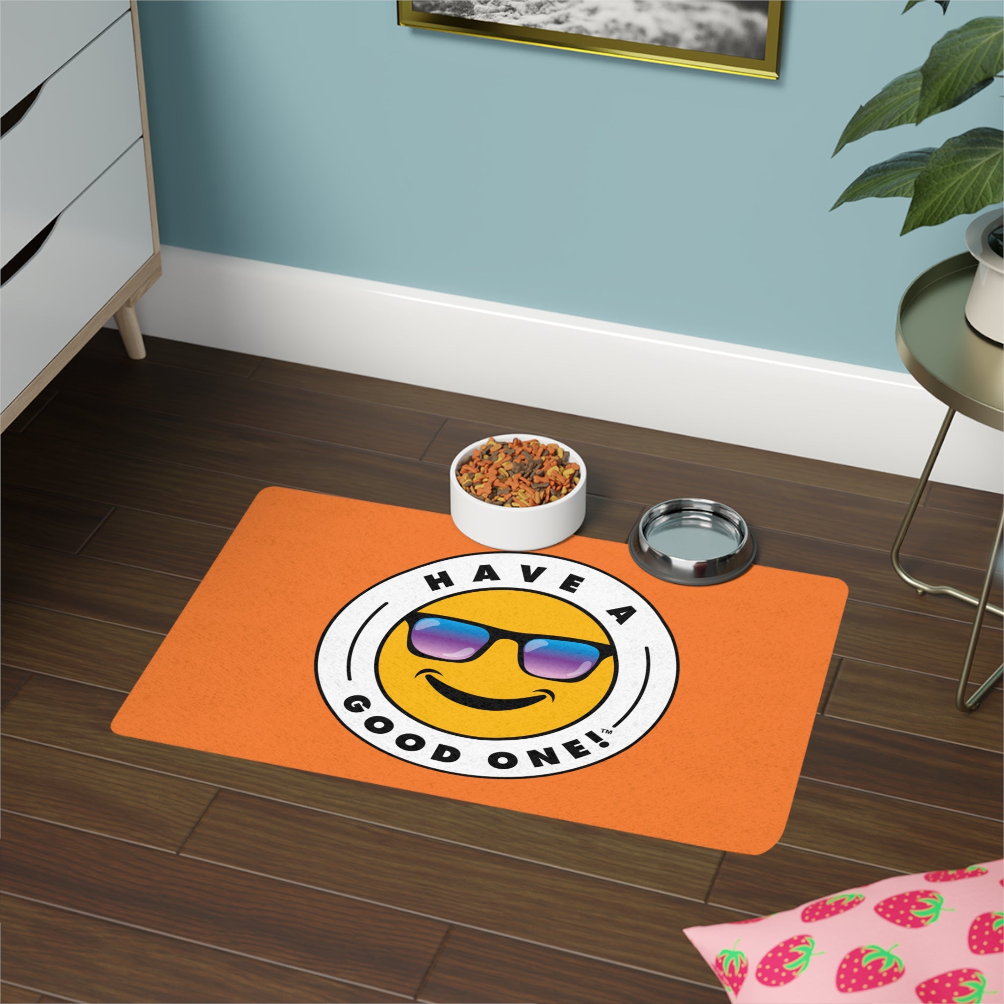 Posh Pet Have A Good One! Food Mat - Orange Color With Blue Purple Logo