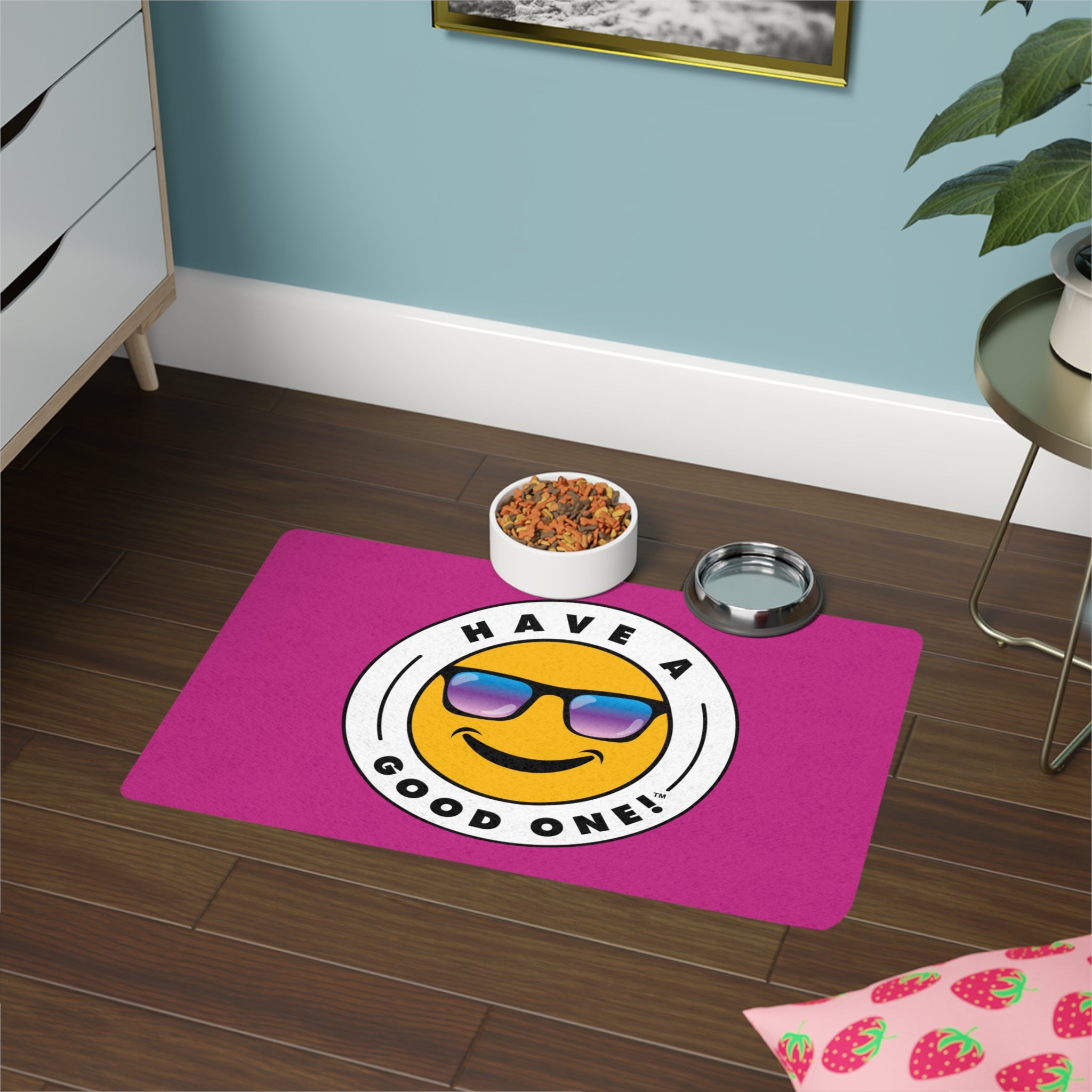 Posh Pet Have A Good One! Food Mat - Pink Color With Blue Purple Logo
