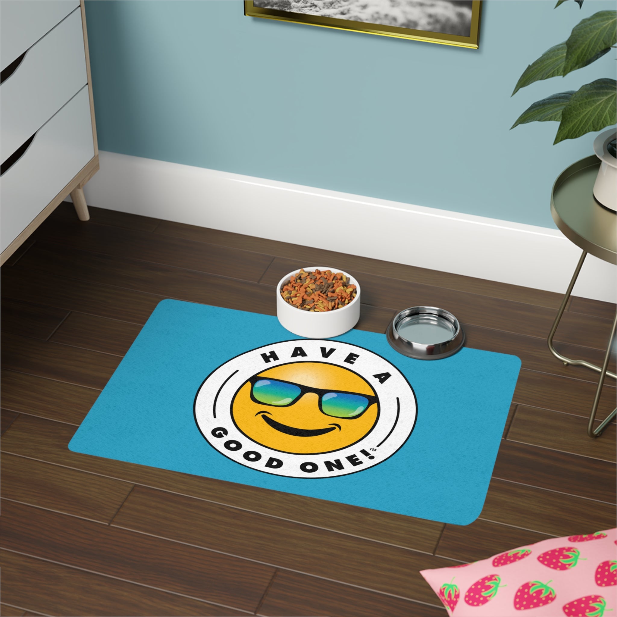 Posh Pet Have A Good One! Food Mat - Turquoise Color With Blue Green Logo