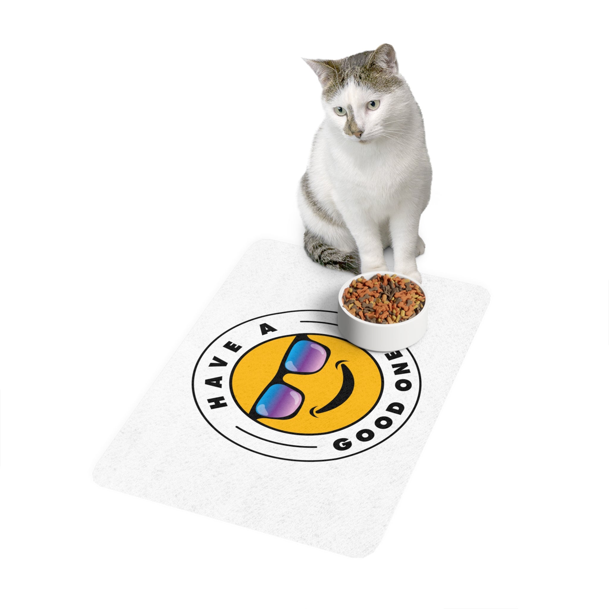 Posh Pet Have A Good One! Food Mat - White Color With Blue Purple Logo
