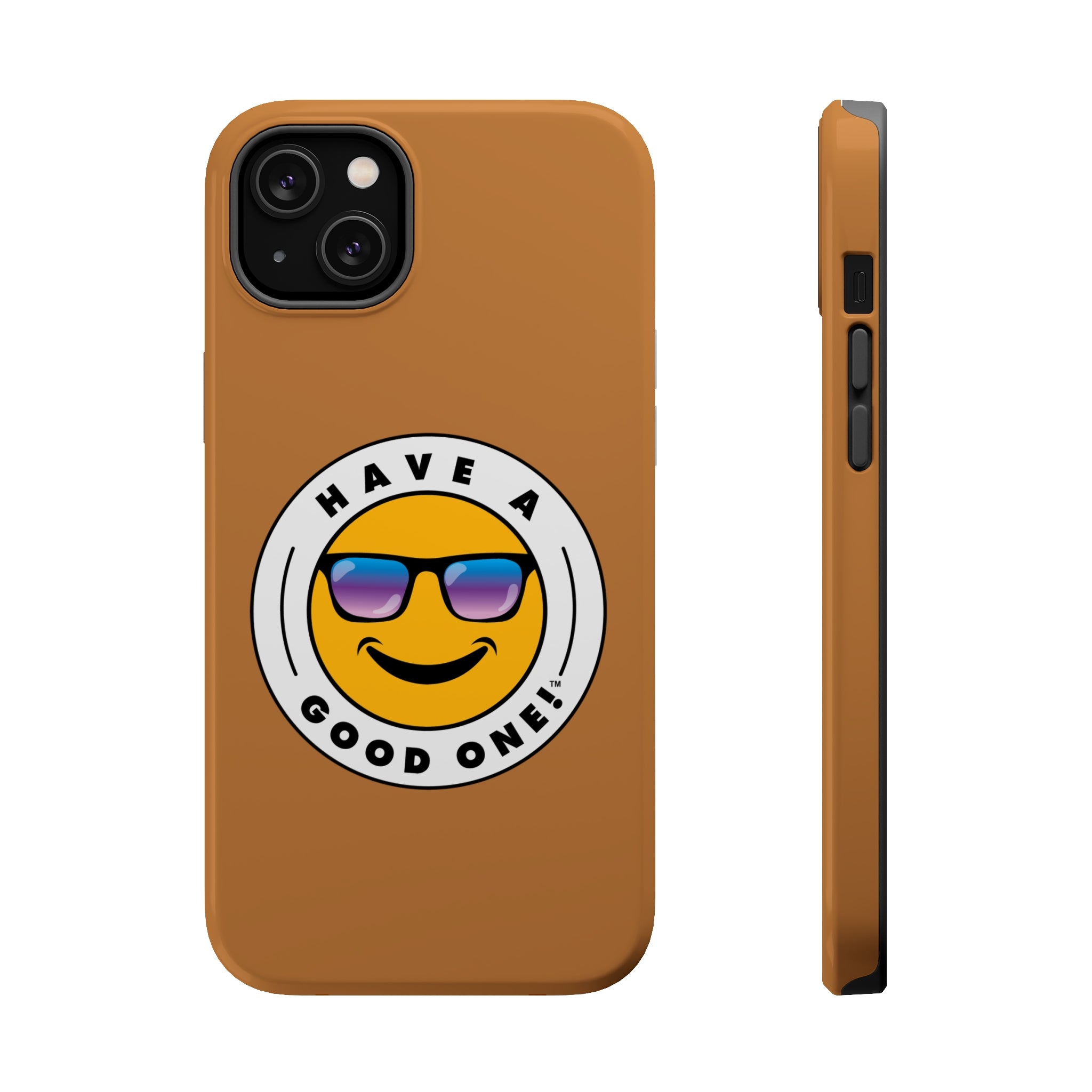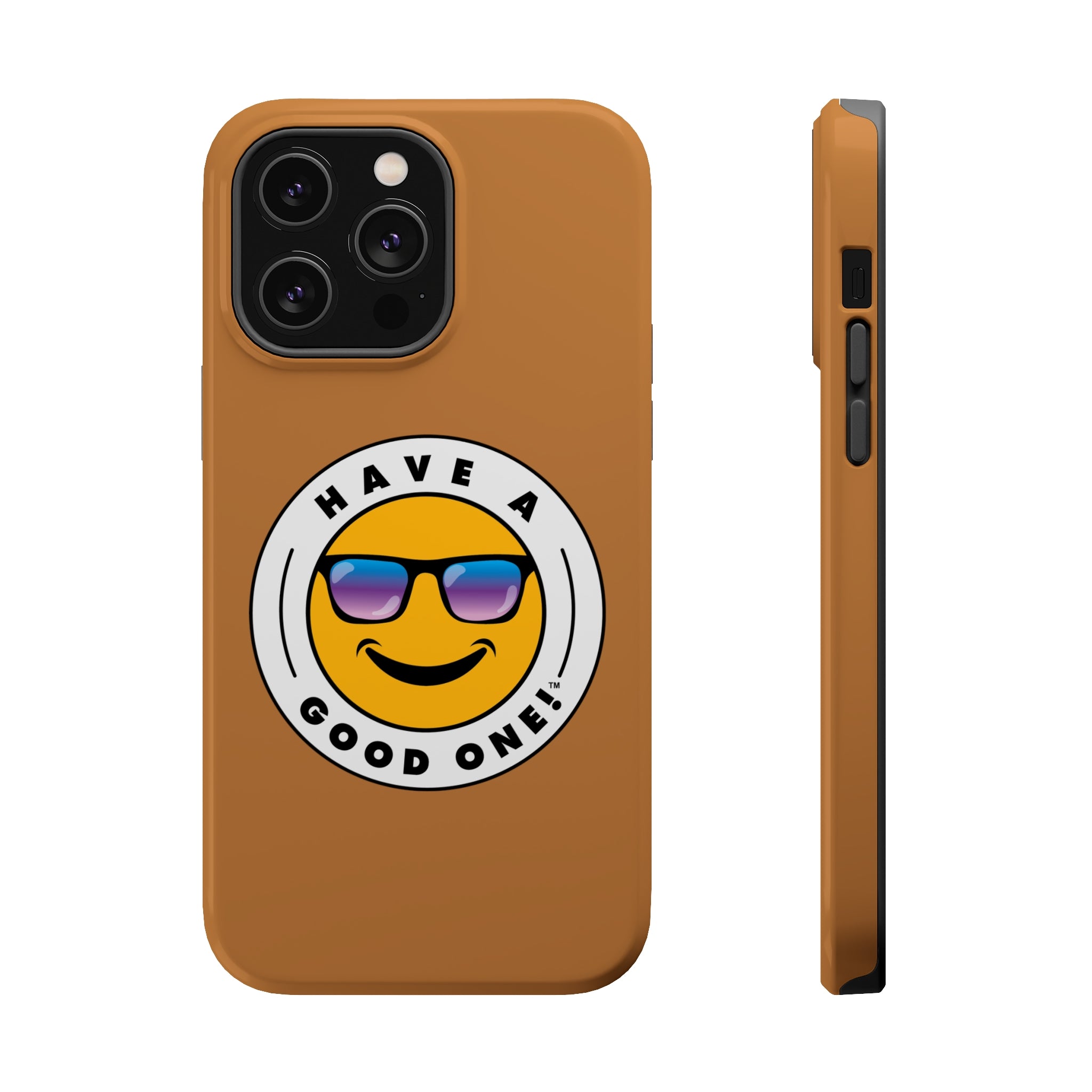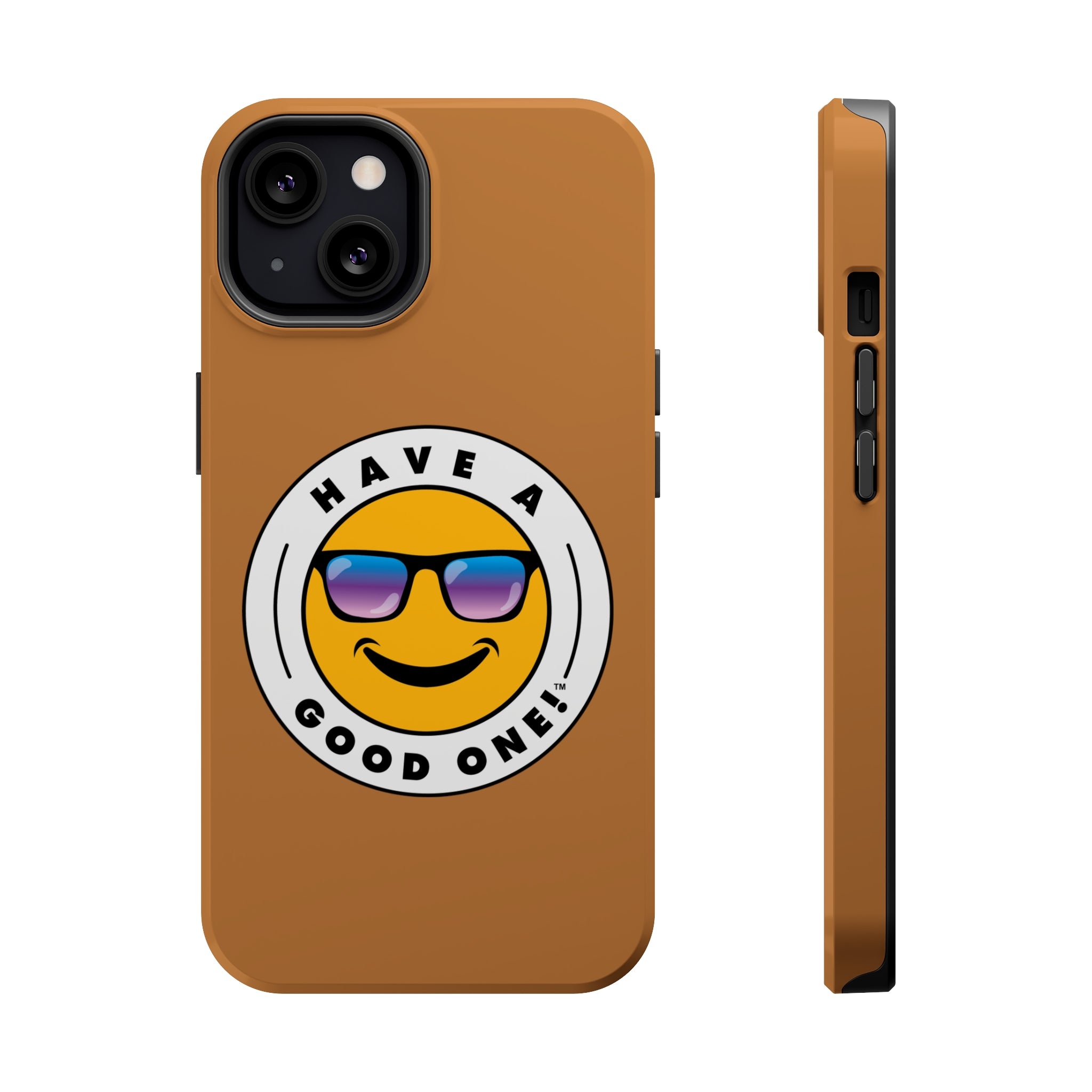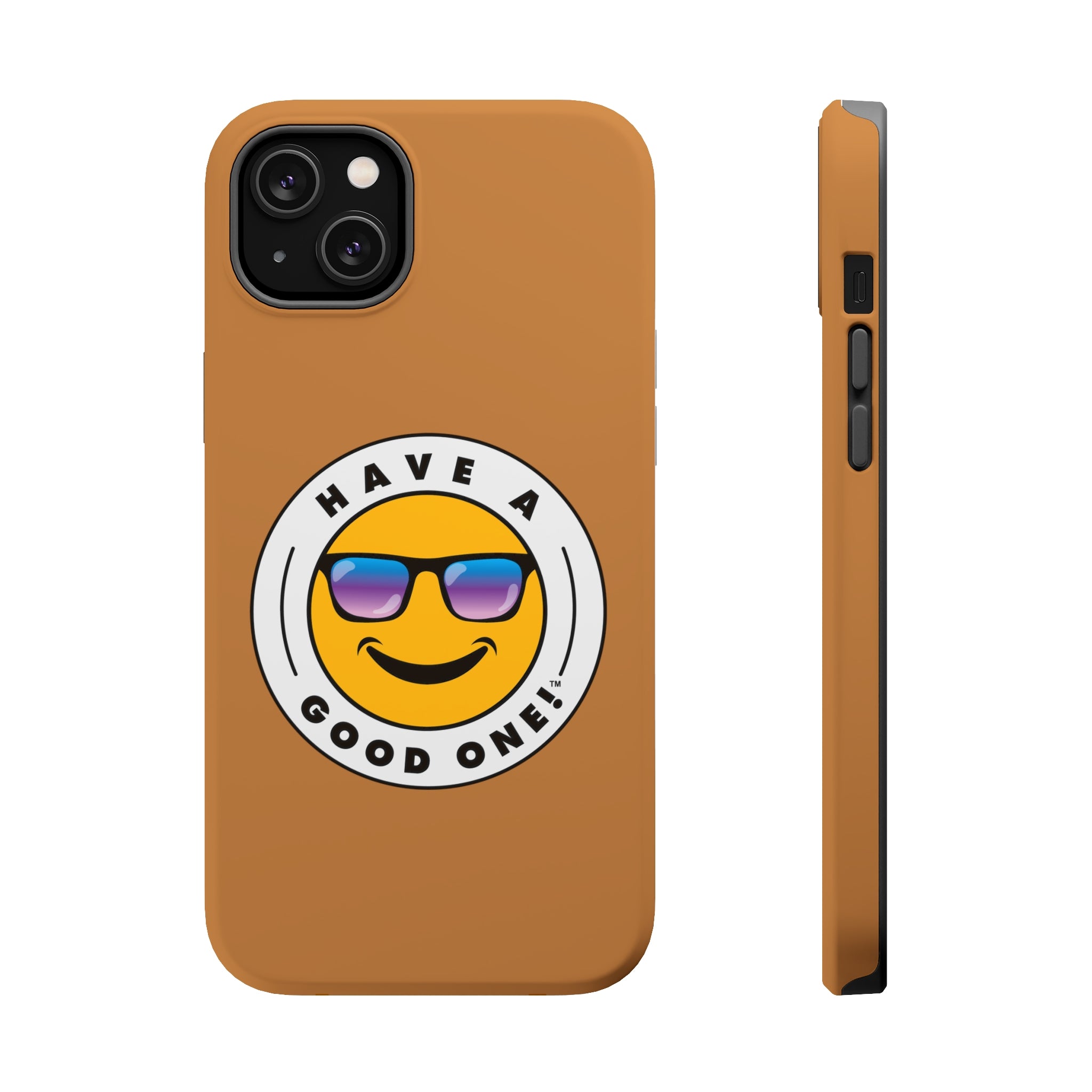 Fun On The Run MagSafe Tough Phone Case - Light Brown Color With Blue Purple Have a Good One! Logo