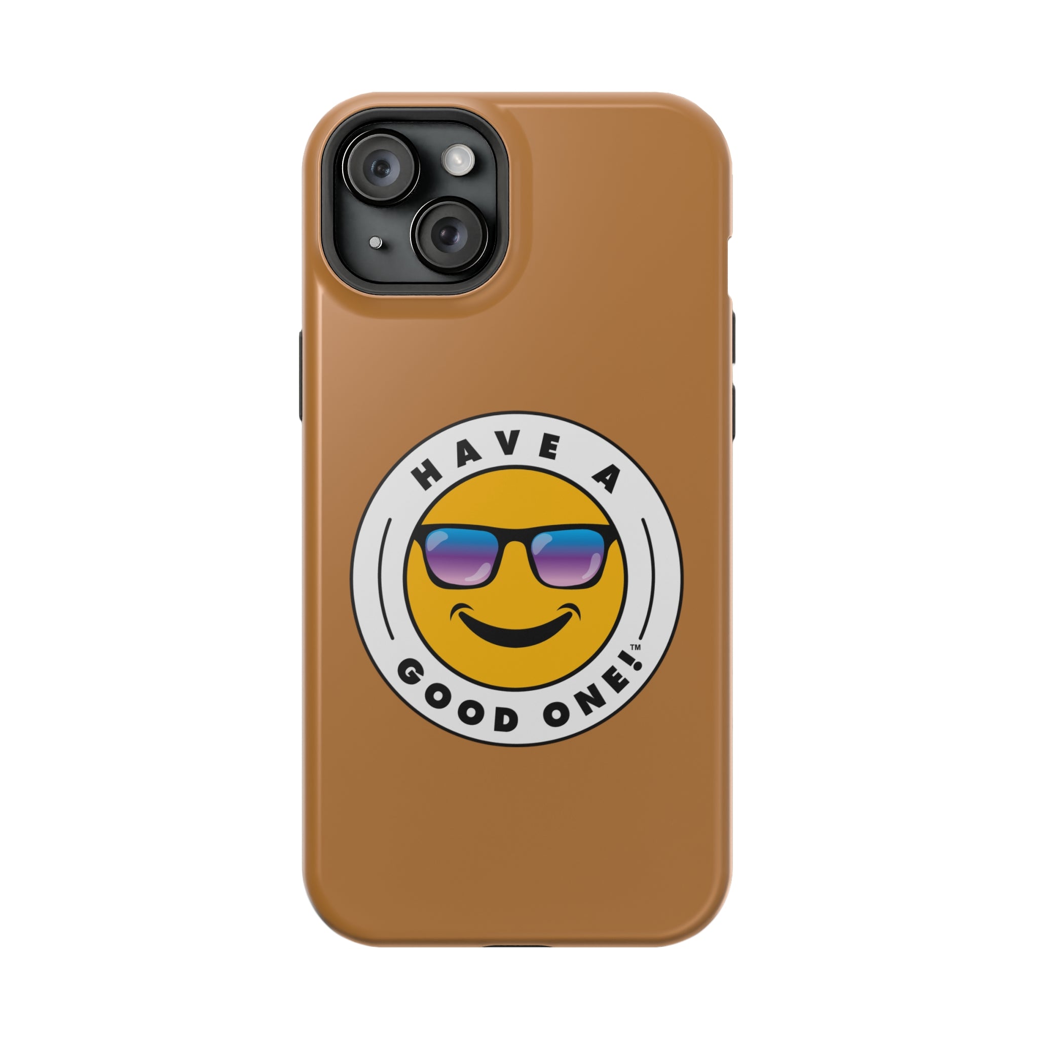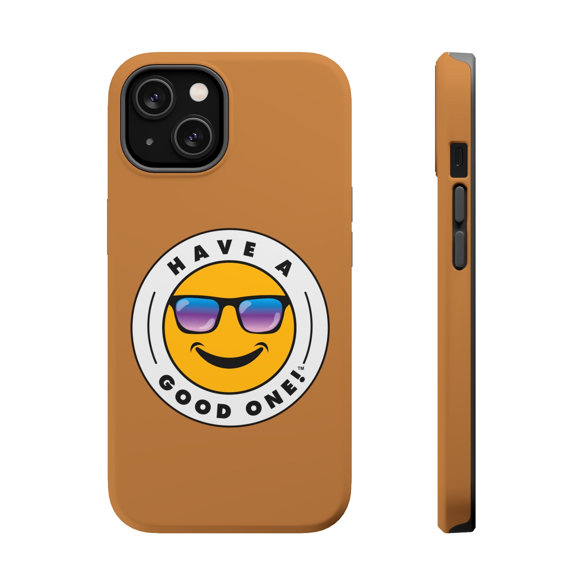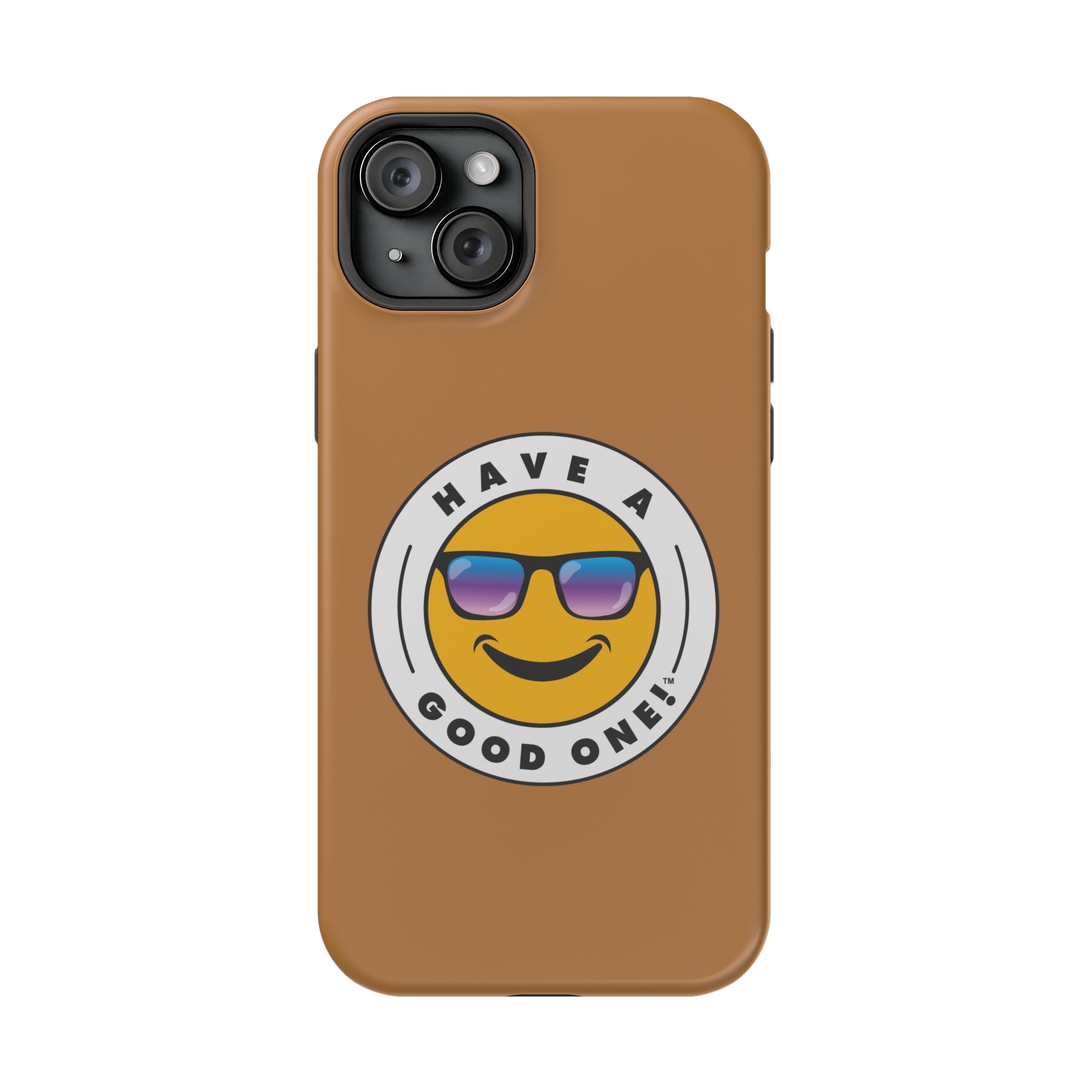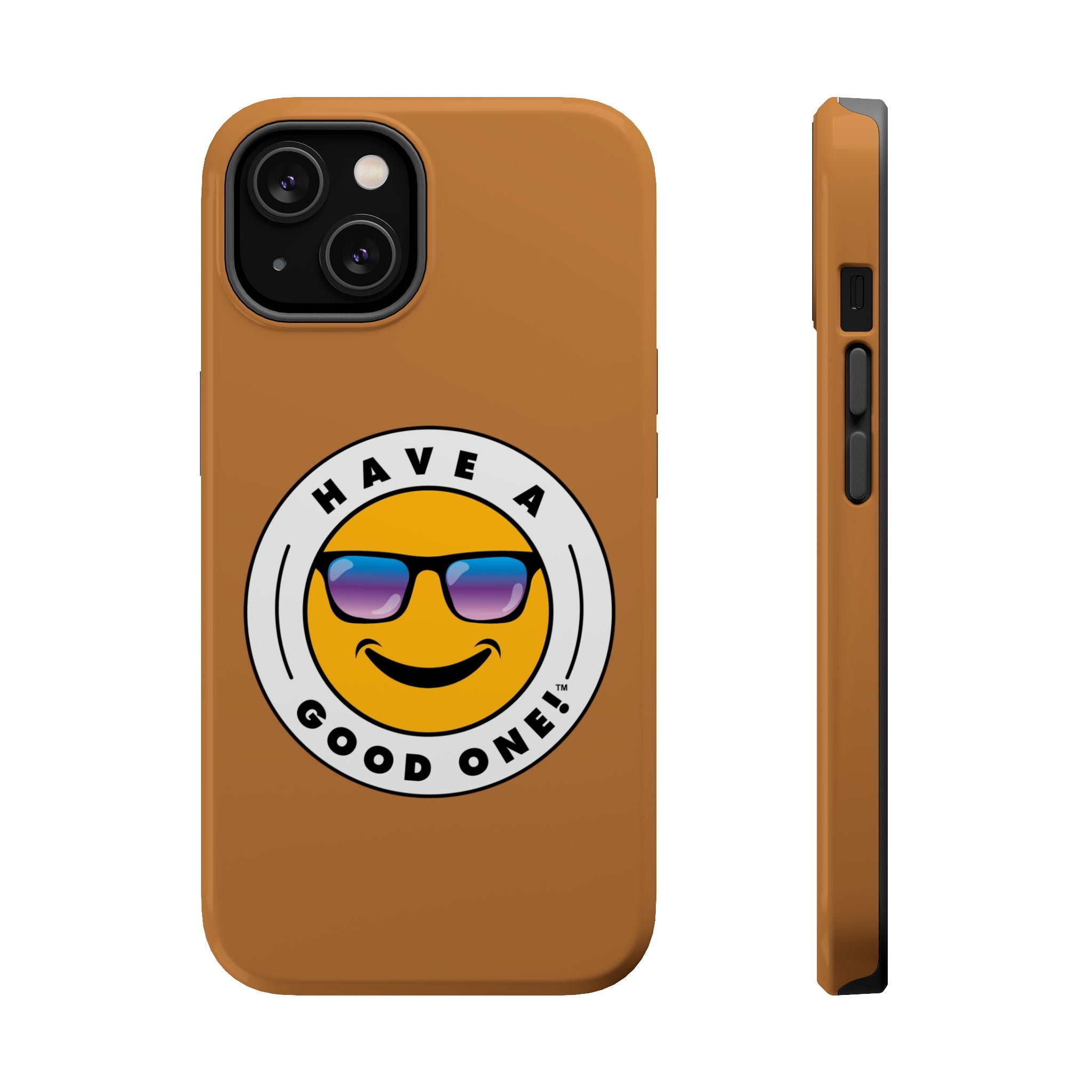 Fun On The Run MagSafe Tough Phone Case - Light Brown Color With Blue Purple Have a Good One! Logo