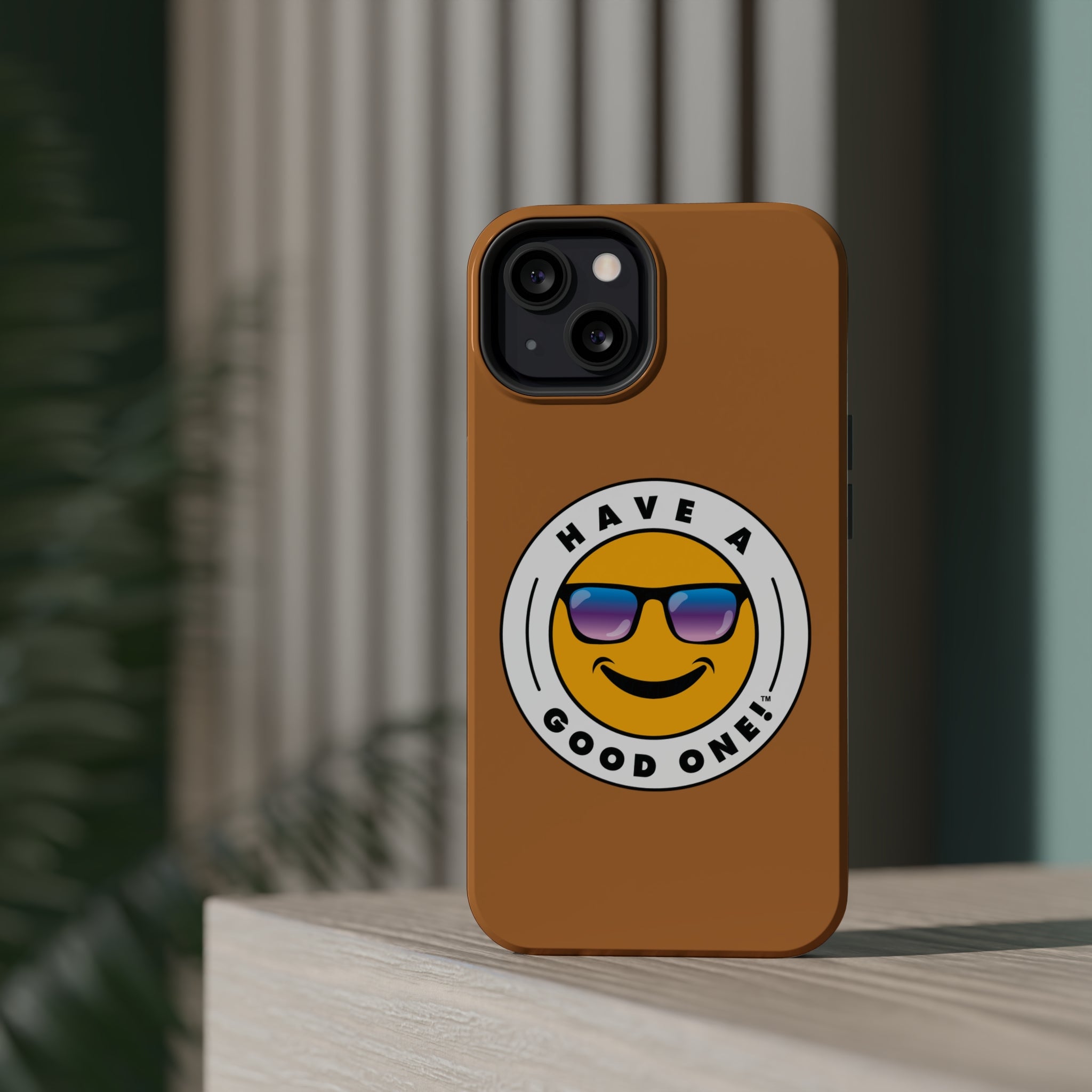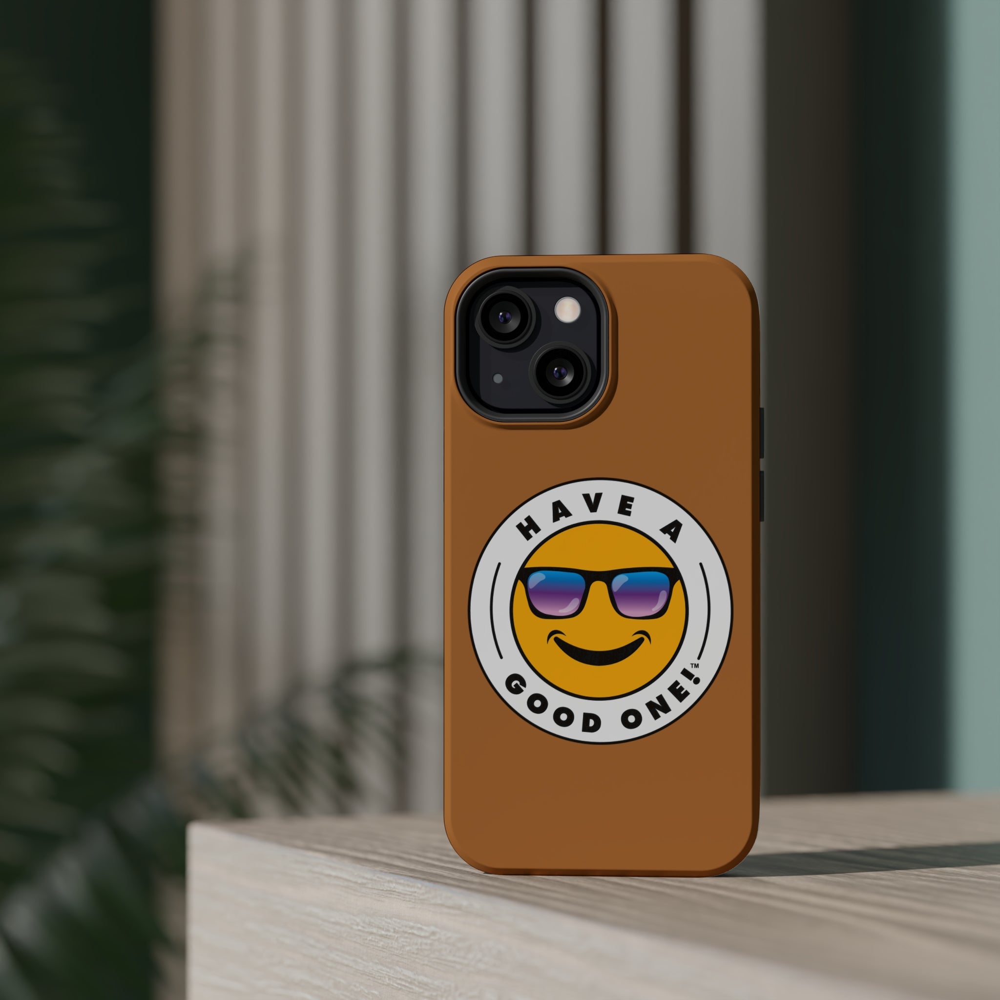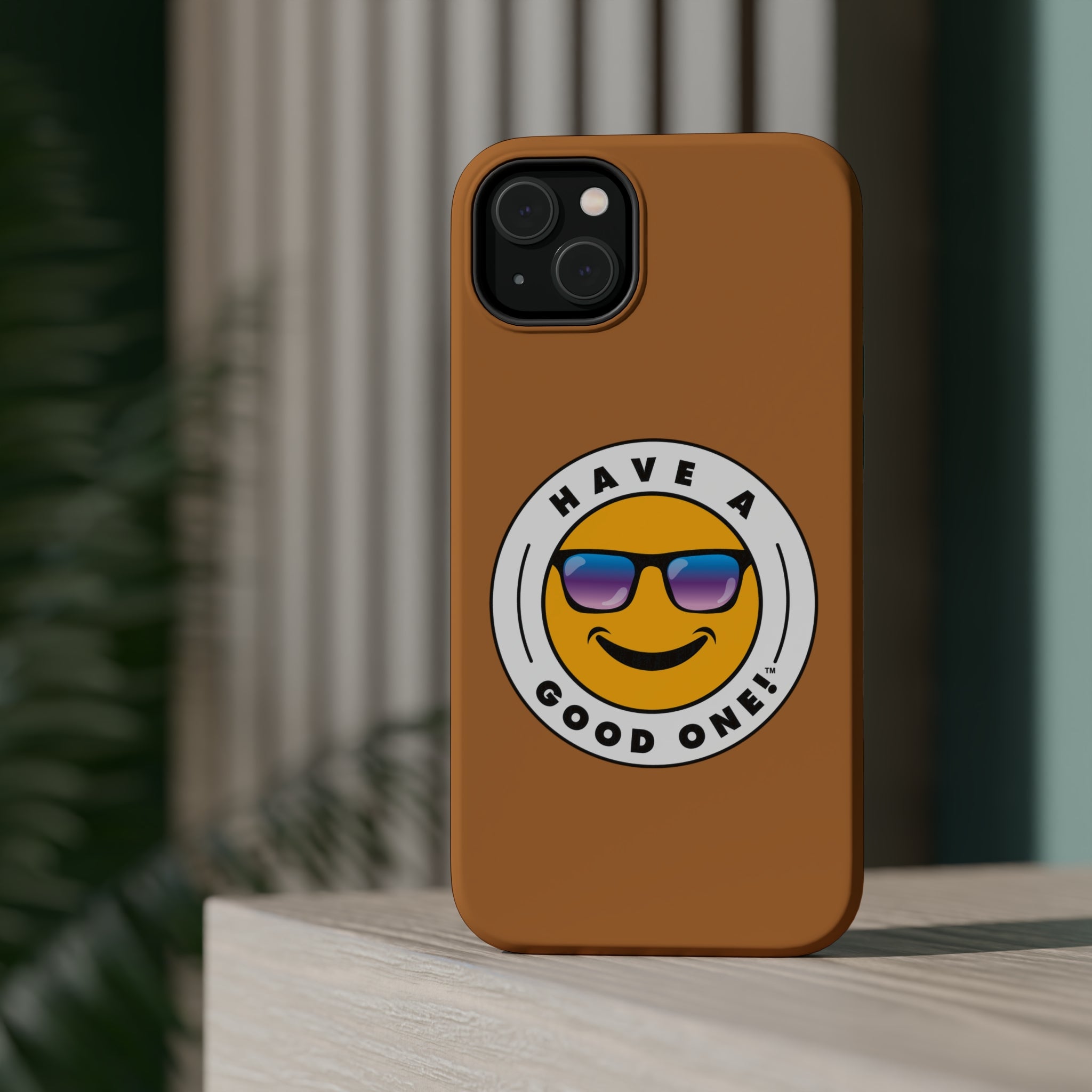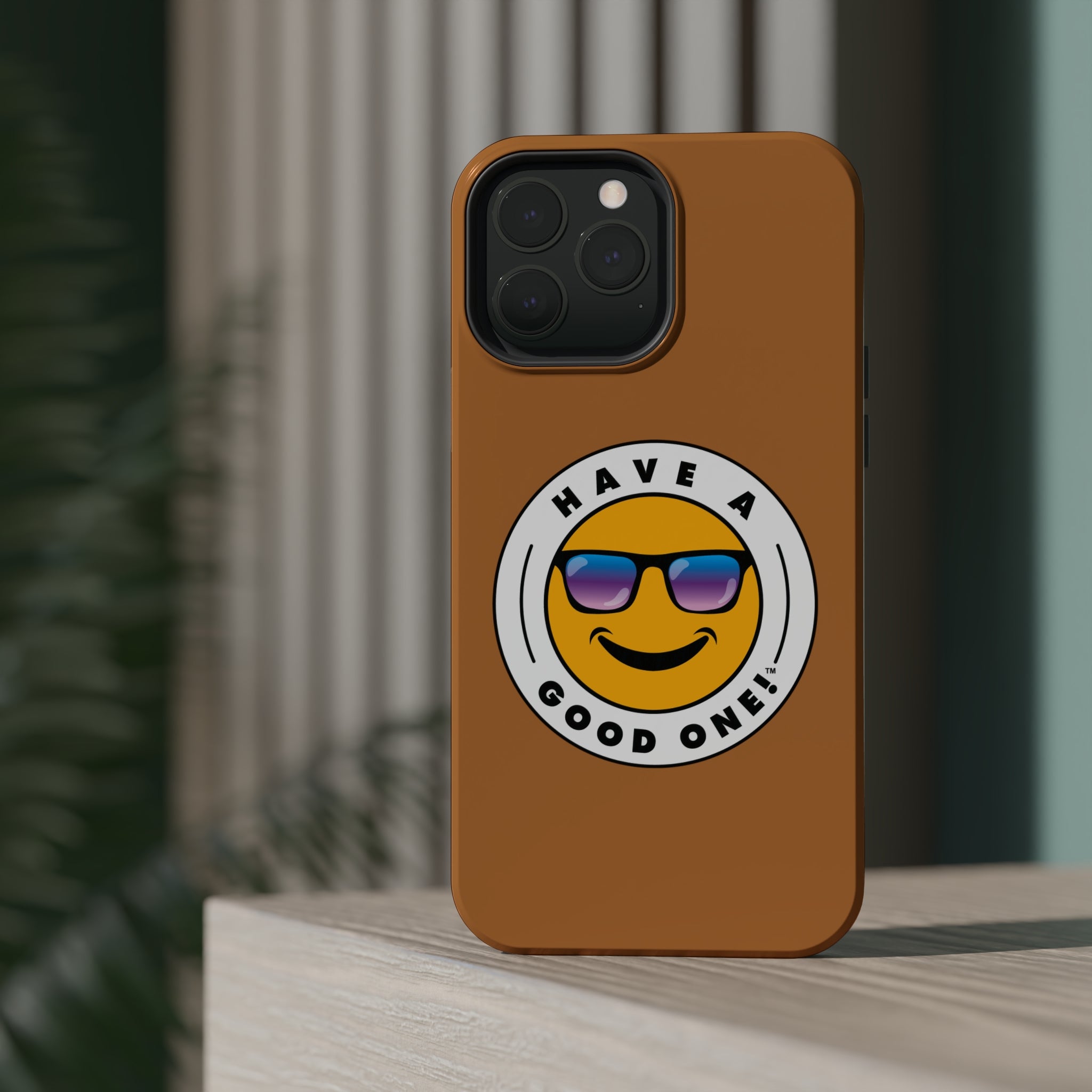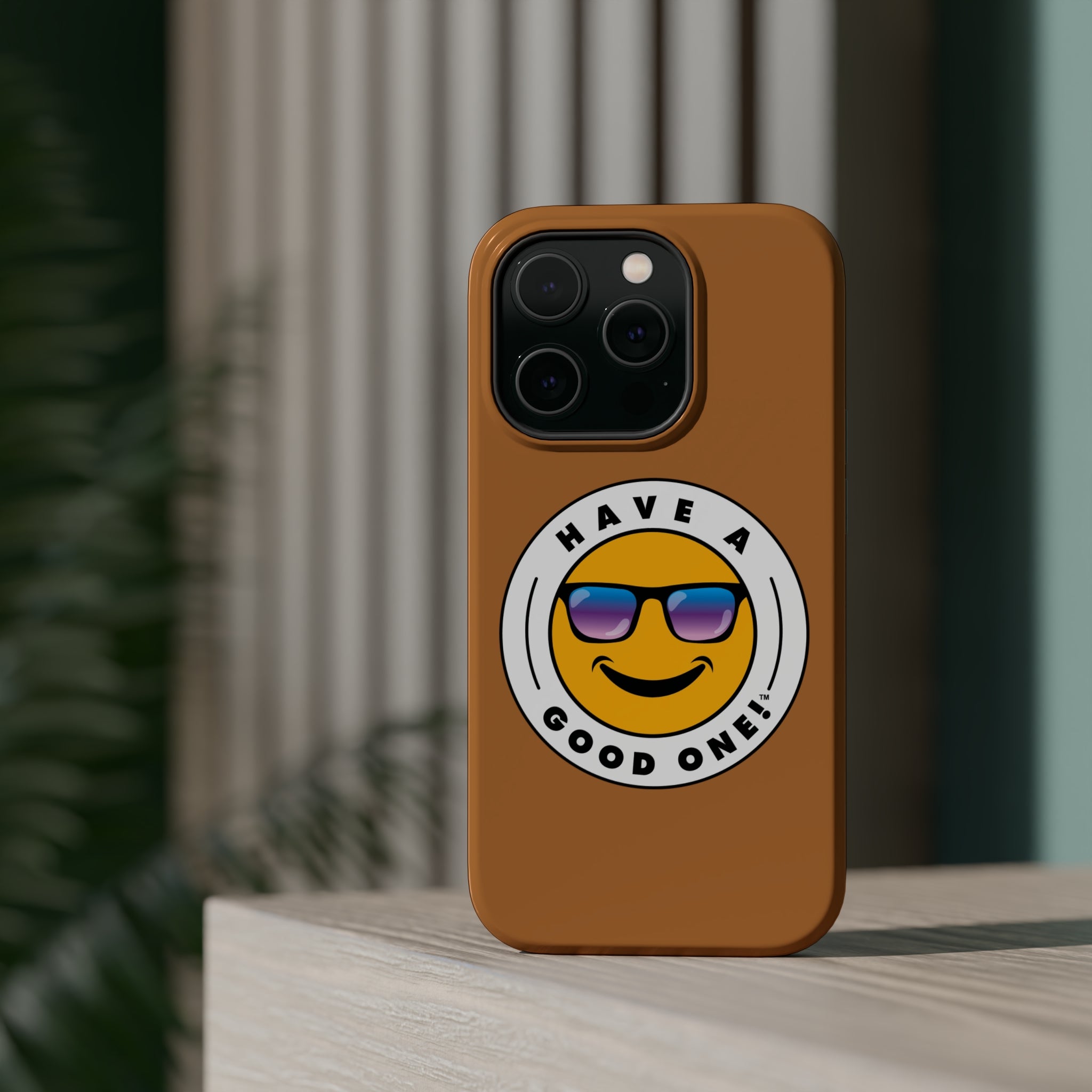 Have fun on the run with our Have A Good One phone cases! Wherever you go this phone case is sure to brighten your day and bring a smile to your face! This is where aesthetics meet function with our MagSafe case. This case delivers impeccable phone protection thanks to its durable, flexible, impact-resistant nature. It has an outer polycarbonate shell and inner black lining to protect against scratches and minor bumps. Each case comes with an embedded magnet to enhance compatibility with Apple MagSafe accessories. The case is available in glossy or matte finish so you can select which one you prefer. We have all of the popular sizes so you are sure to find the best fit for your phone. Lots of vibrant and fun colors to choose from which will surely make you feel the Have A Good One vibe every time you use it!