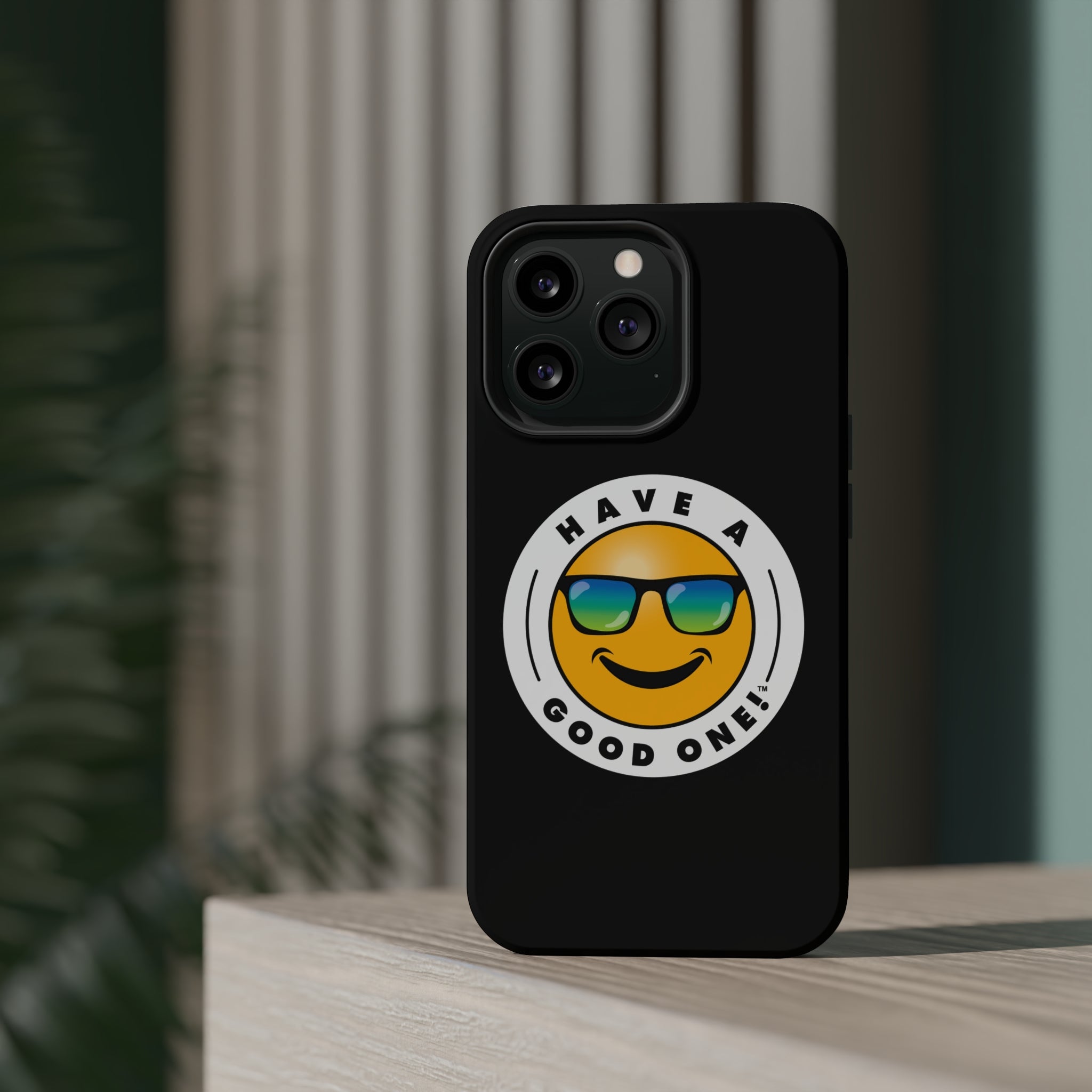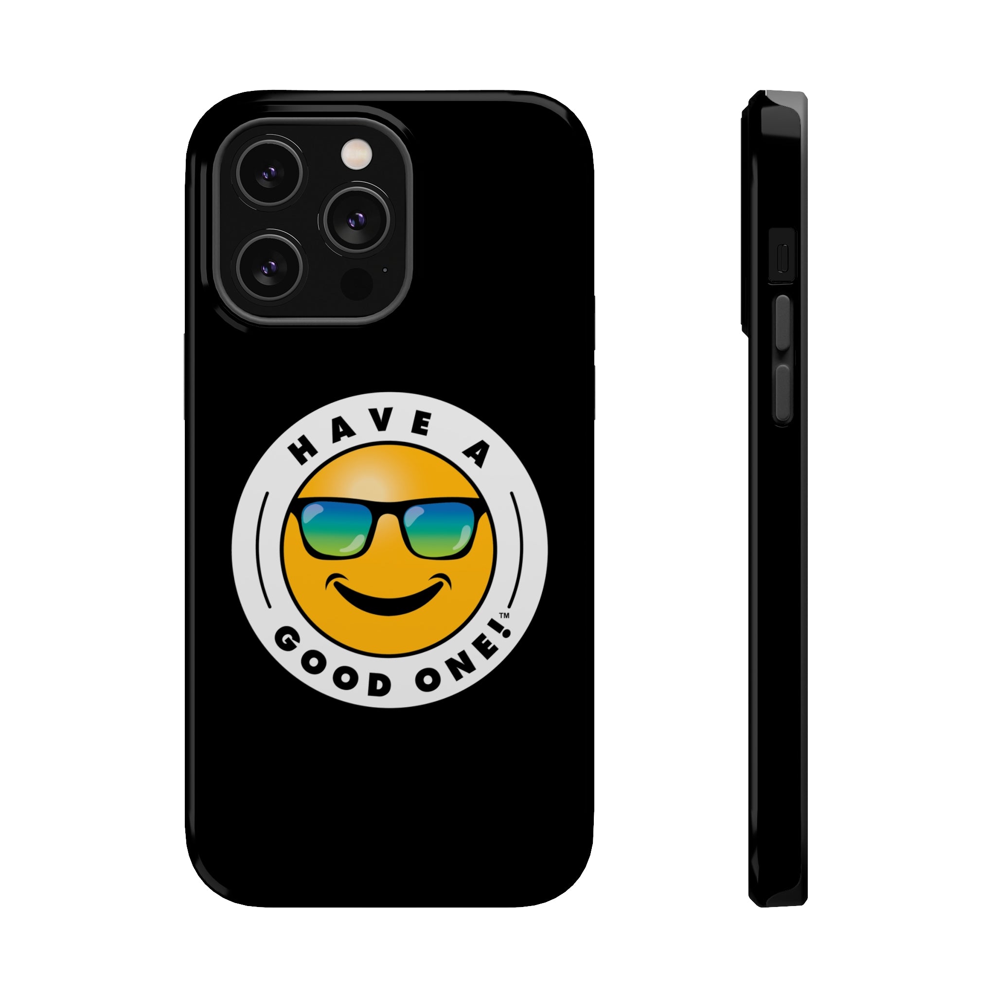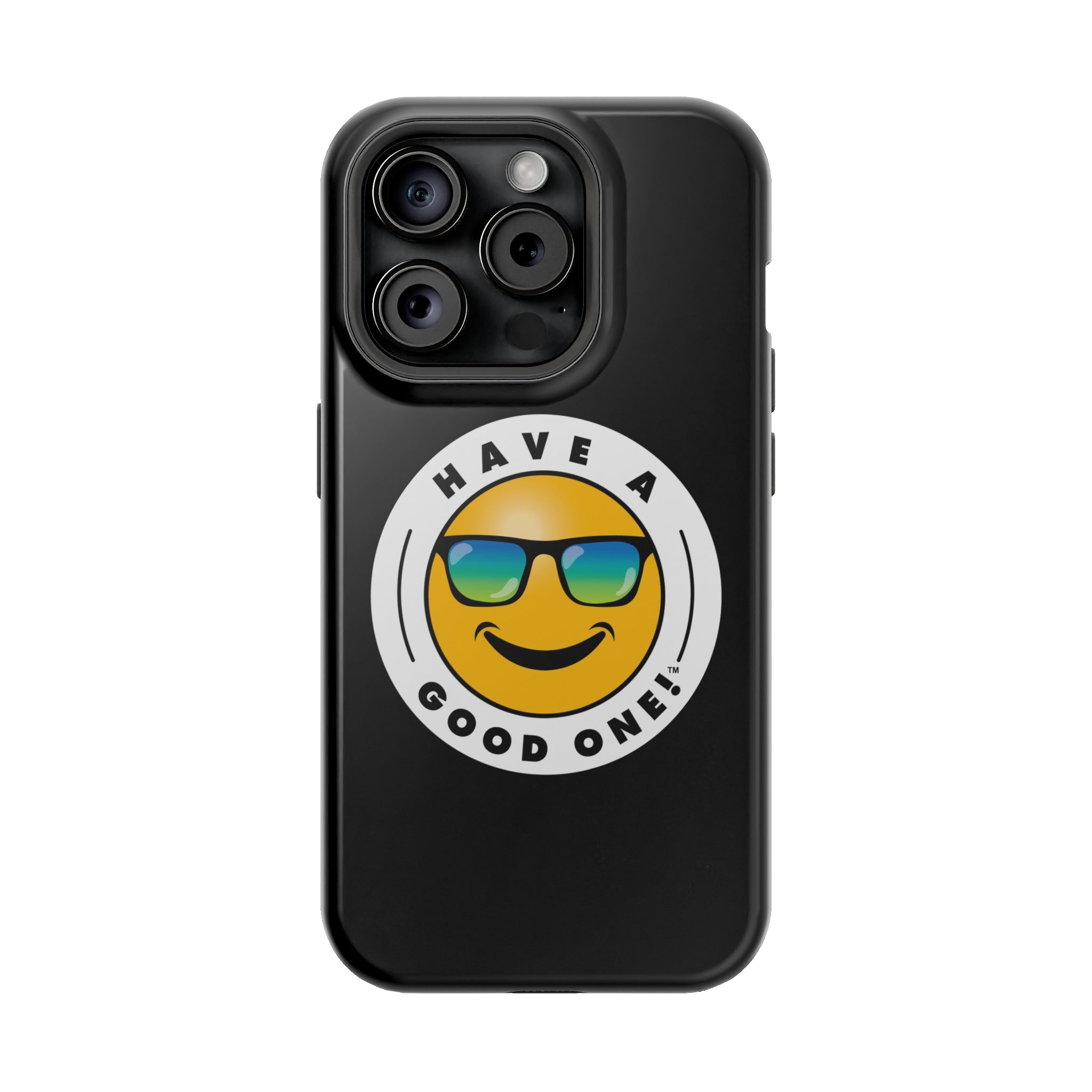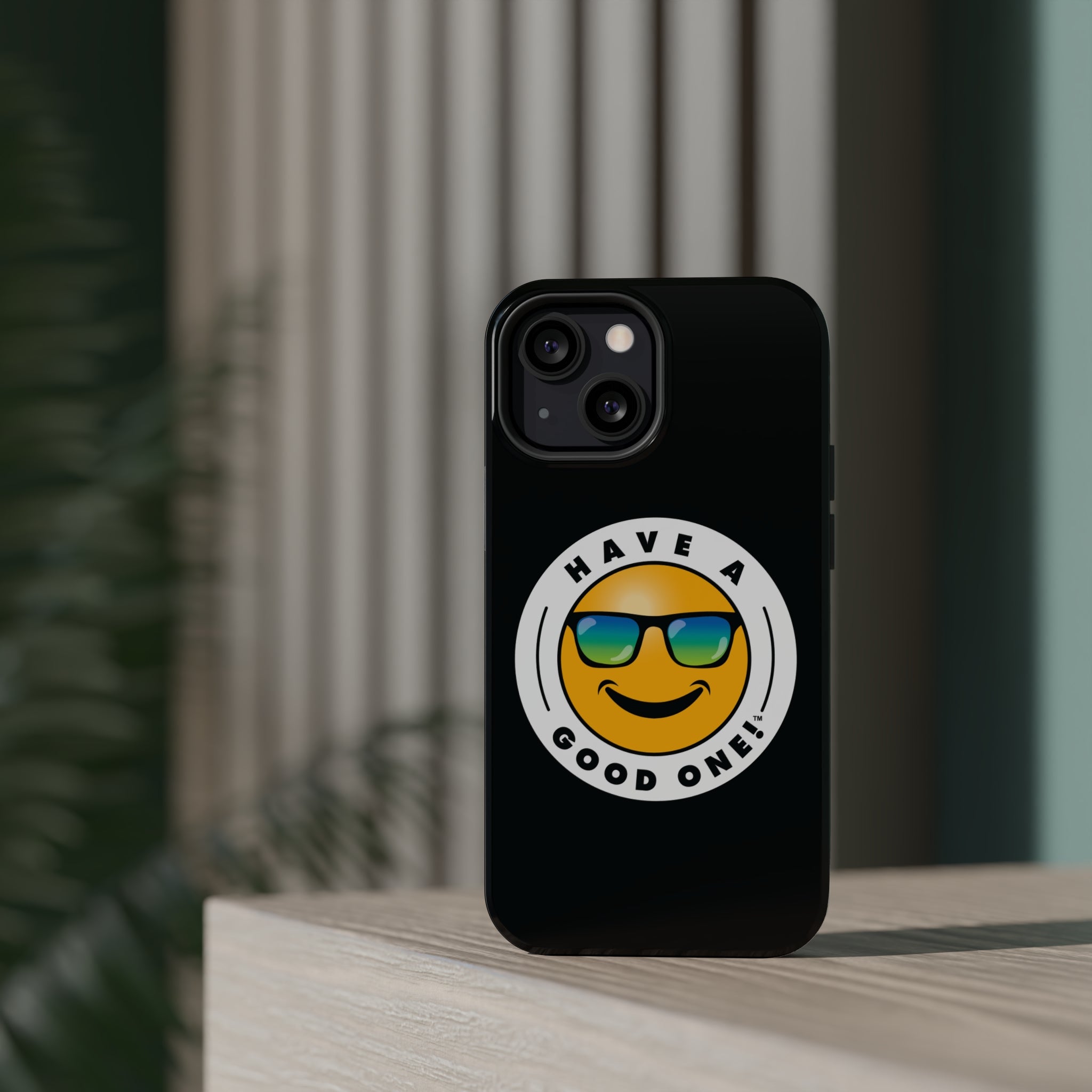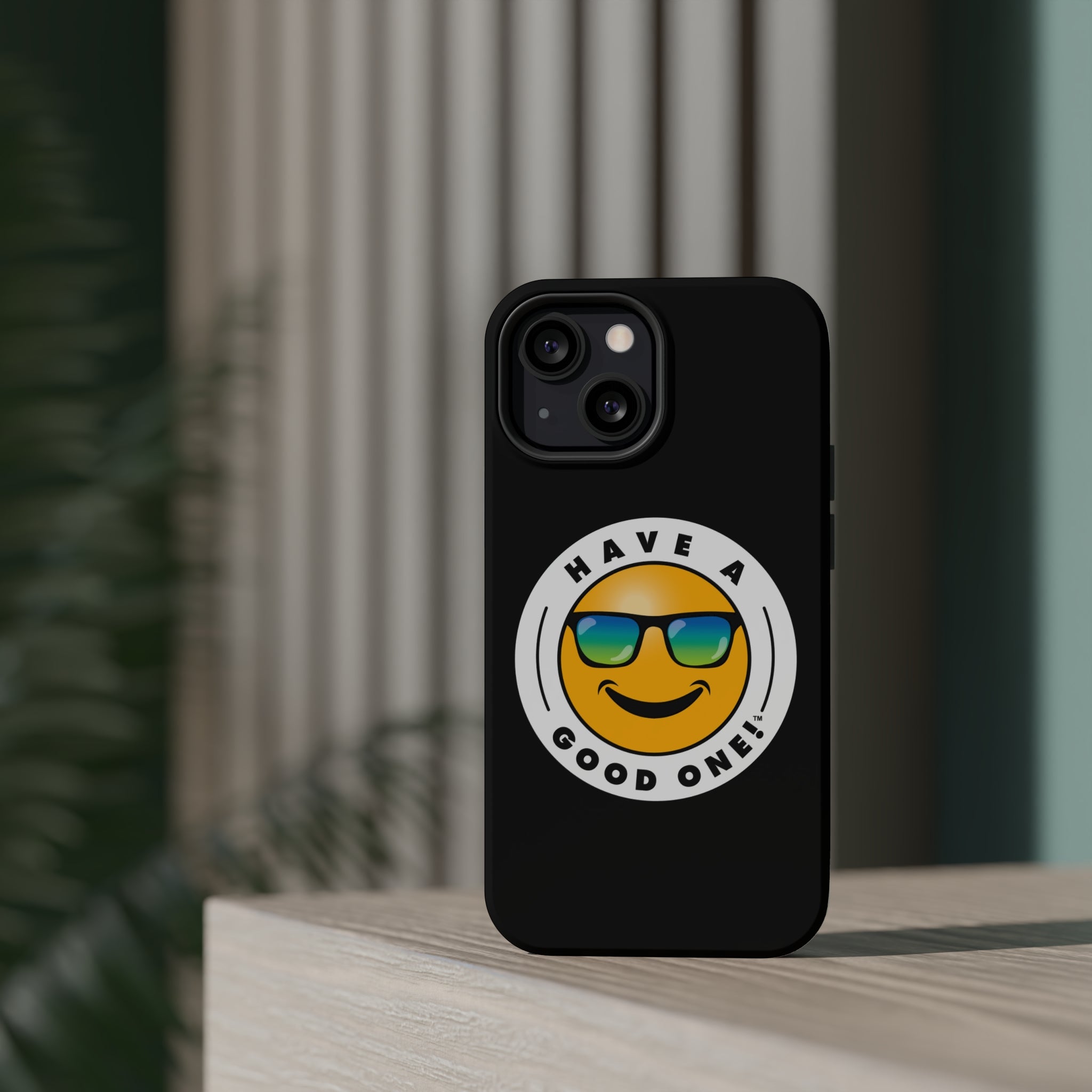 Fun On The Run MagSafe Tough Phone Case - Black Color With Blue Green Have a Good One! Logo
