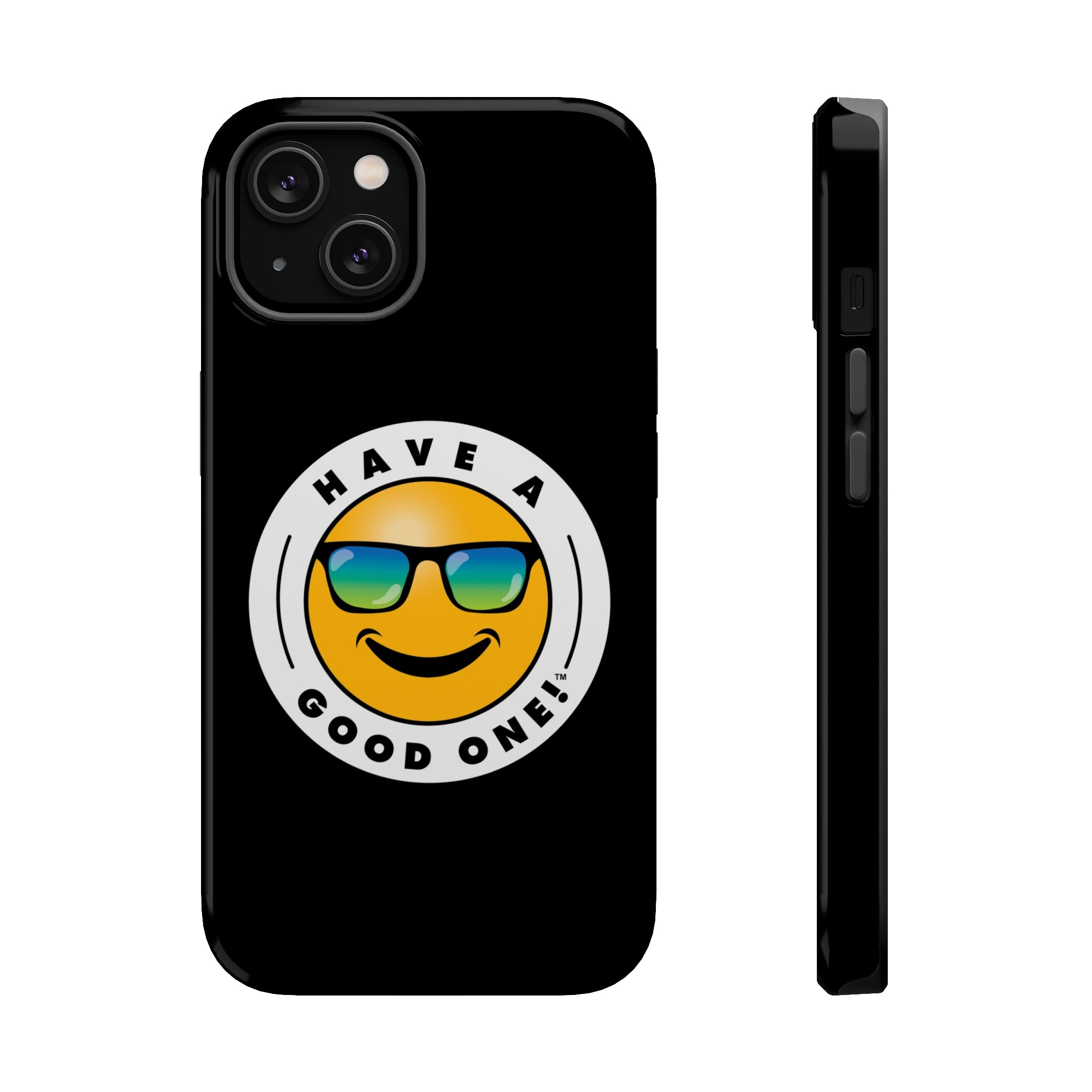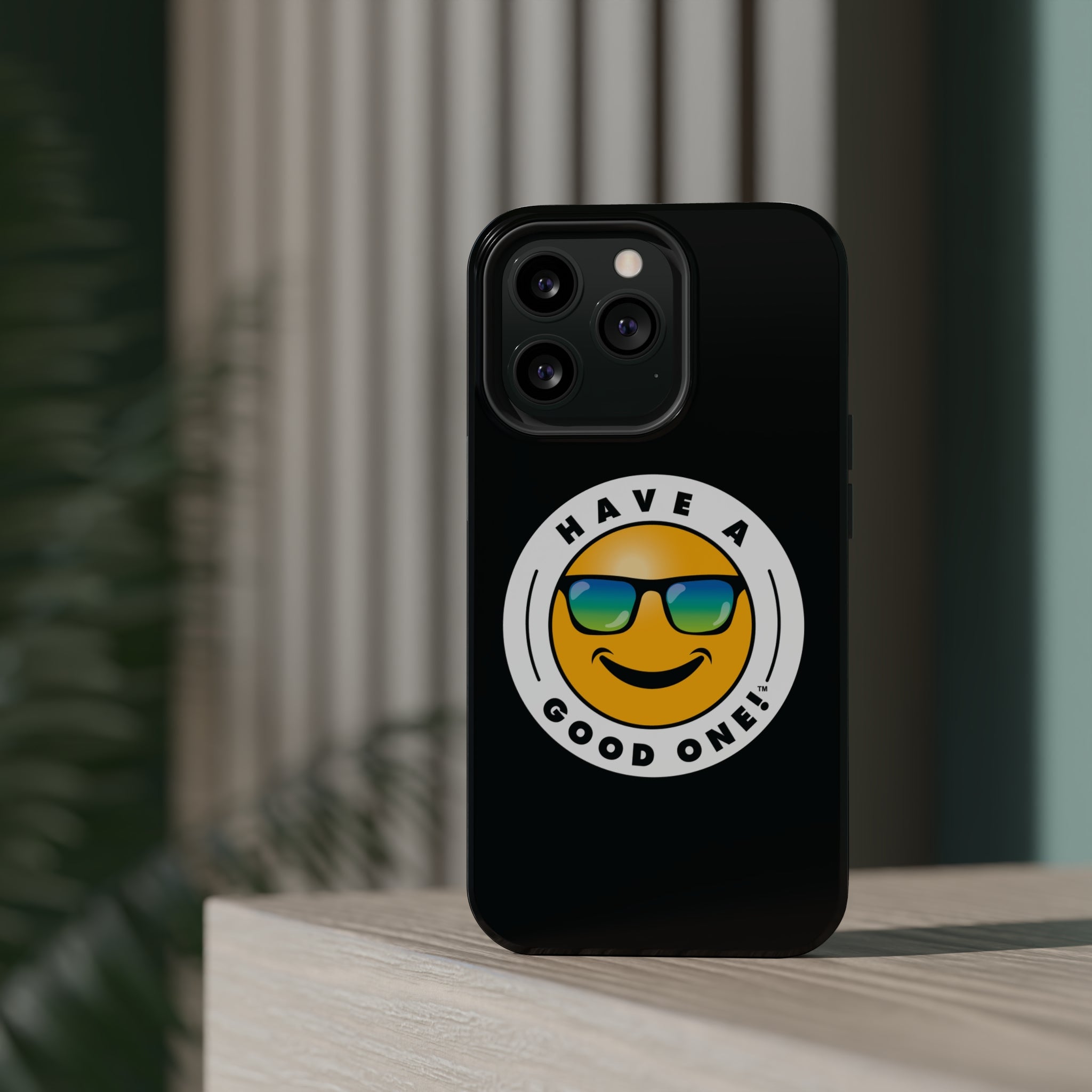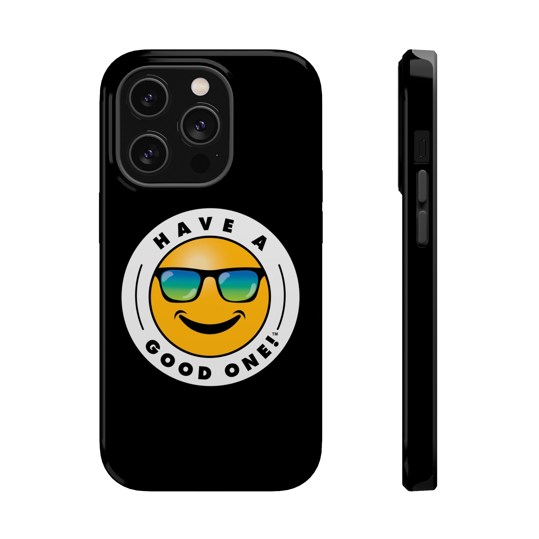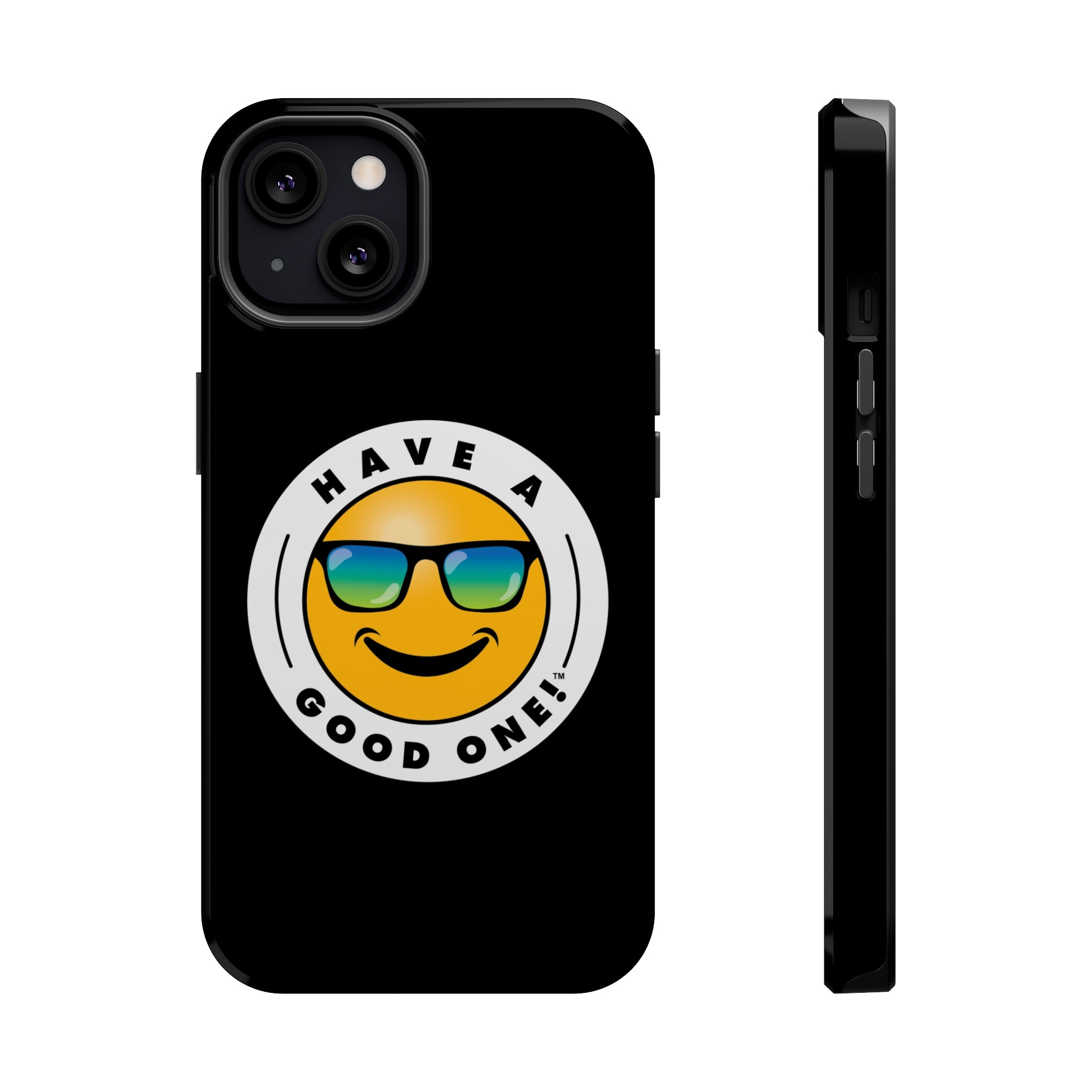 Fun On The Run MagSafe Tough Phone Case - Black Color With Blue Green Have a Good One! Logo