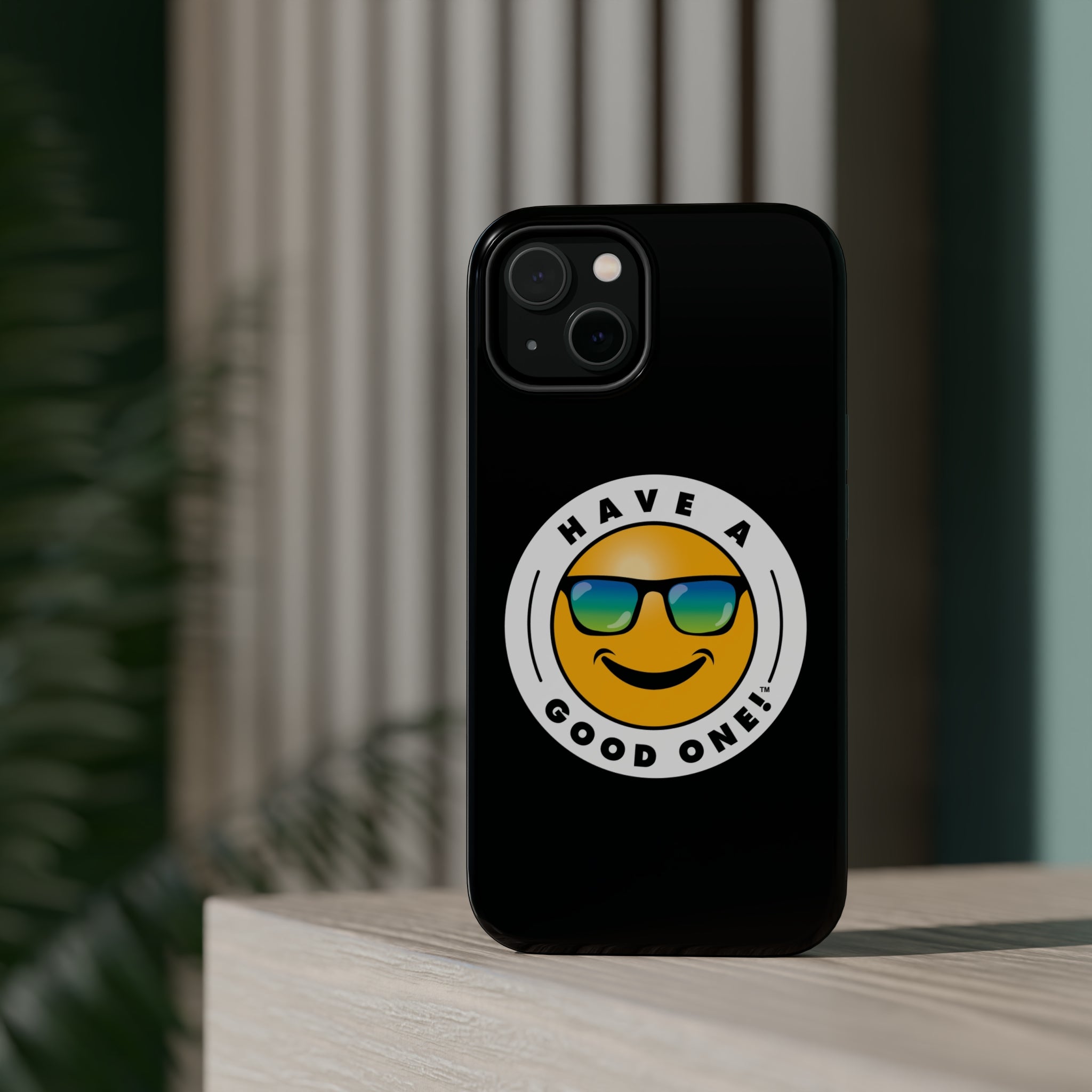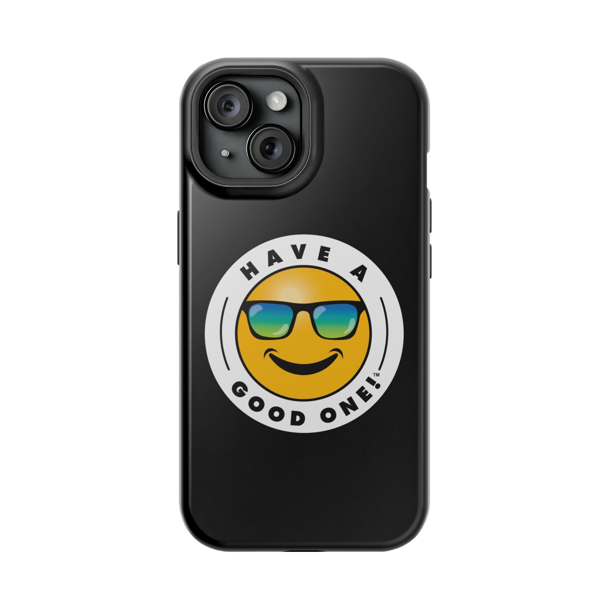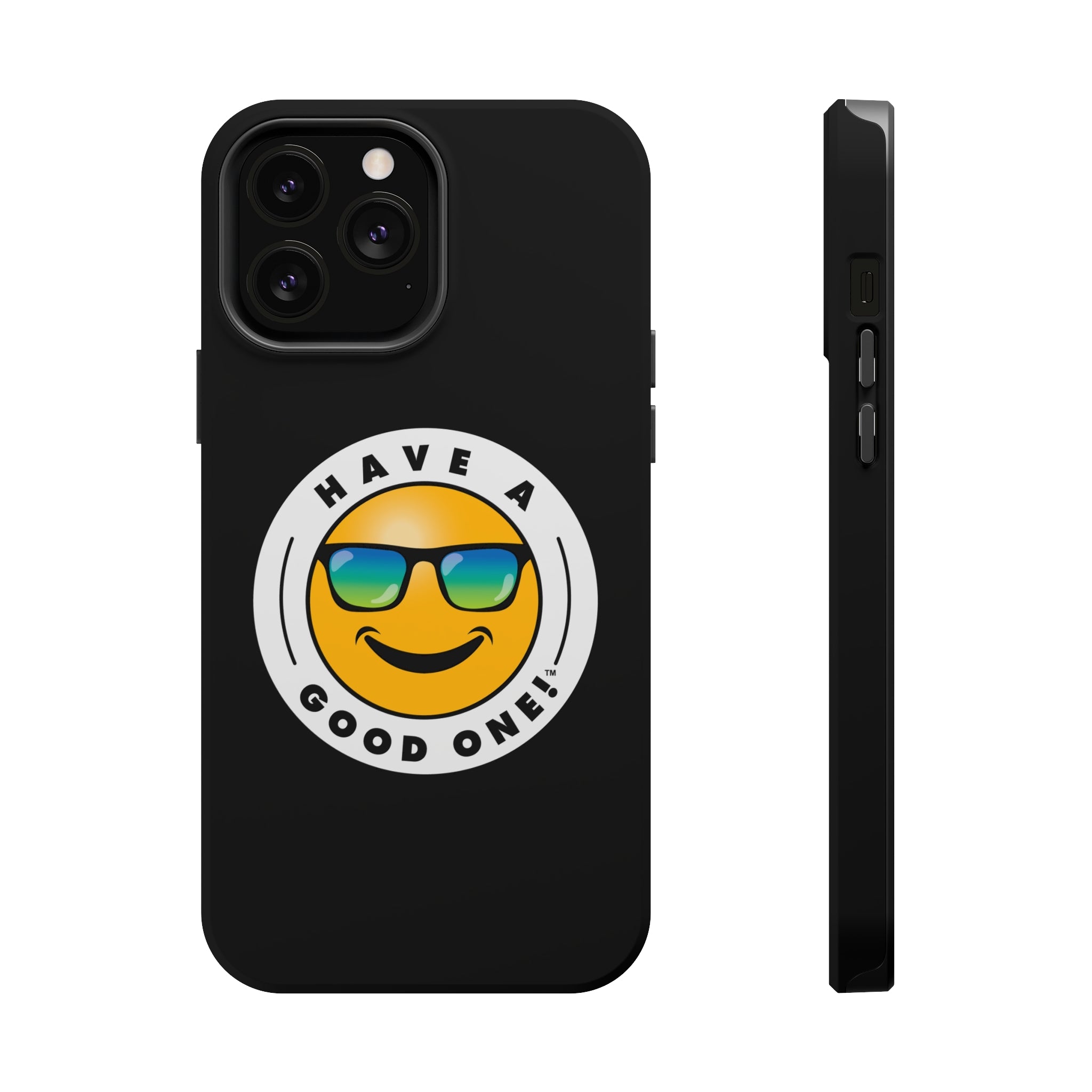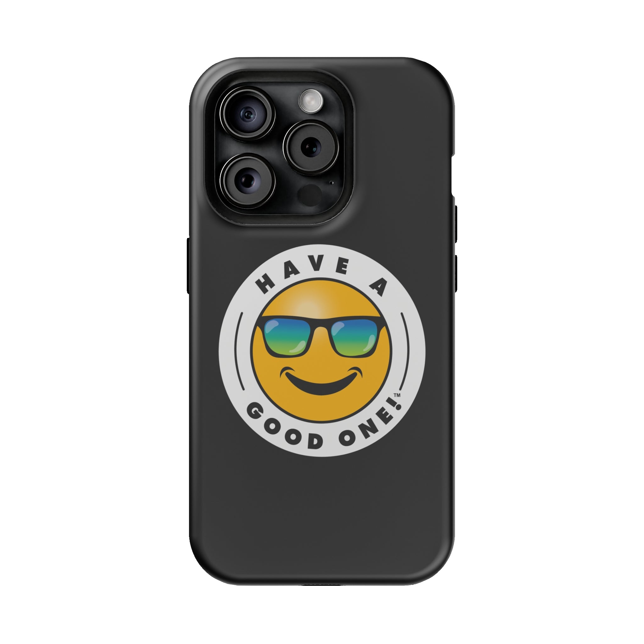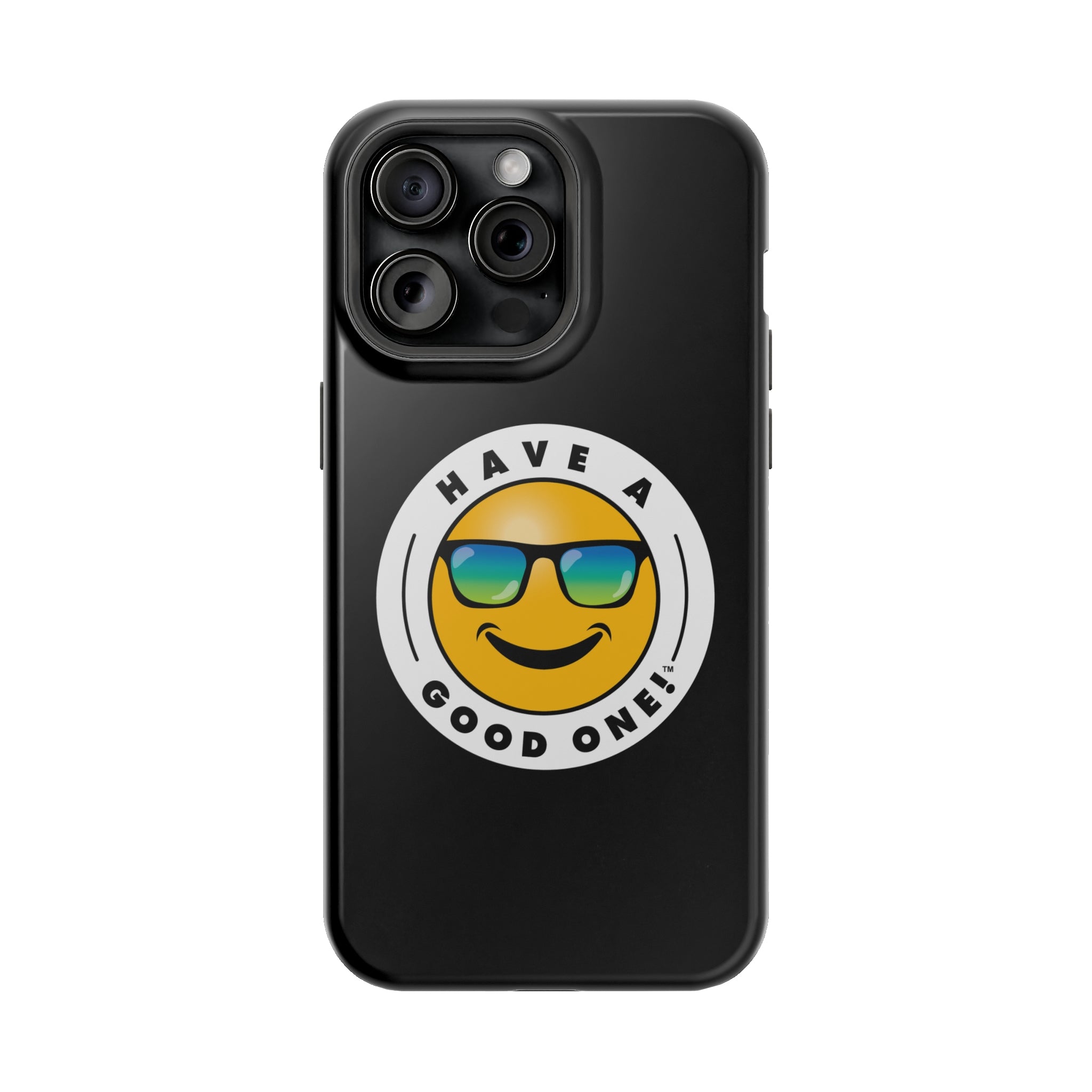 Fun On The Run MagSafe Tough Phone Case - Black Color With Blue Green Have a Good One! Logo