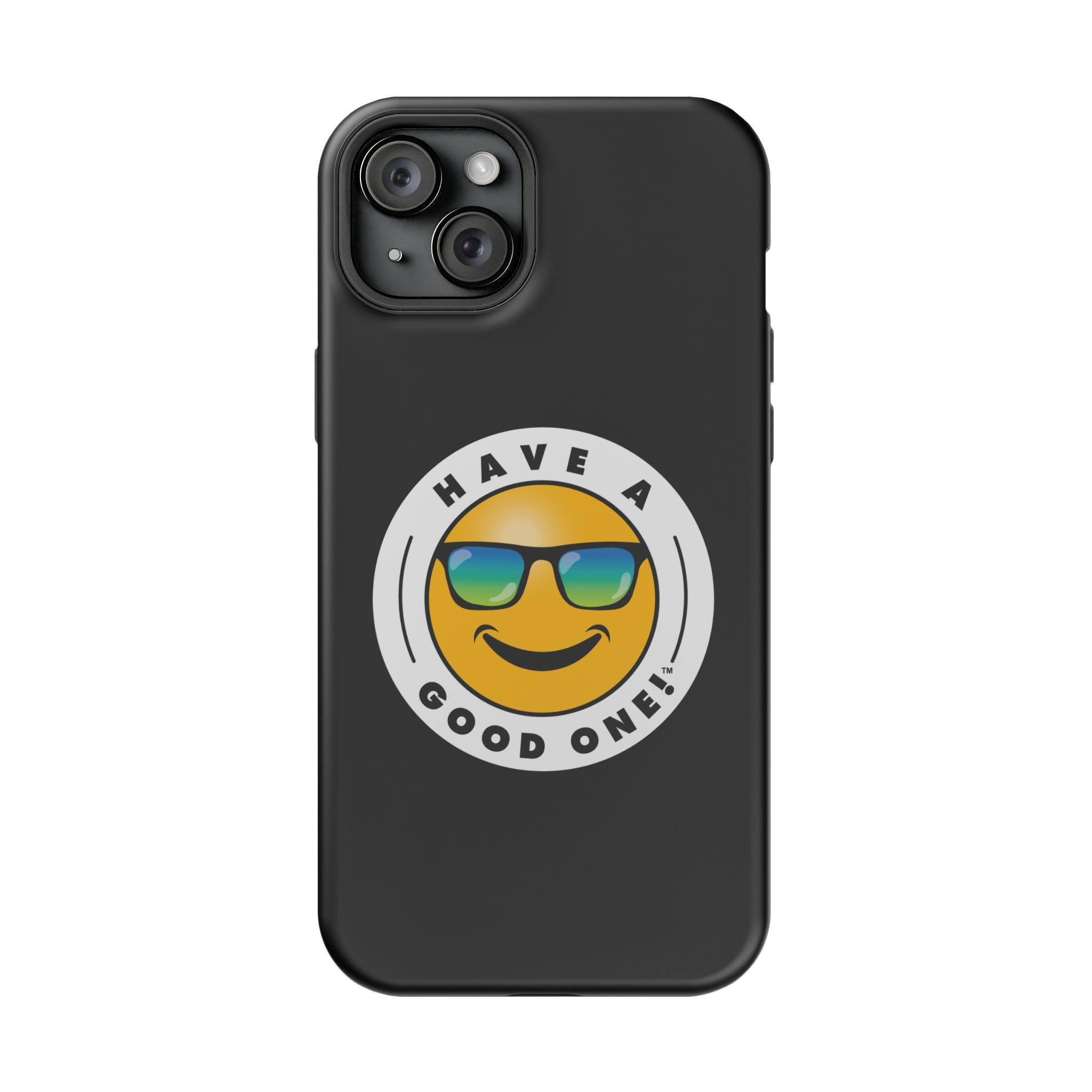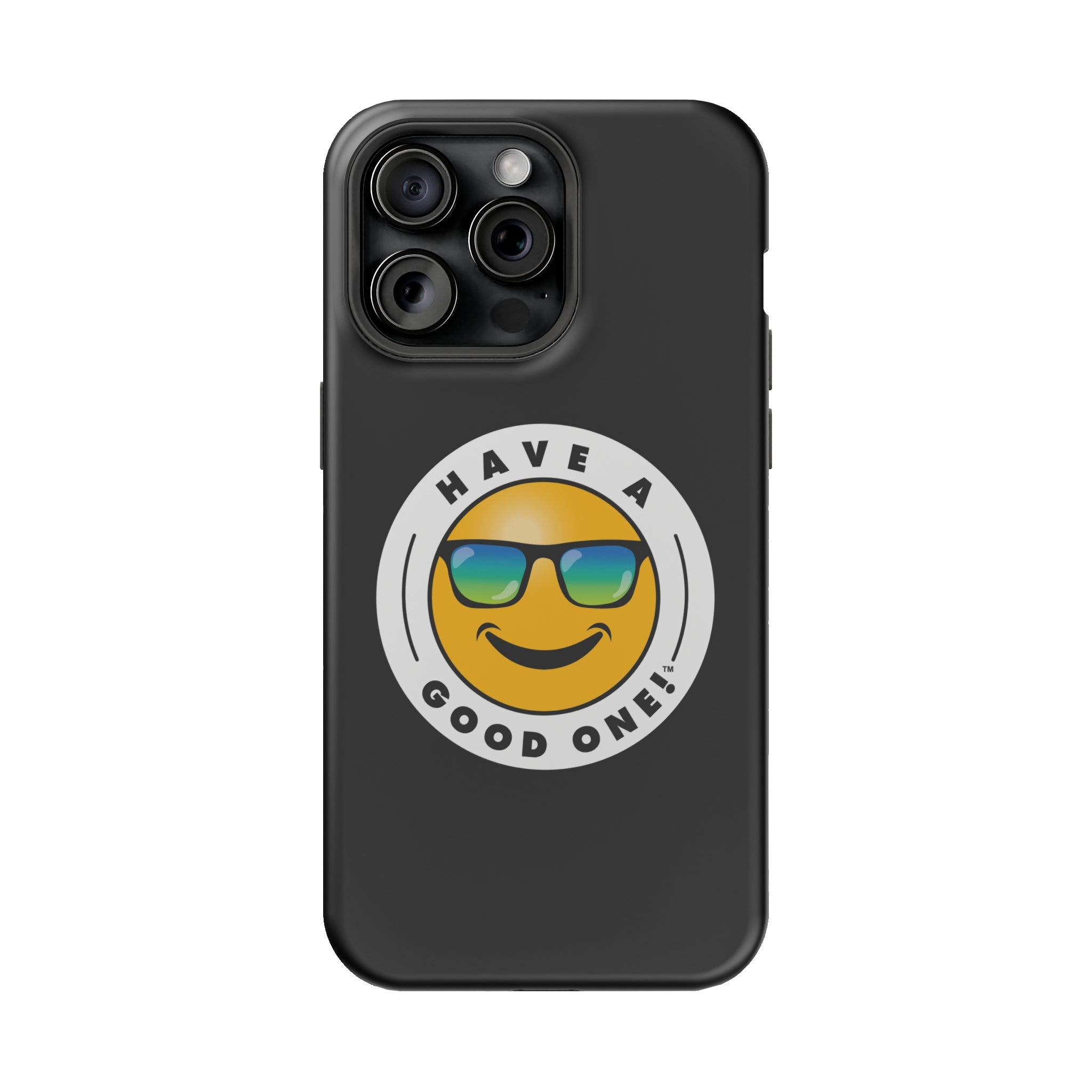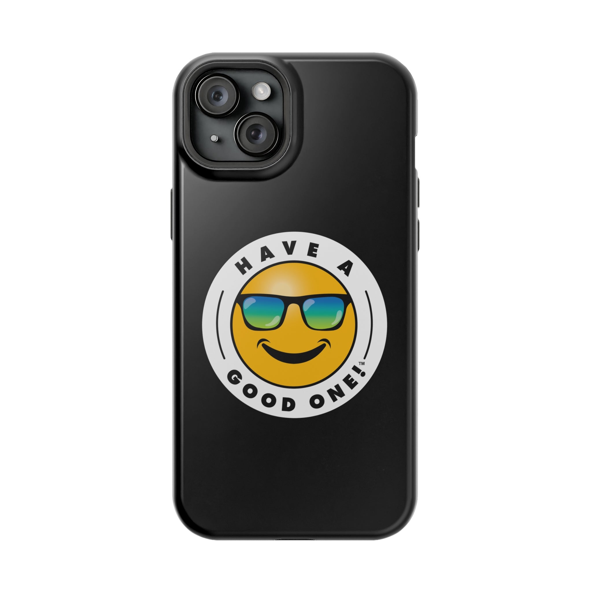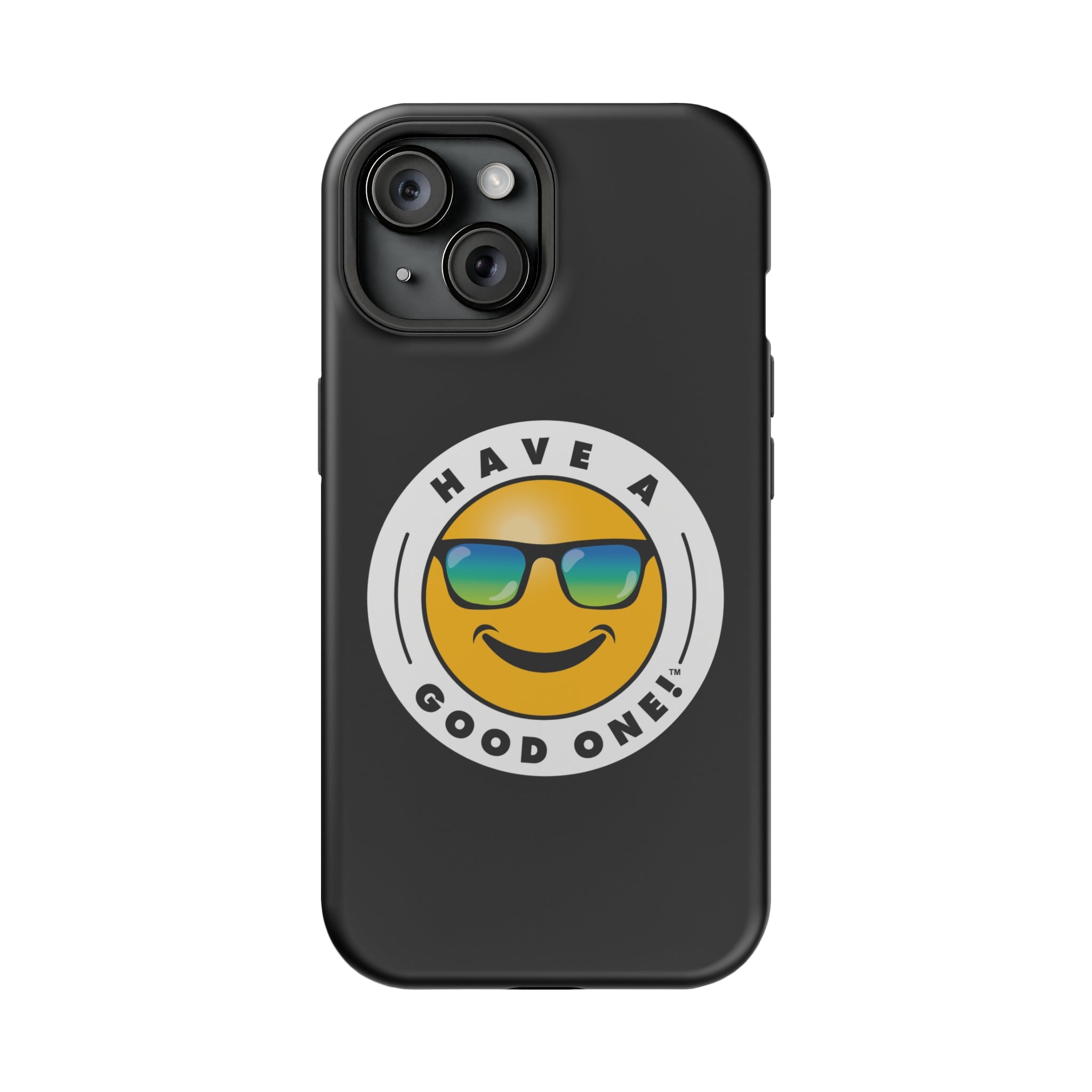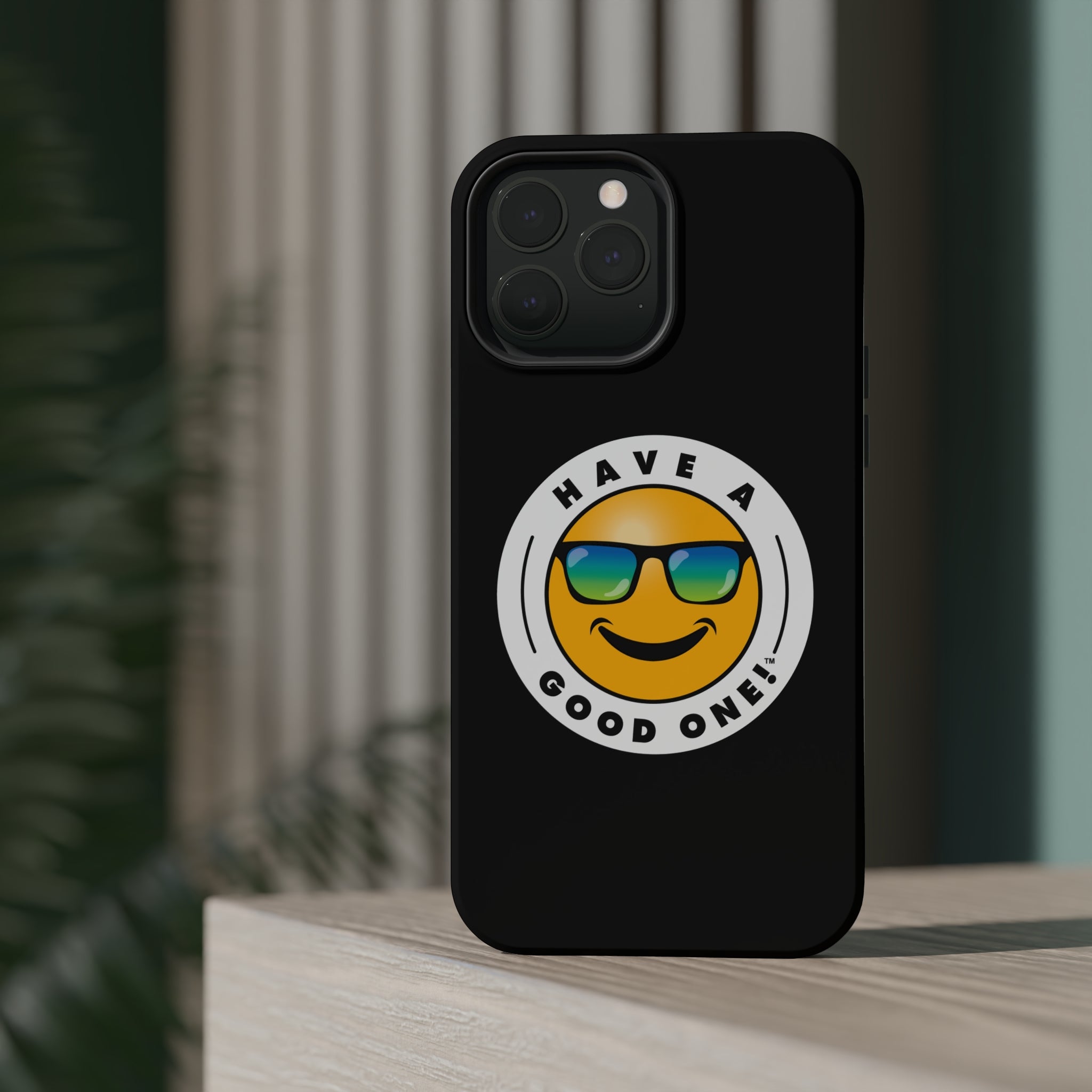 Fun On The Run MagSafe Tough Phone Case - Black Color With Blue Green Have a Good One! Logo