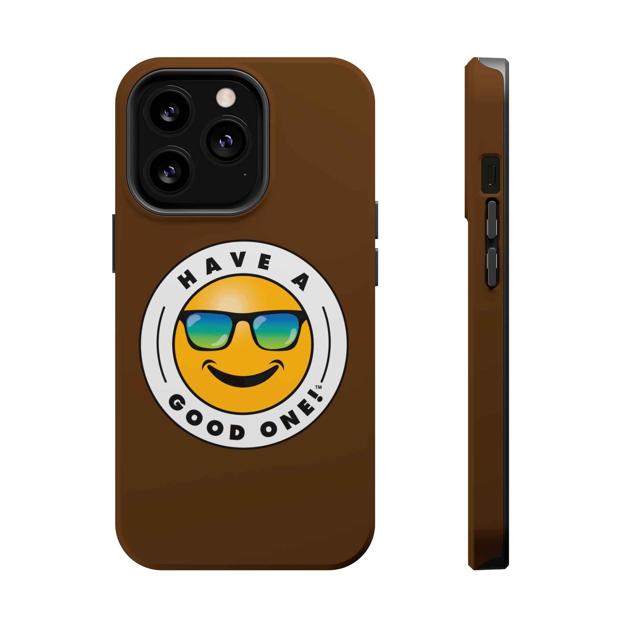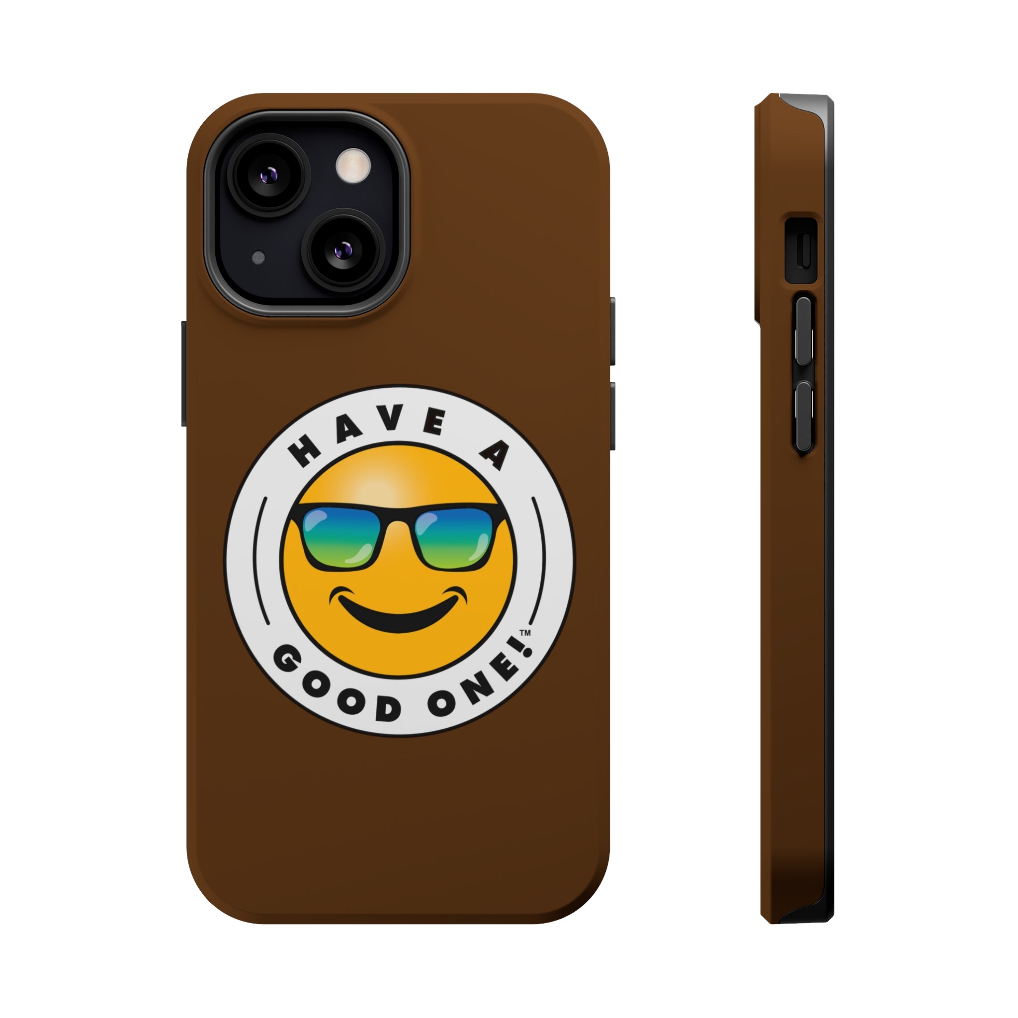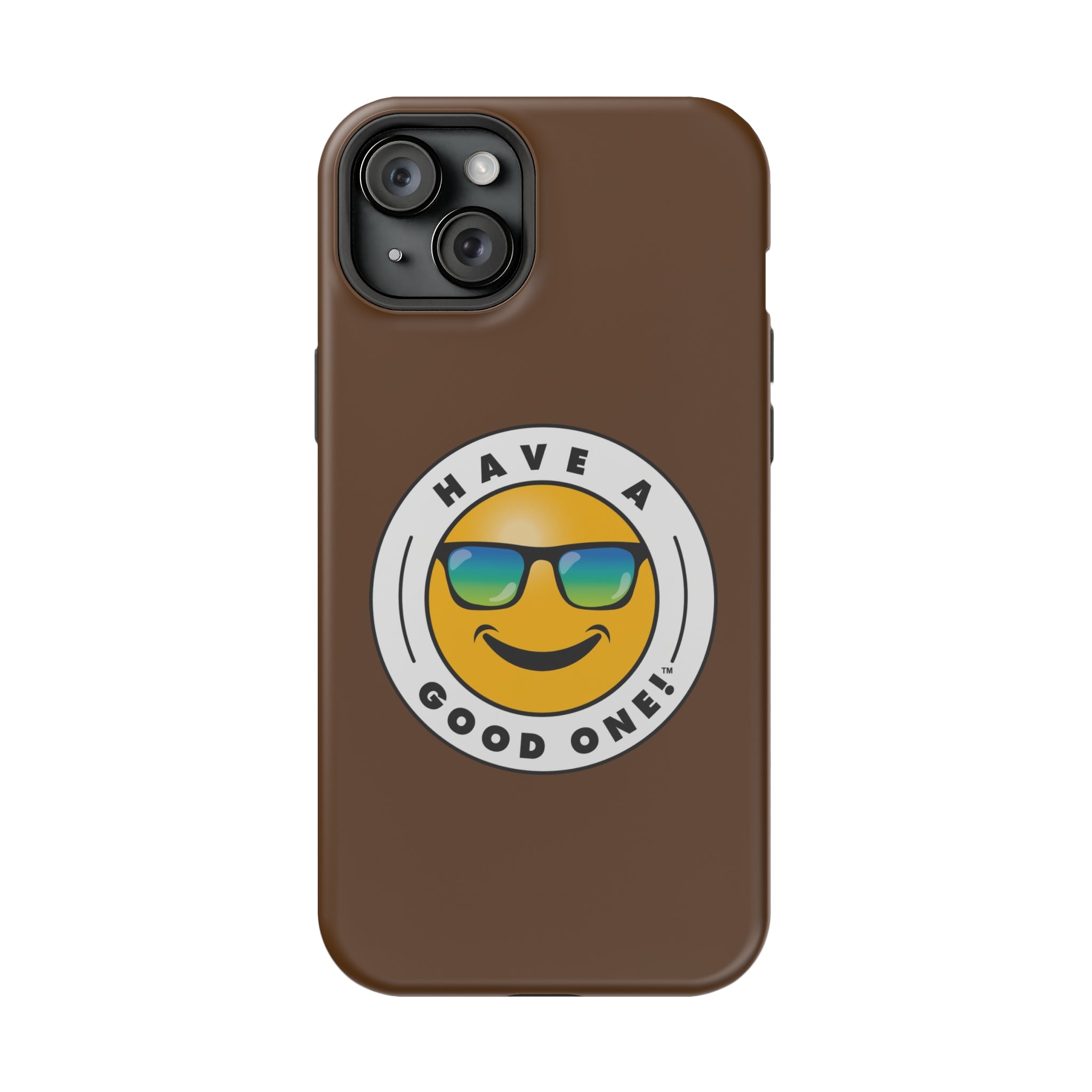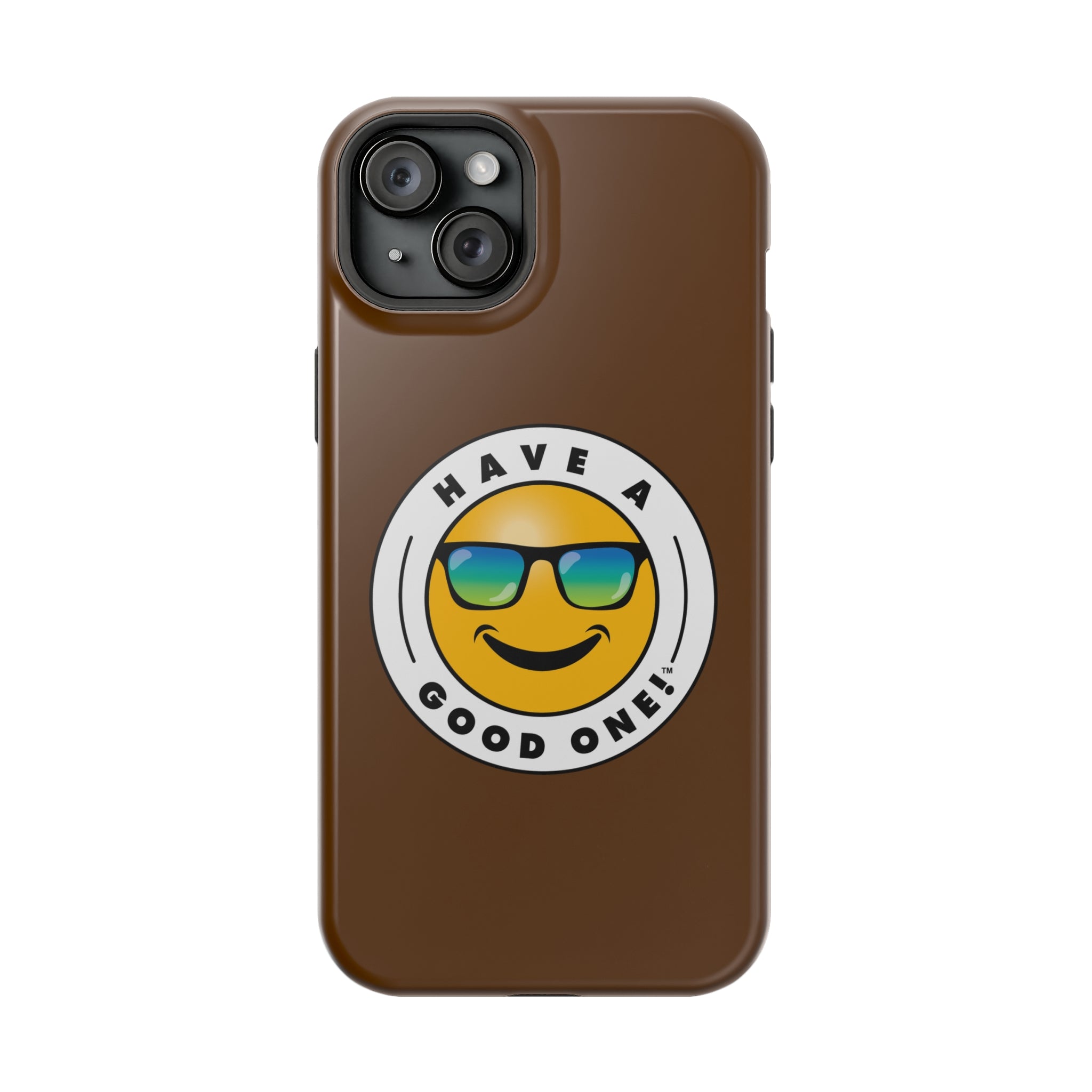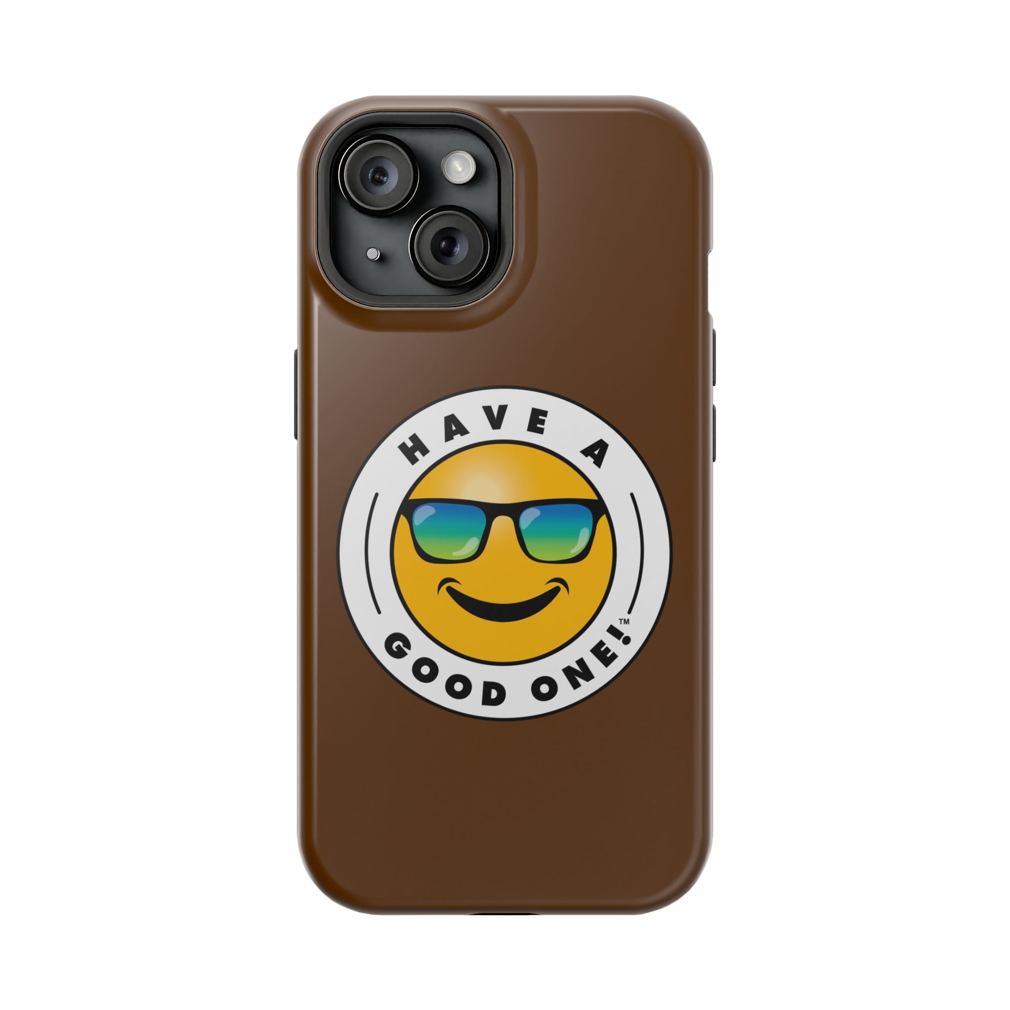 Fun On The Run MagSafe Tough Phone Case - Brown Color With Blue Green Have a Good One! Logo