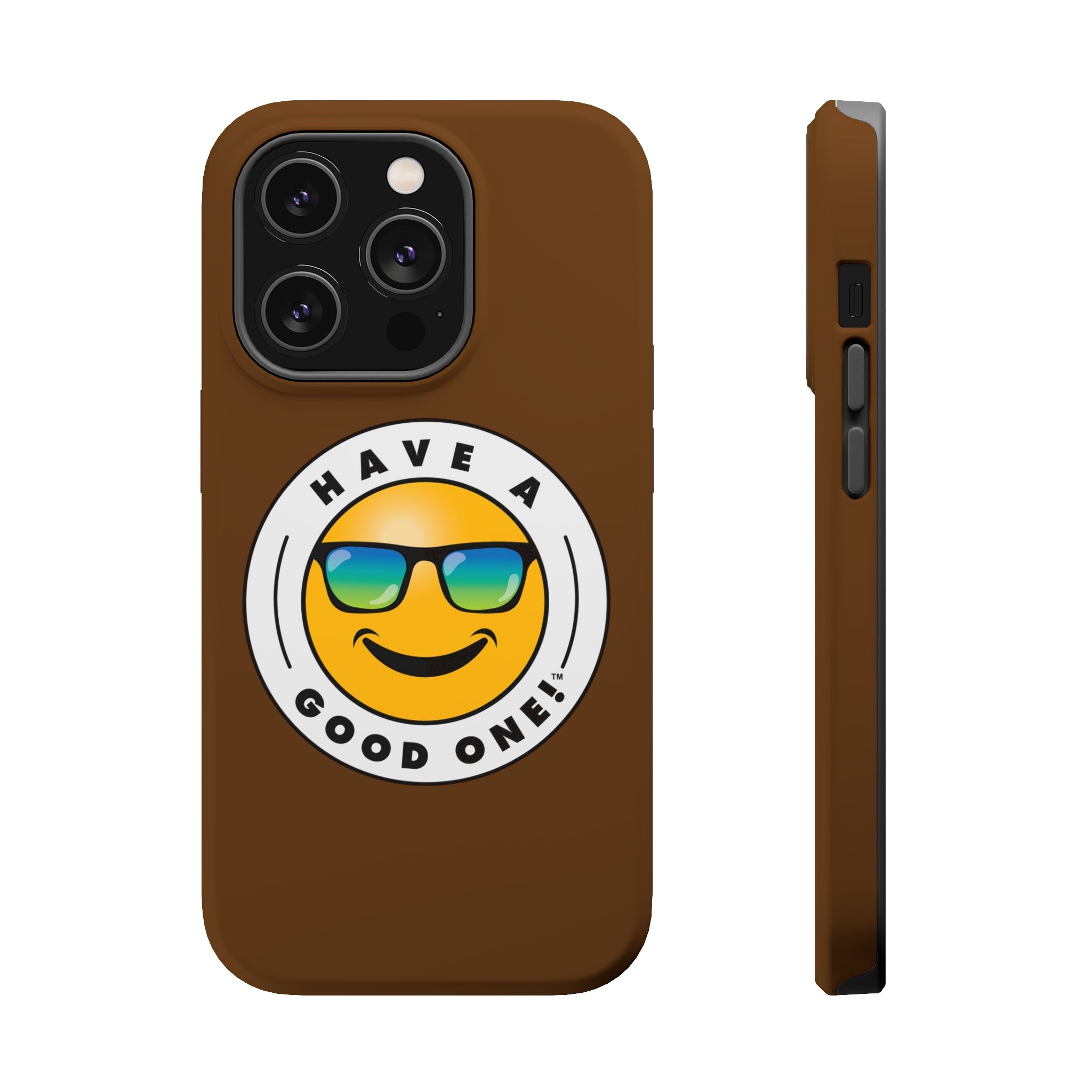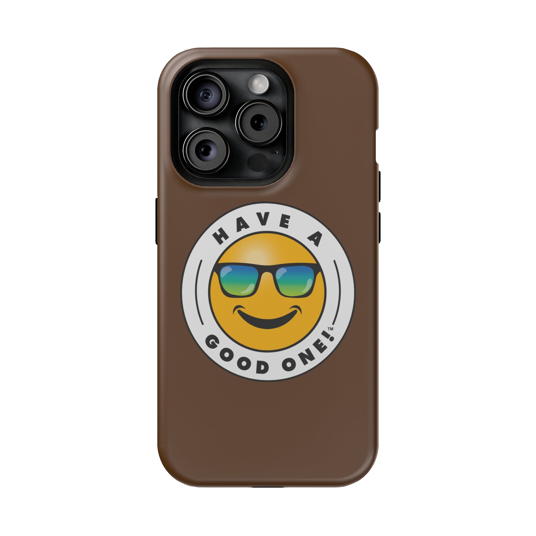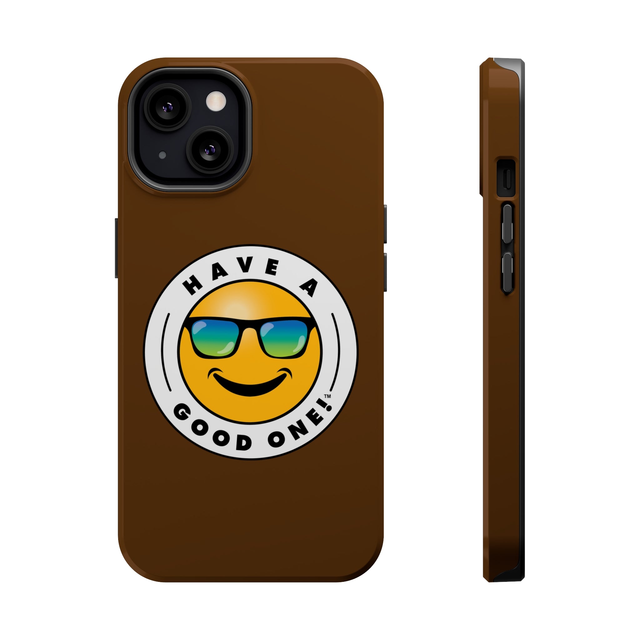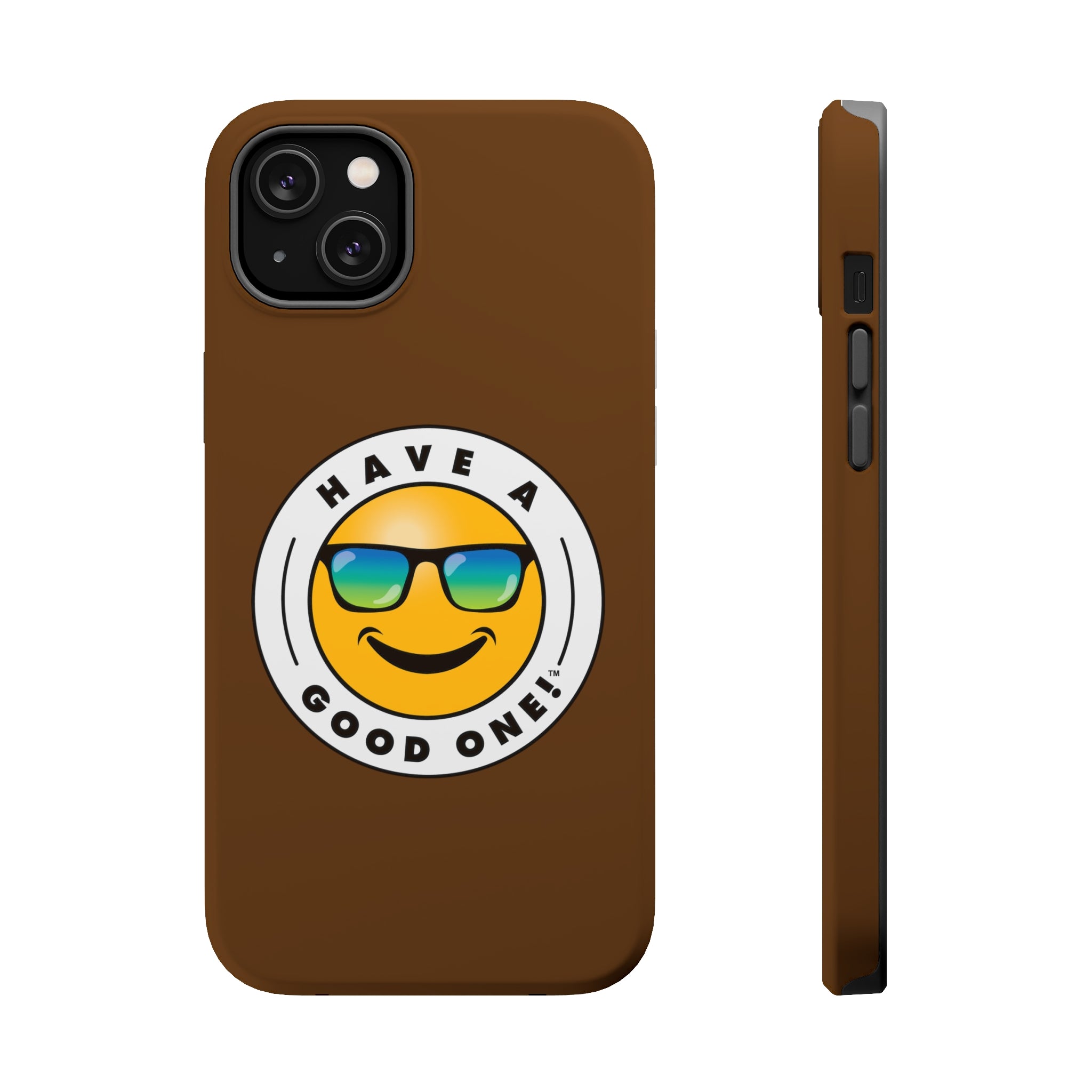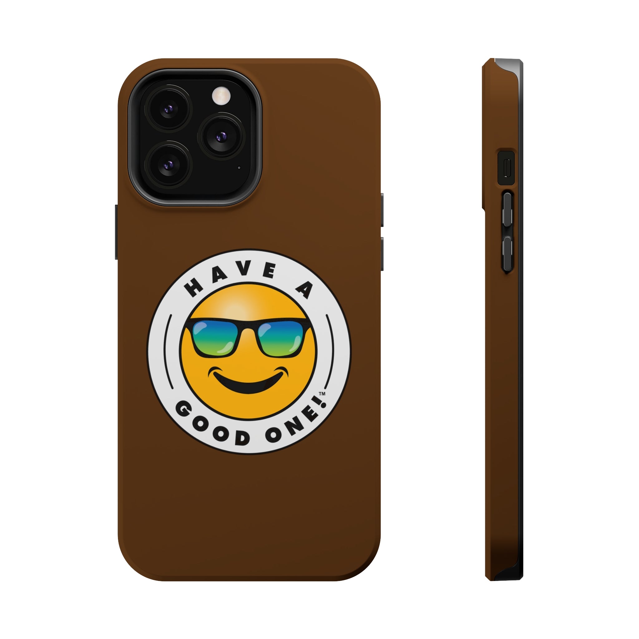 Fun On The Run MagSafe Tough Phone Case - Brown Color With Blue Green Have a Good One! Logo