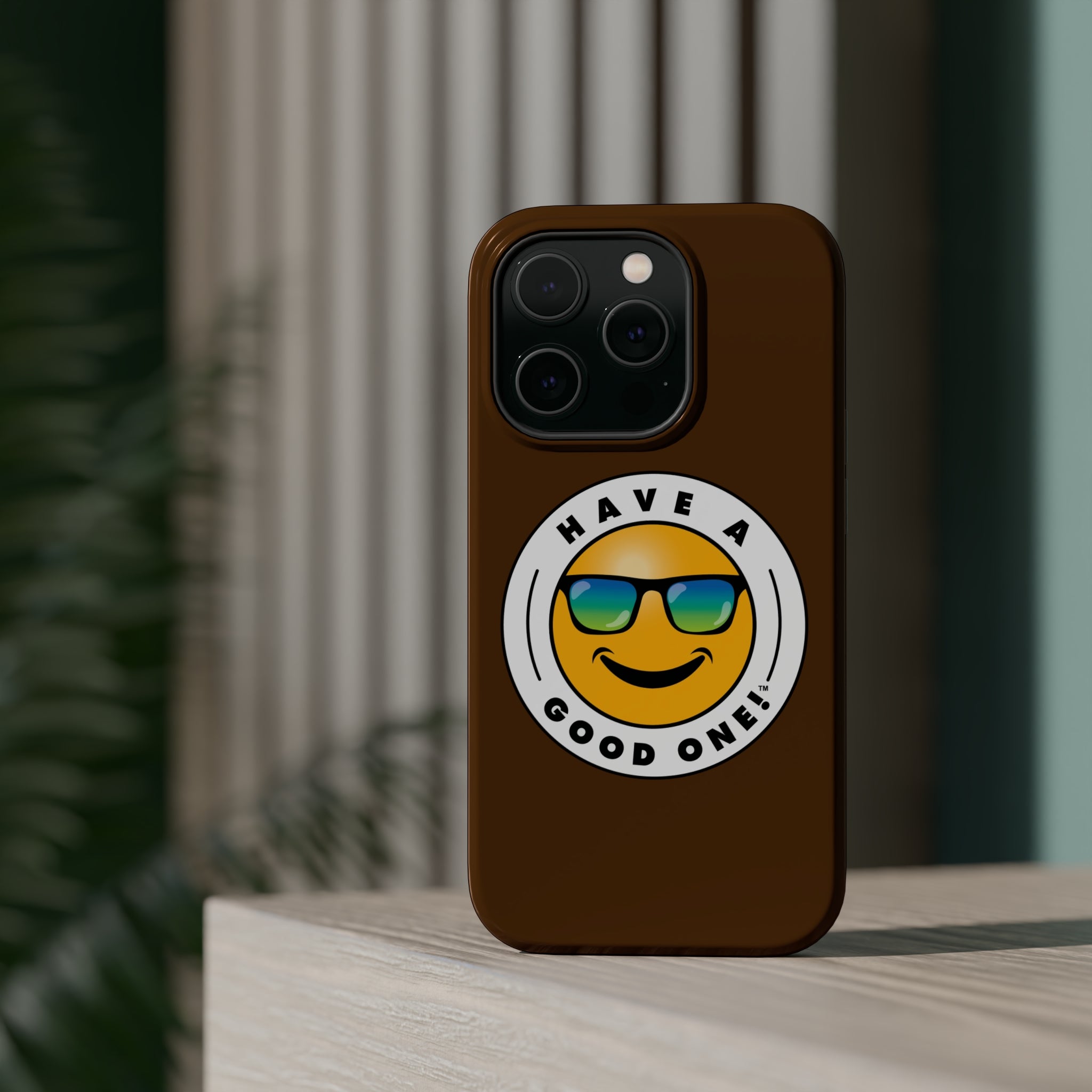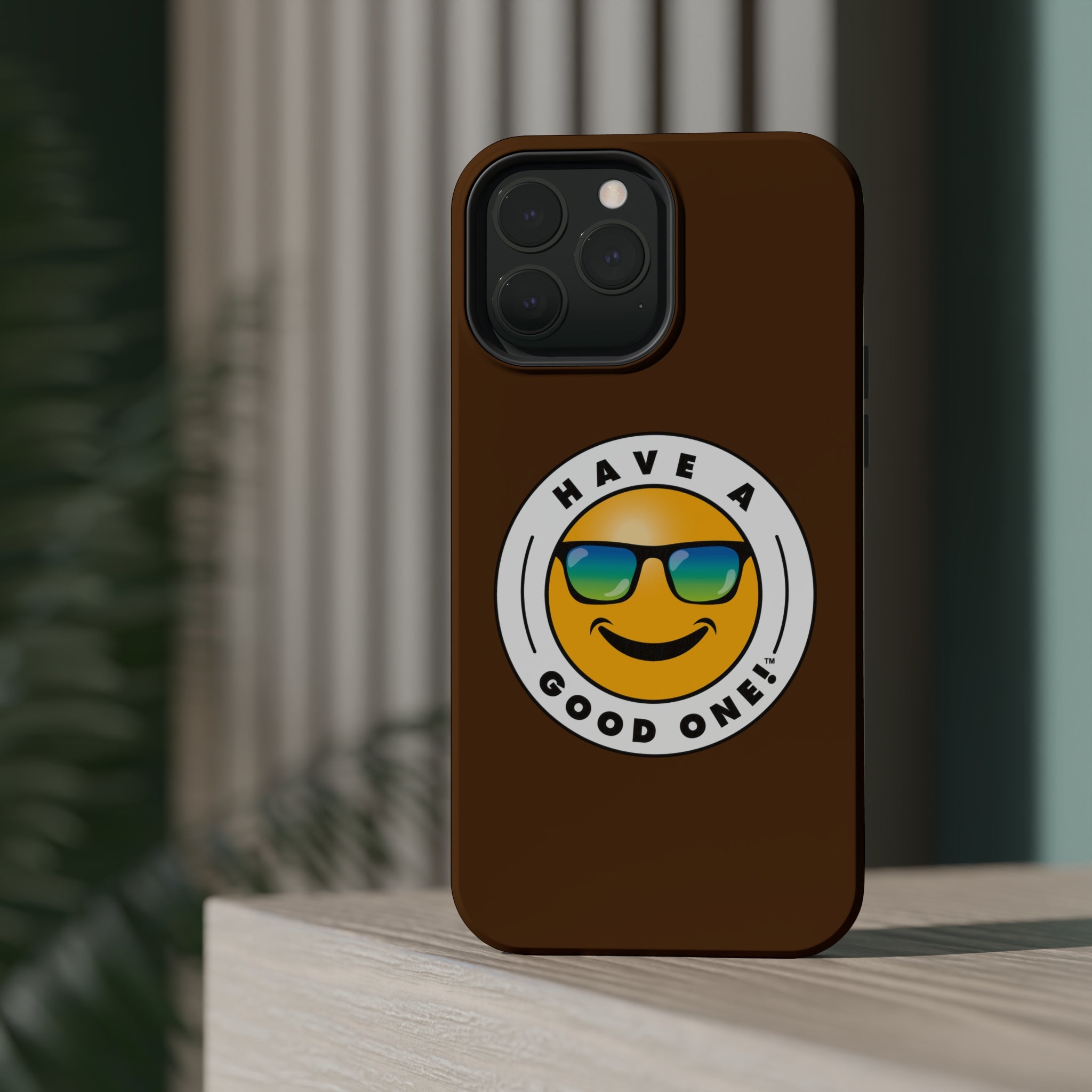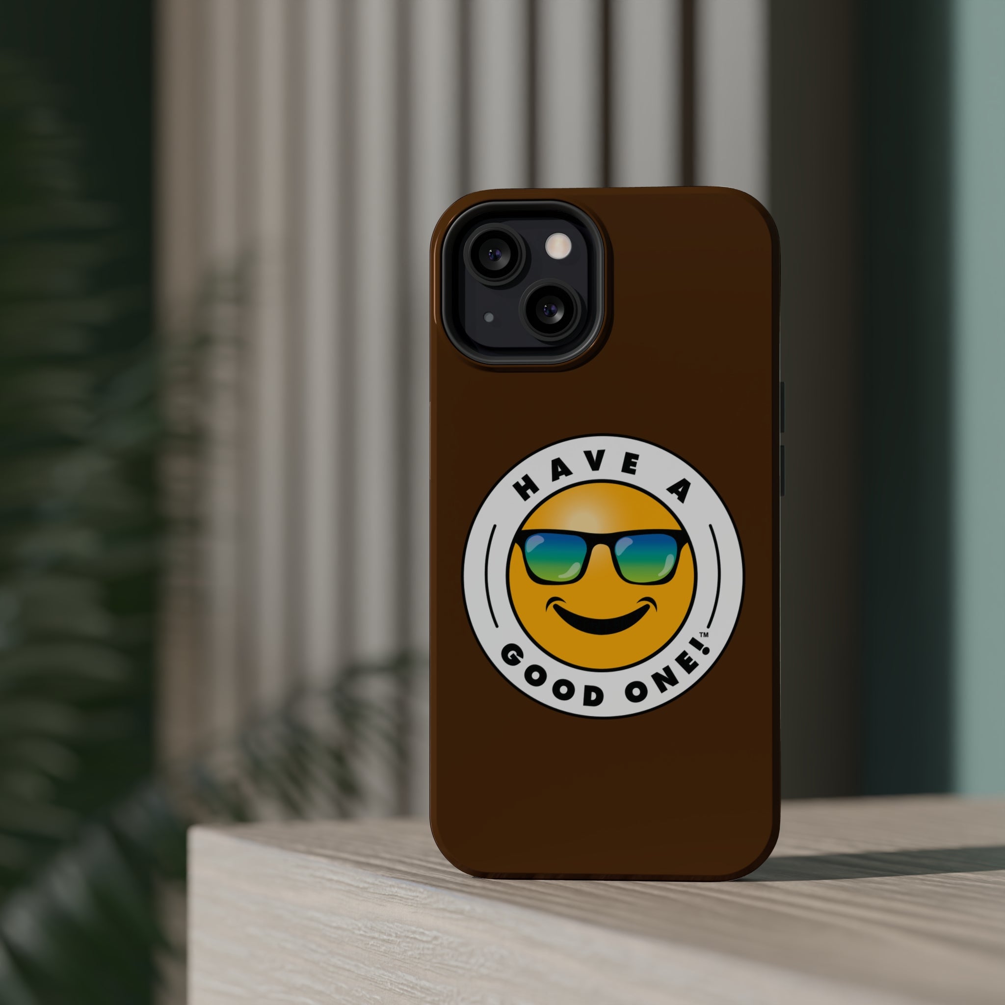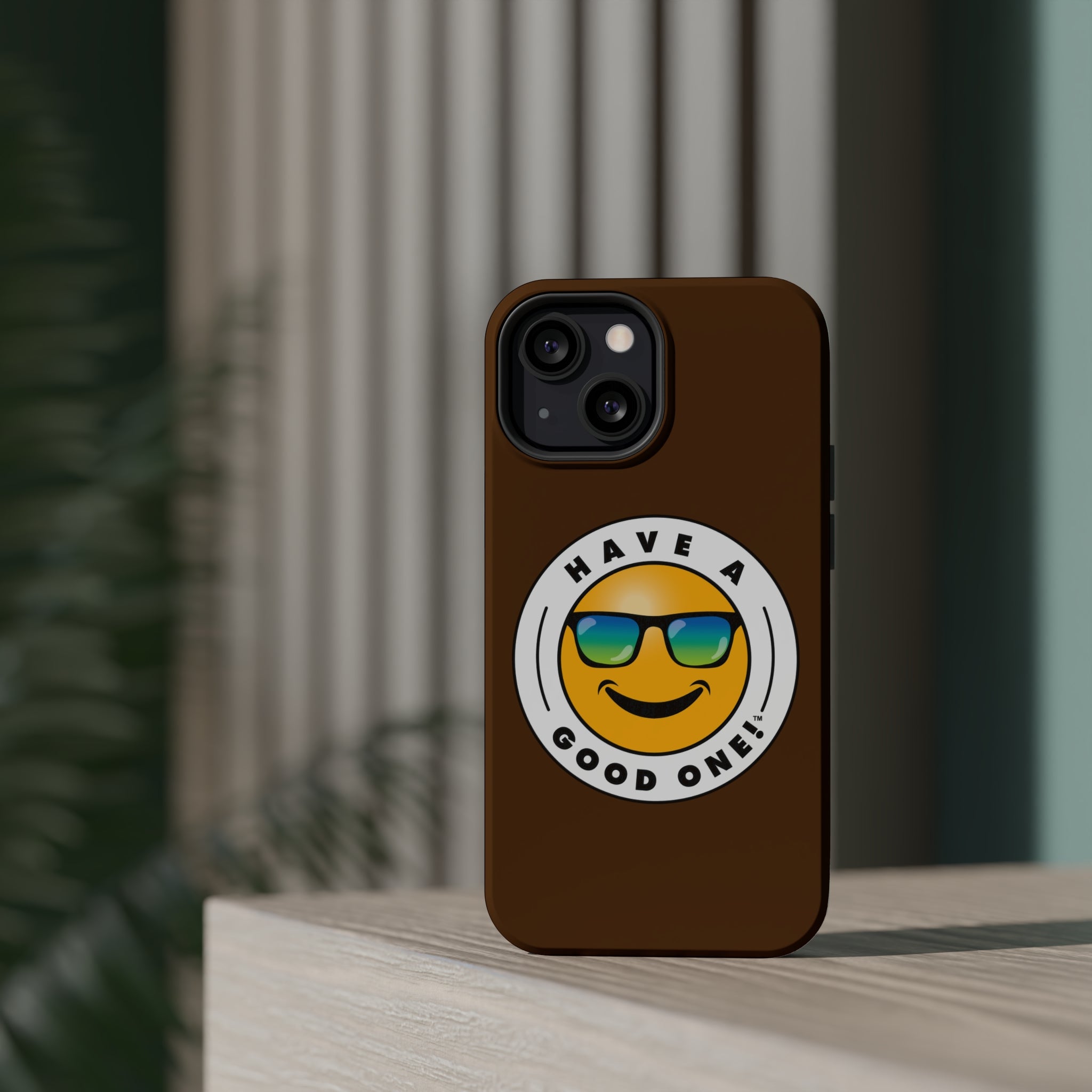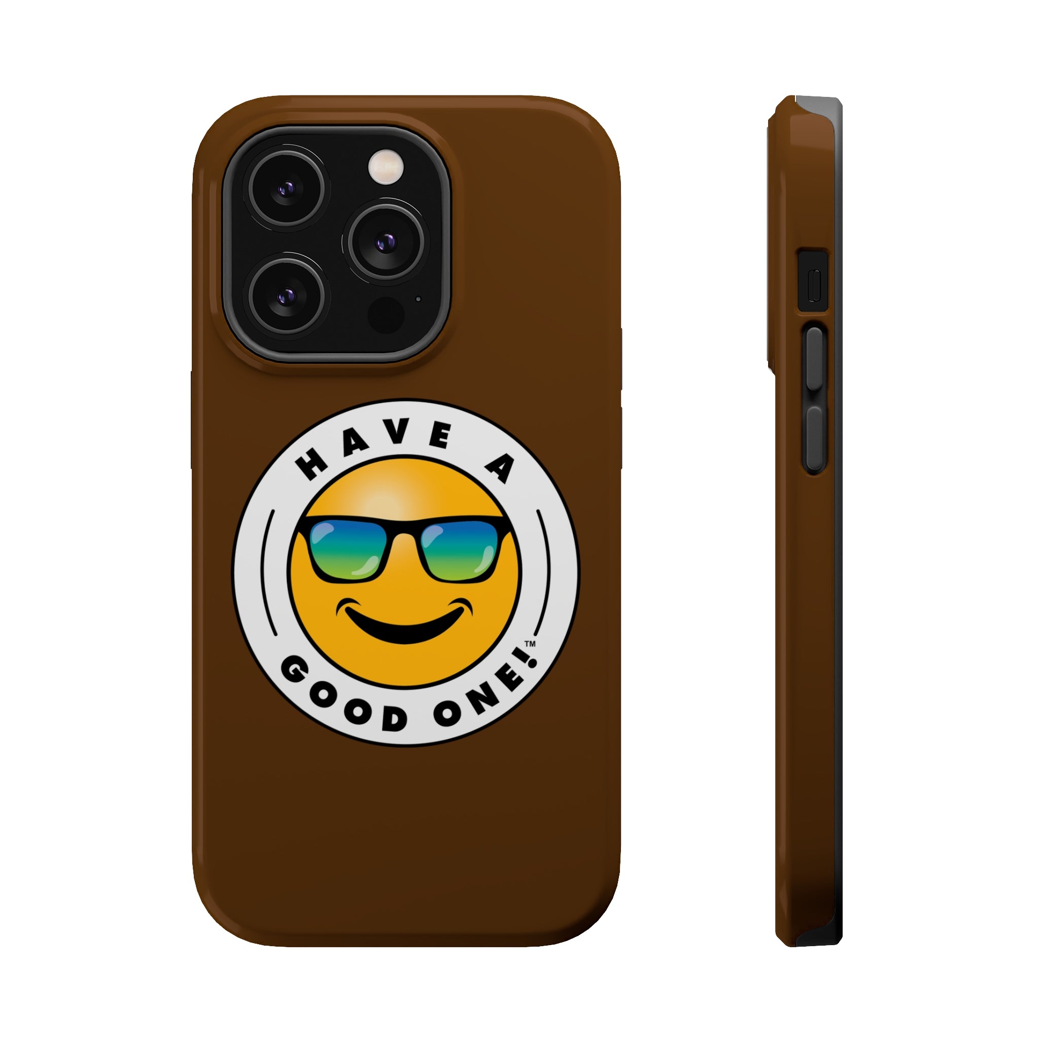 Fun On The Run MagSafe Tough Phone Case - Brown Color With Blue Green Have a Good One! Logo