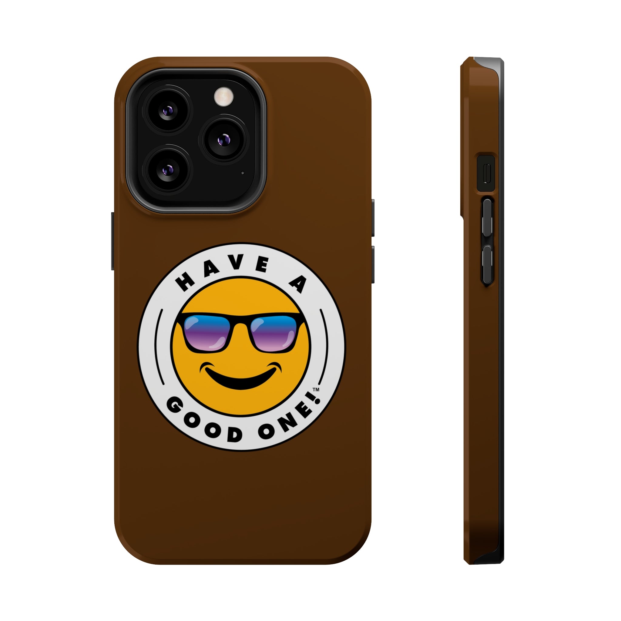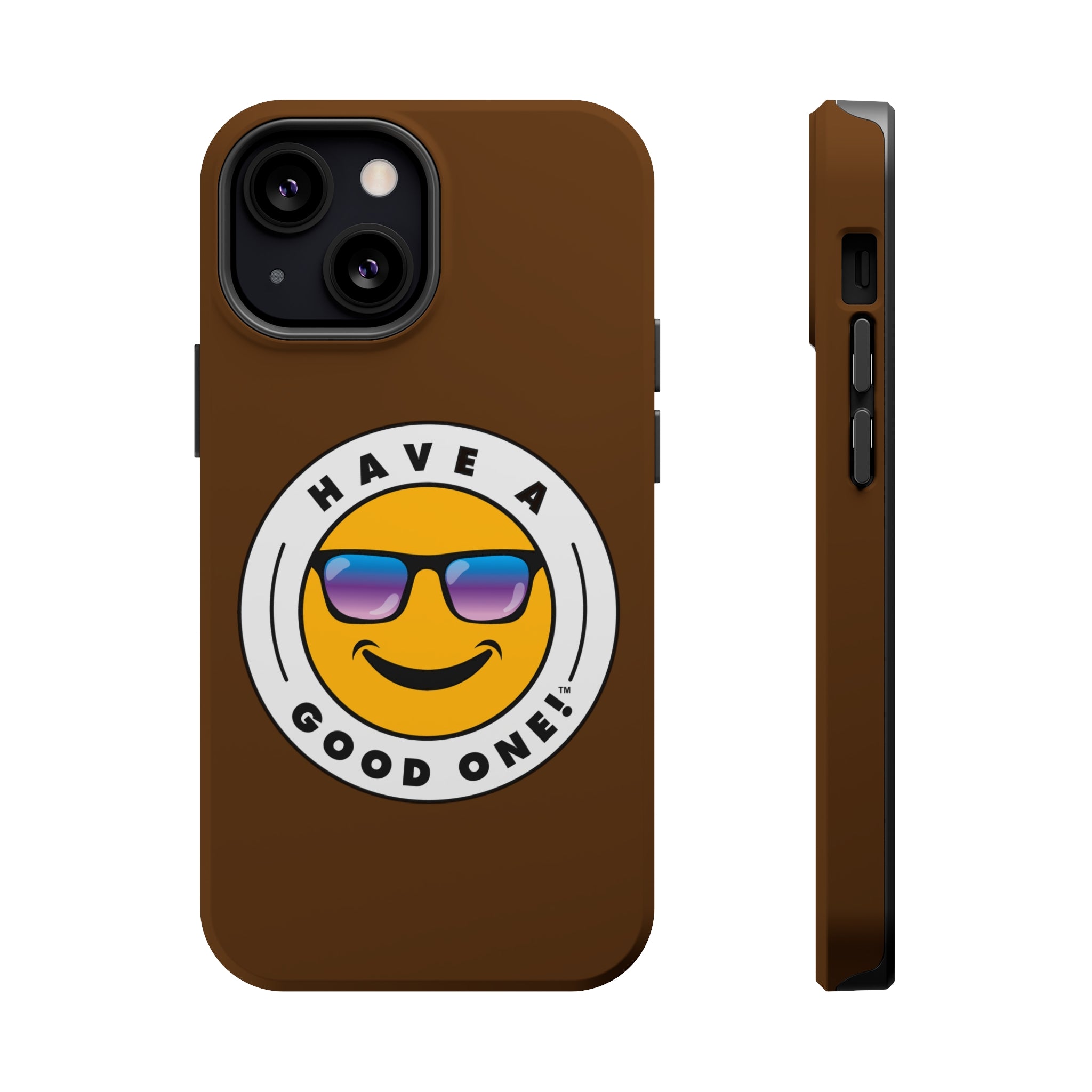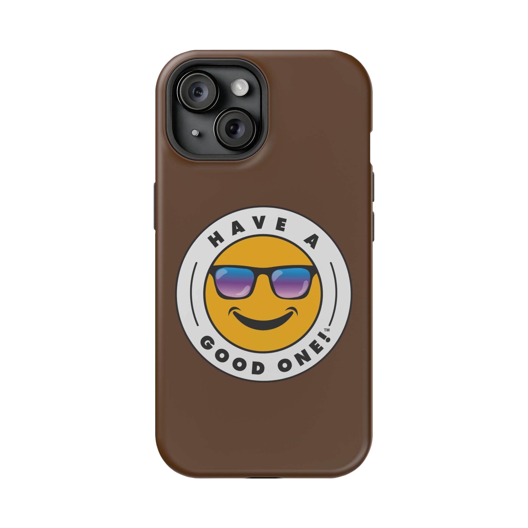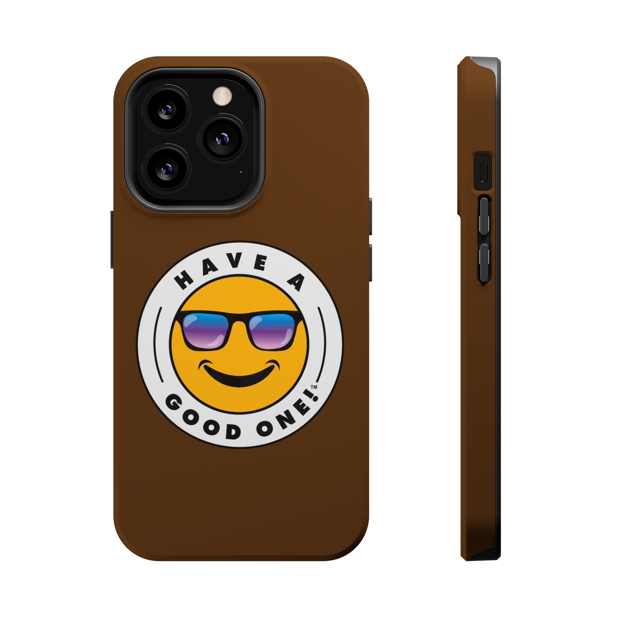 Fun On The Run MagSafe Tough Phone Case - Brown Color With Blue Purple Have a Good One! Logo