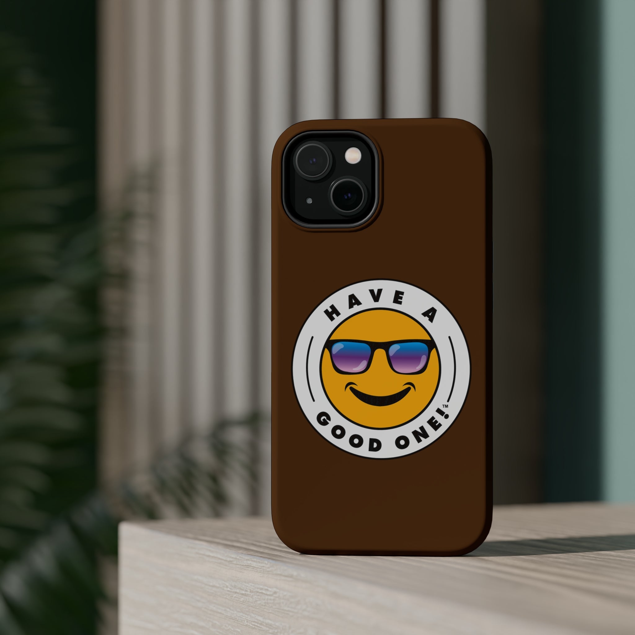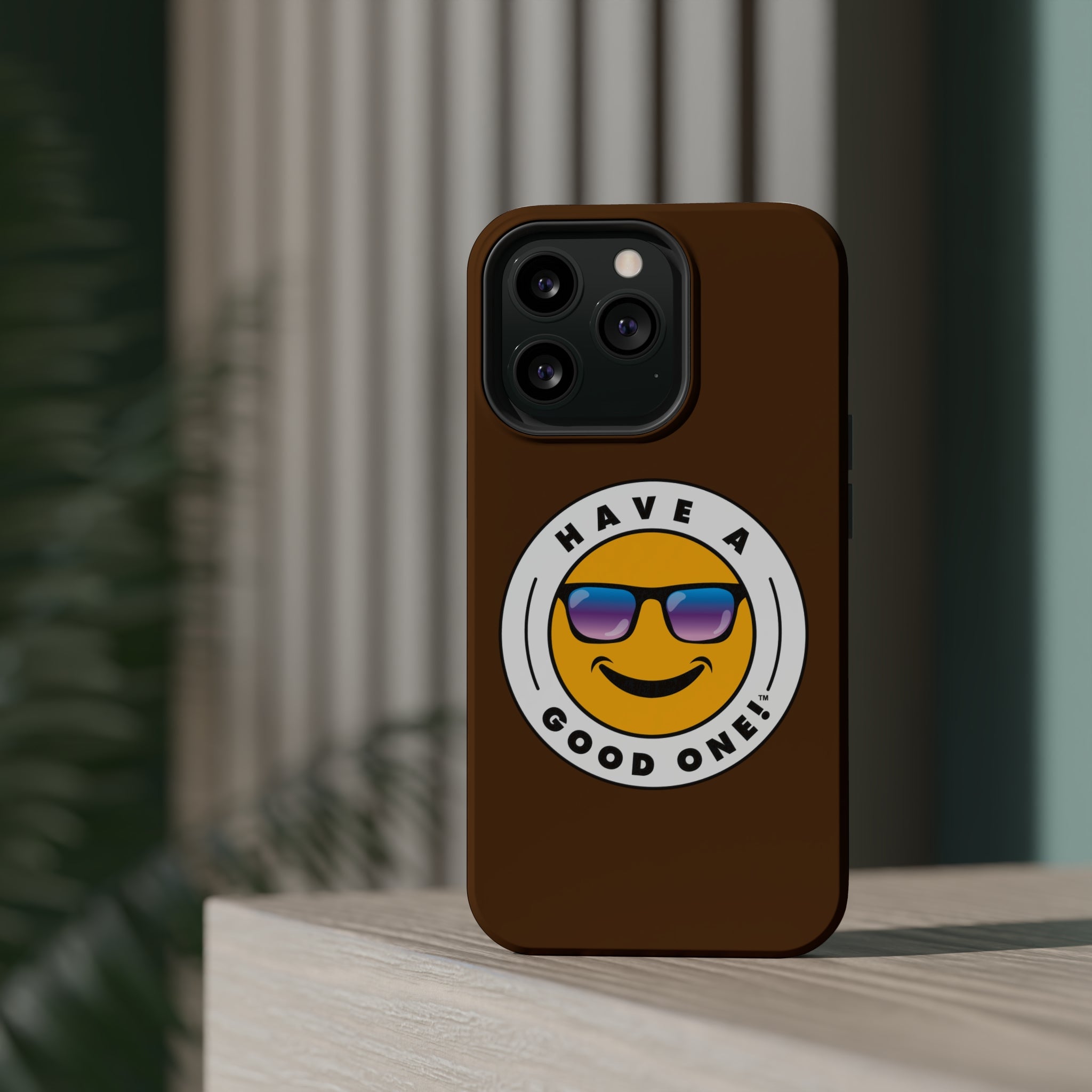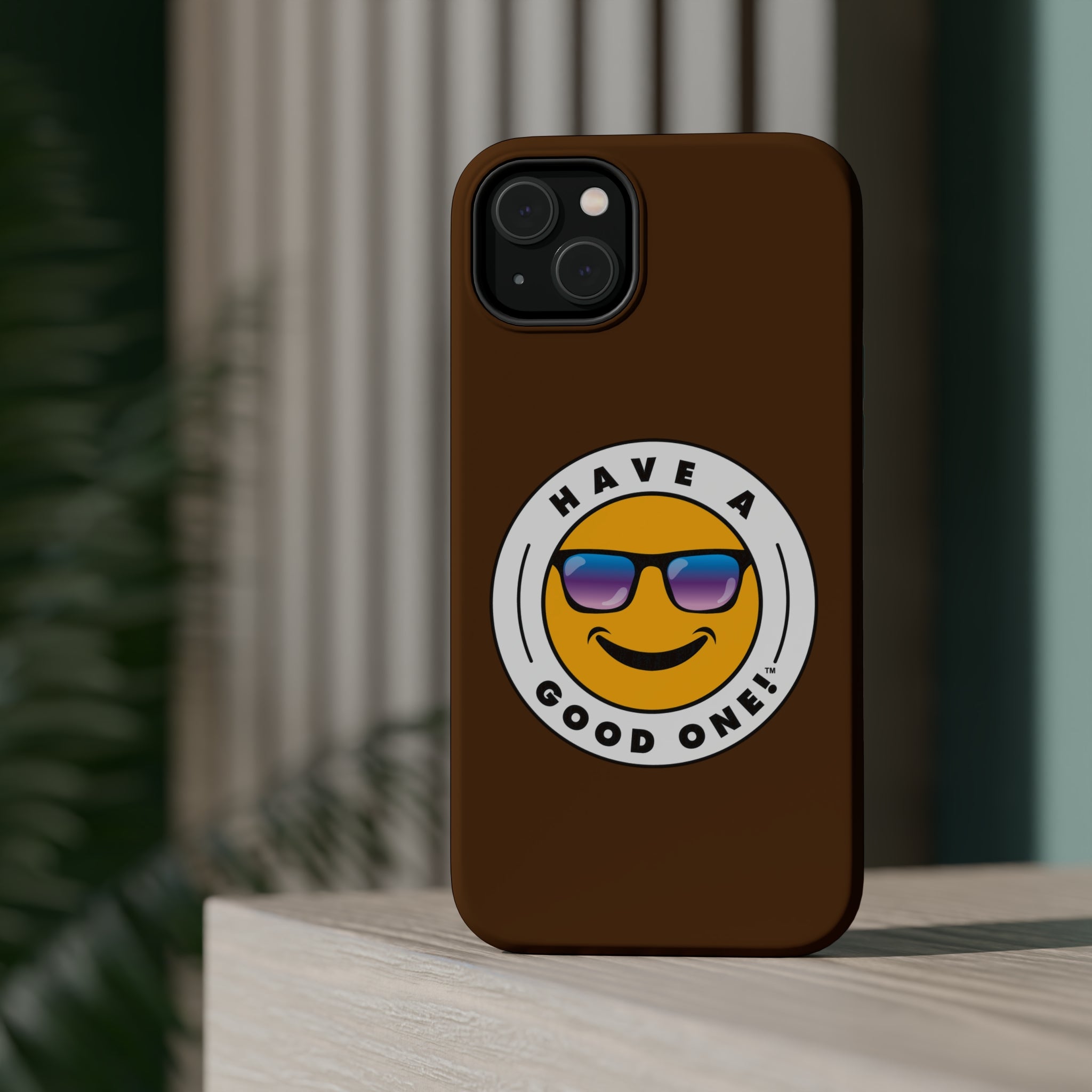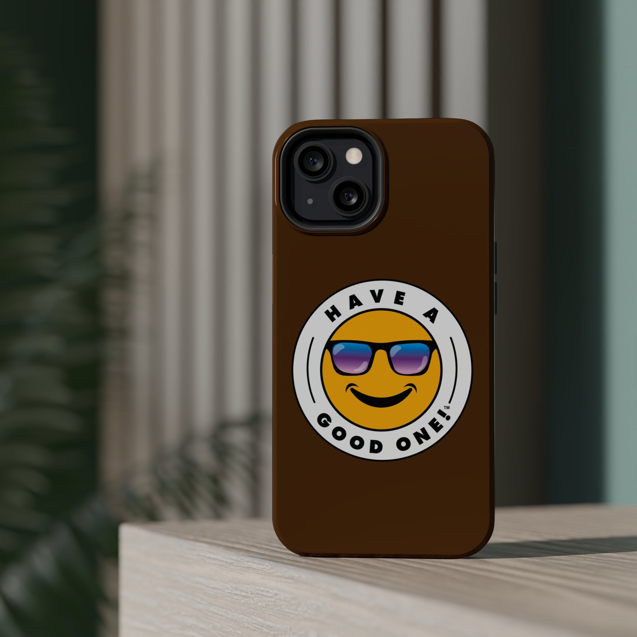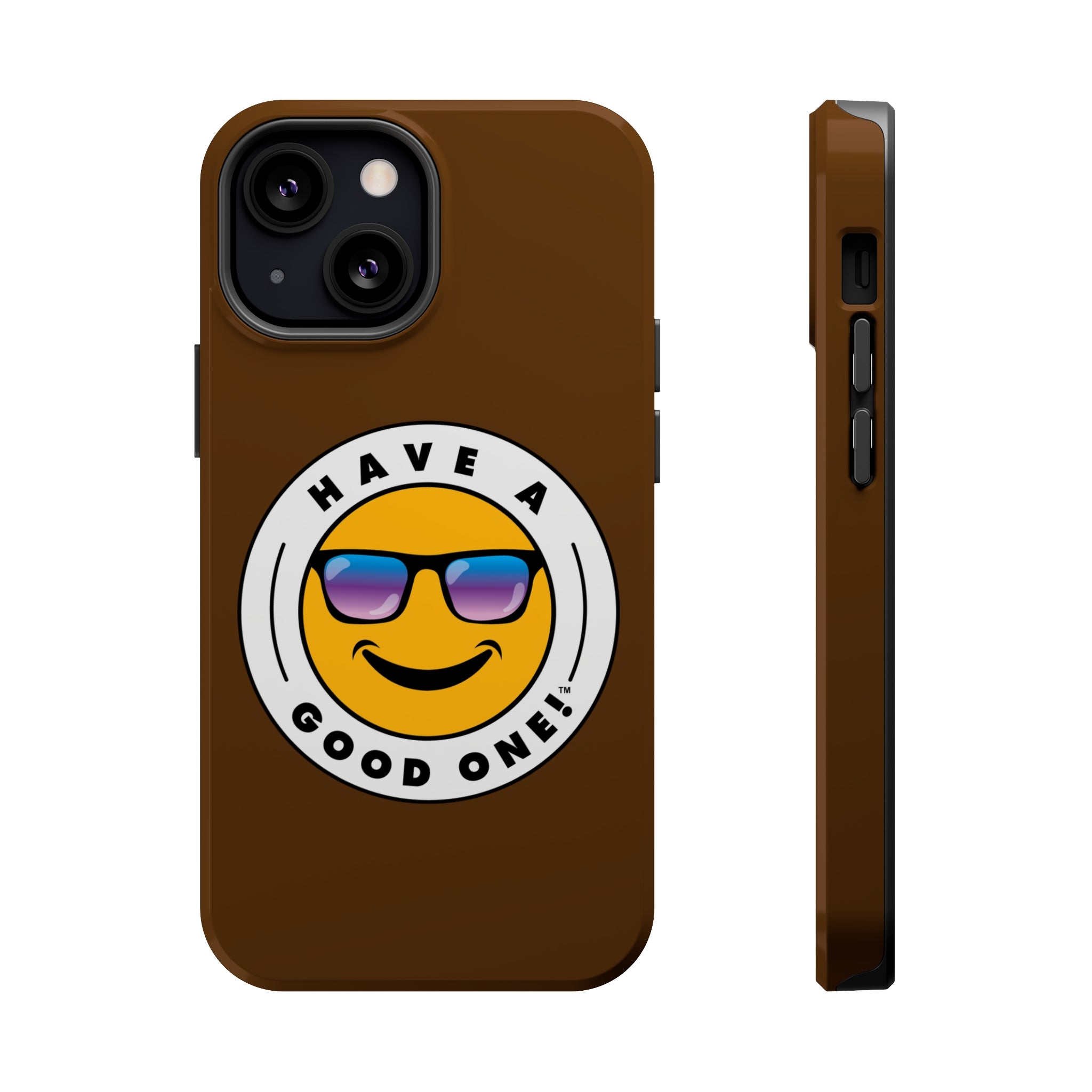 Fun On The Run MagSafe Tough Phone Case - Brown Color With Blue Purple Have a Good One! Logo