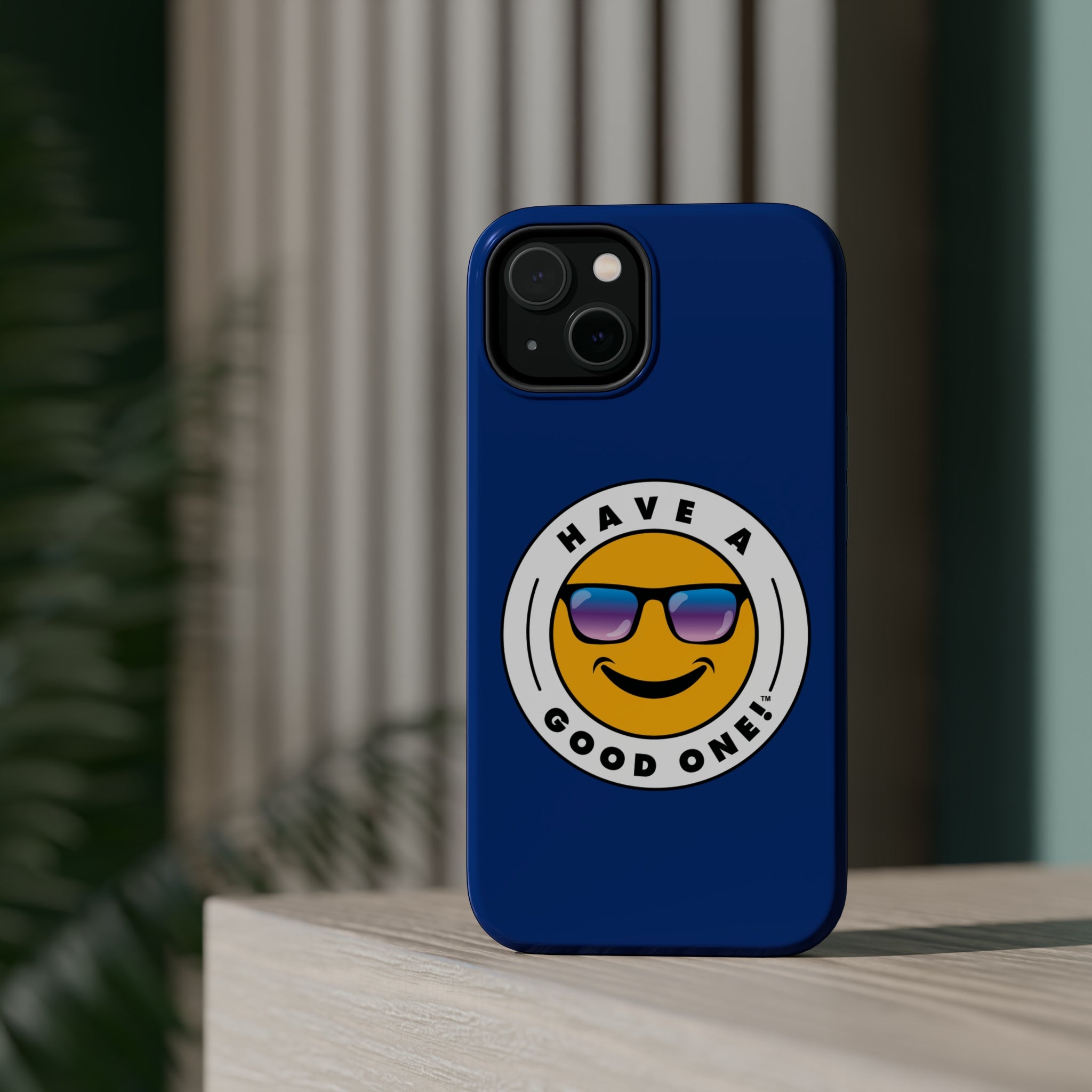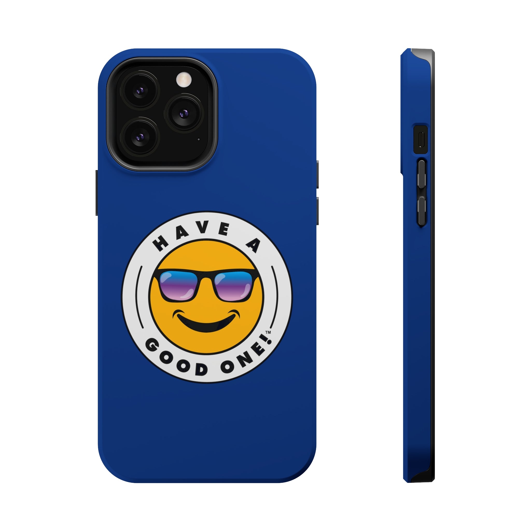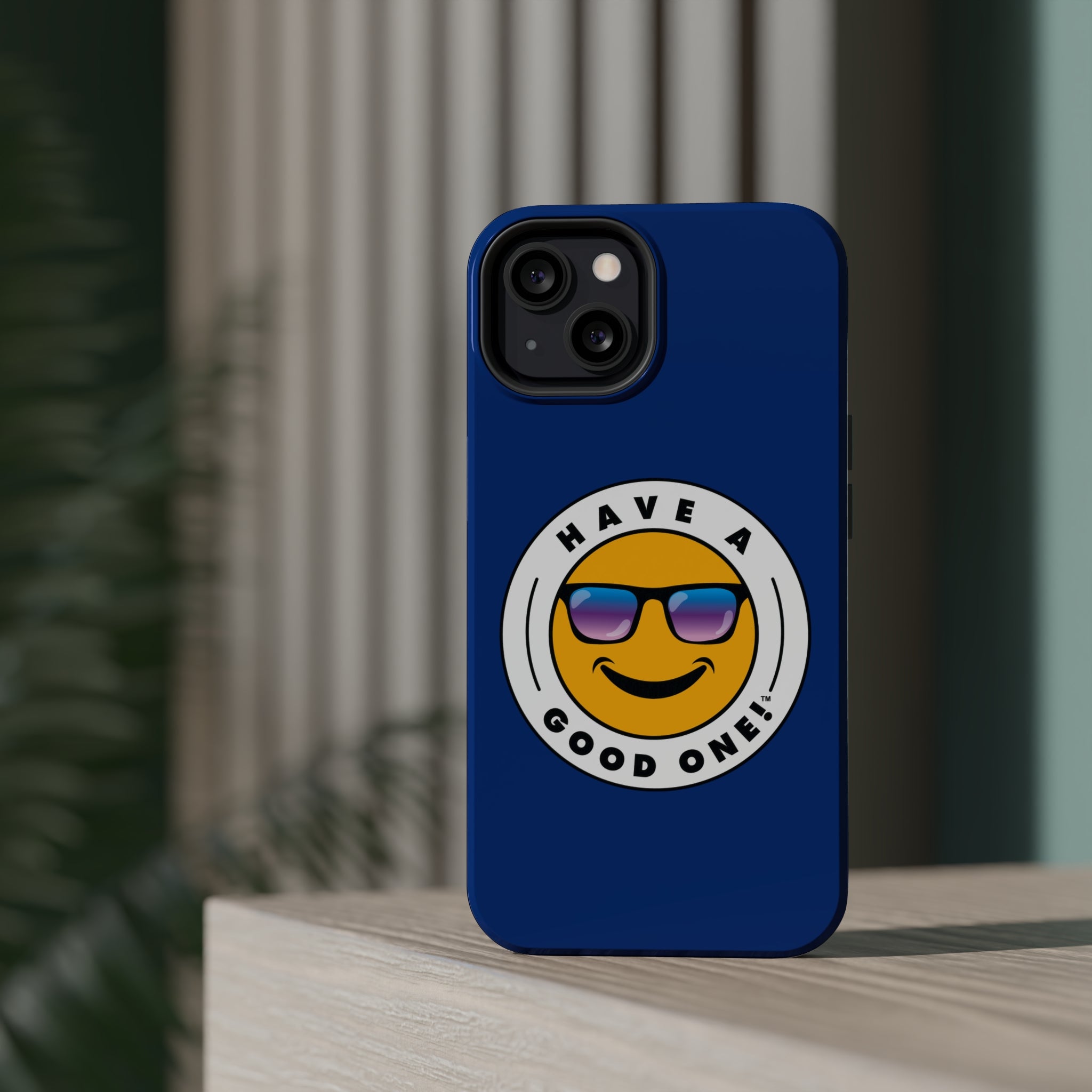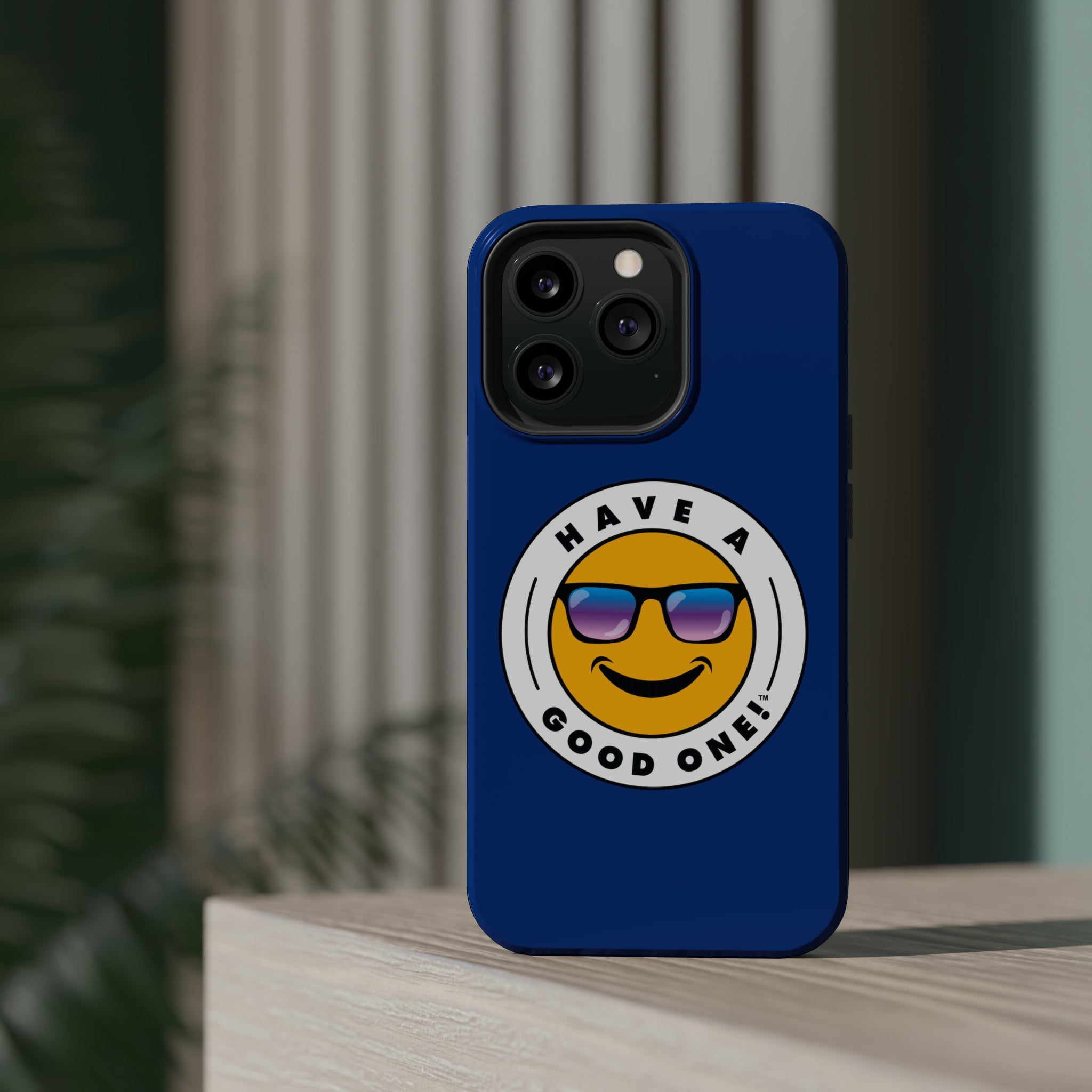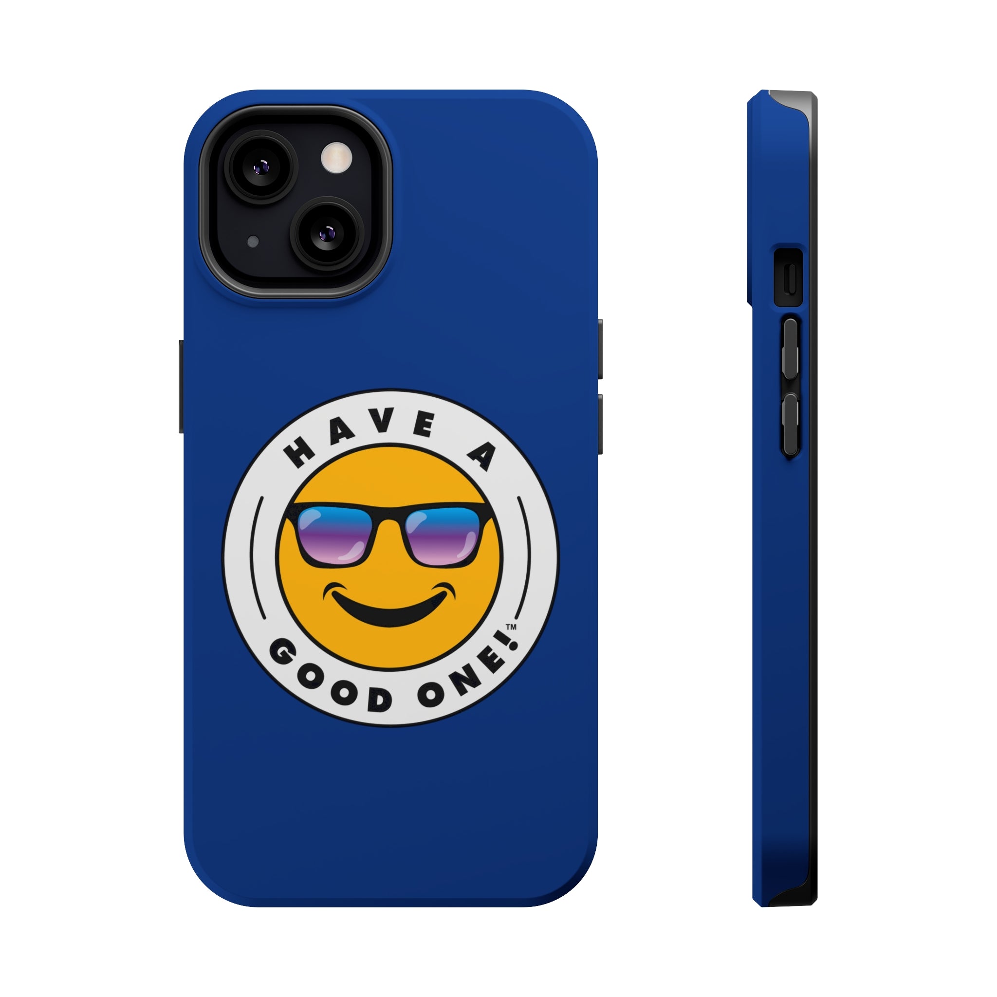 Fun On The Run MagSafe Tough Phone Case - Dark Blue Color With Blue Purple Have a Good One! Logo
