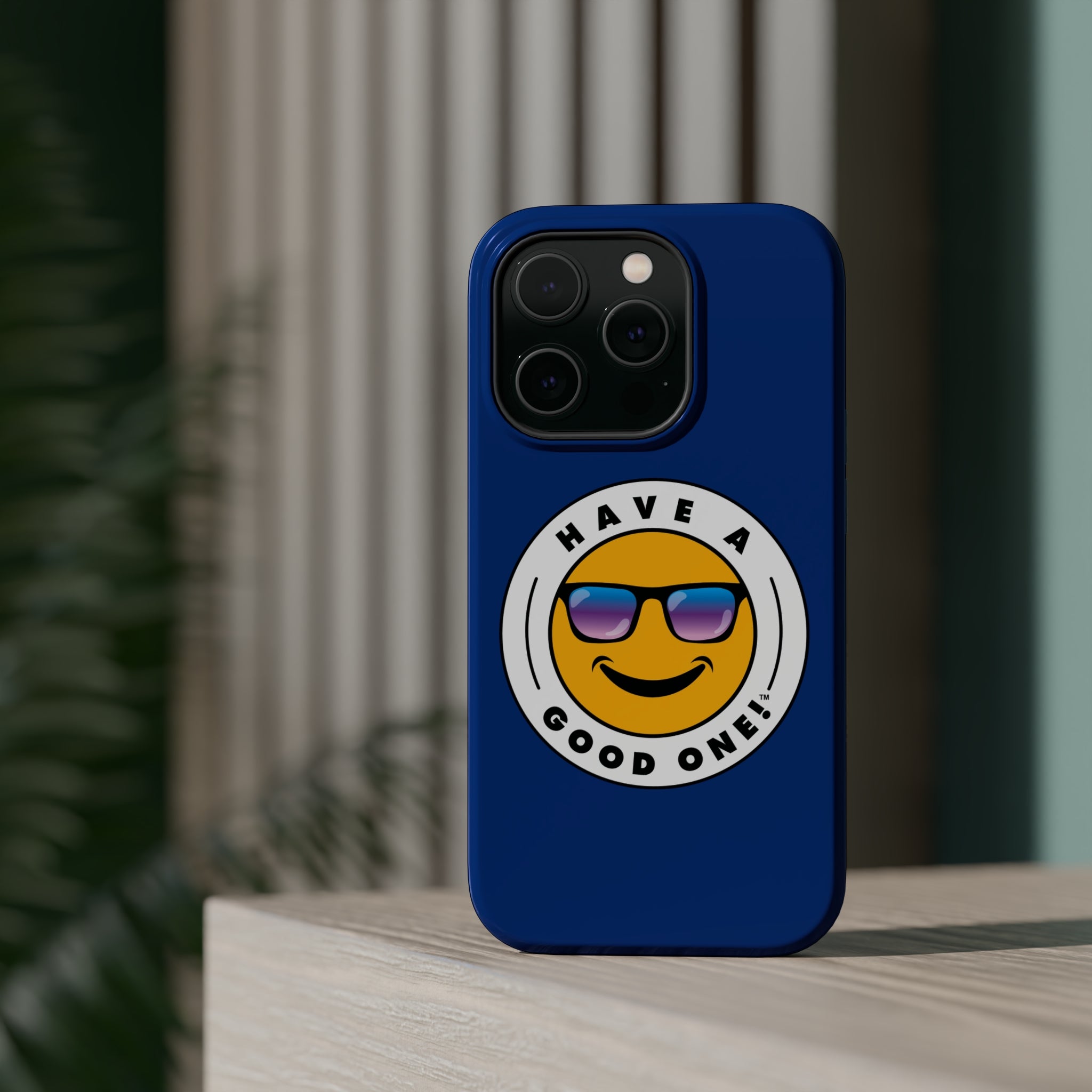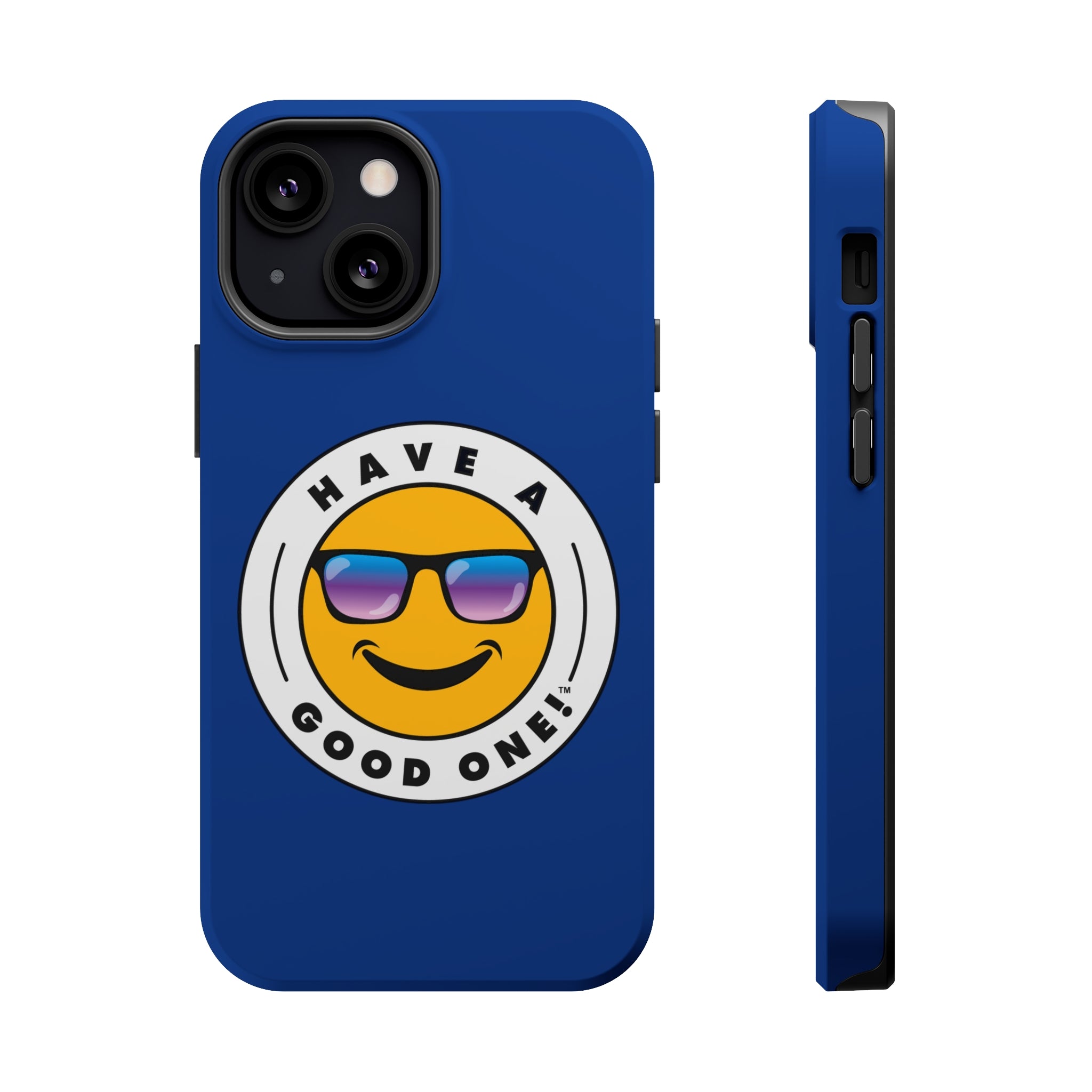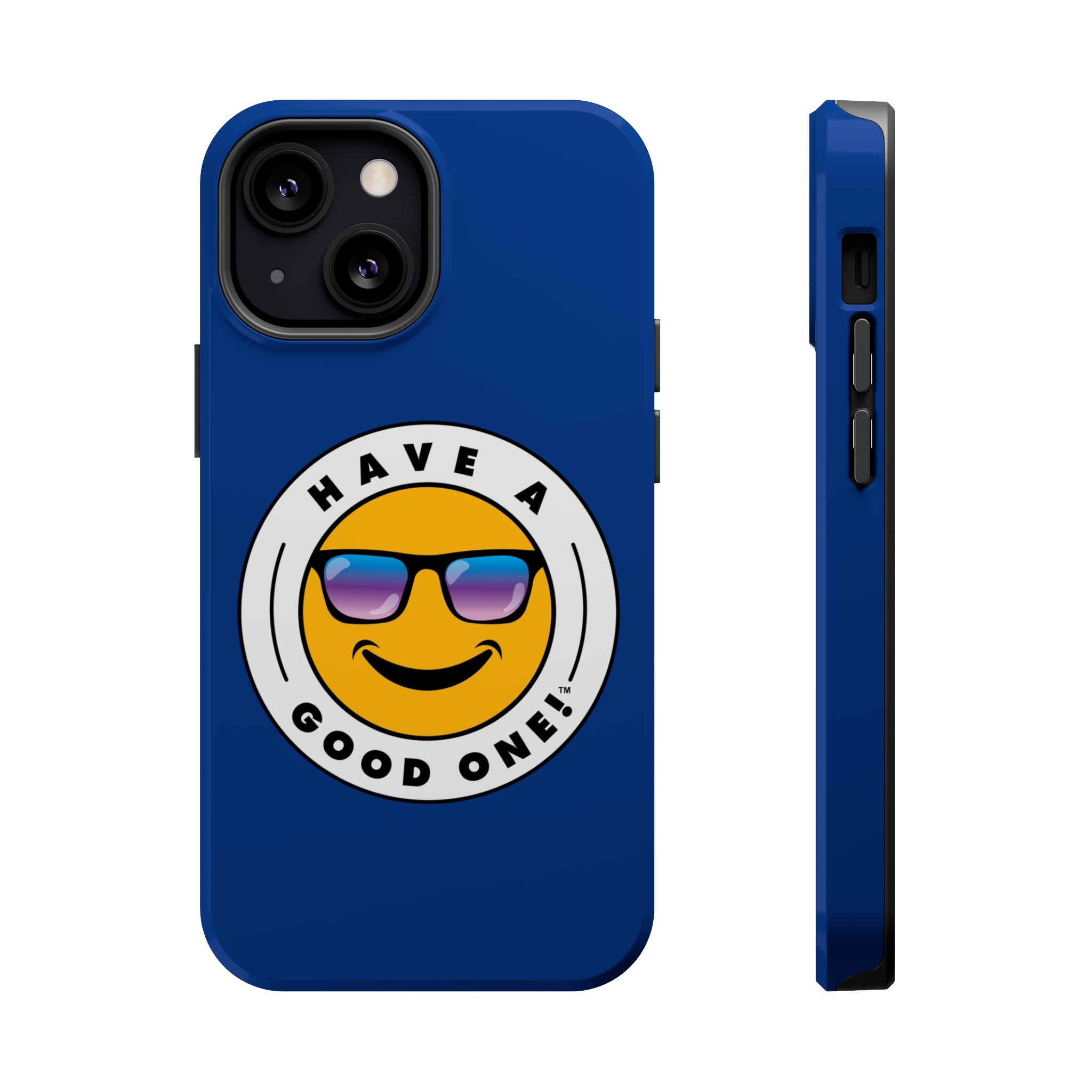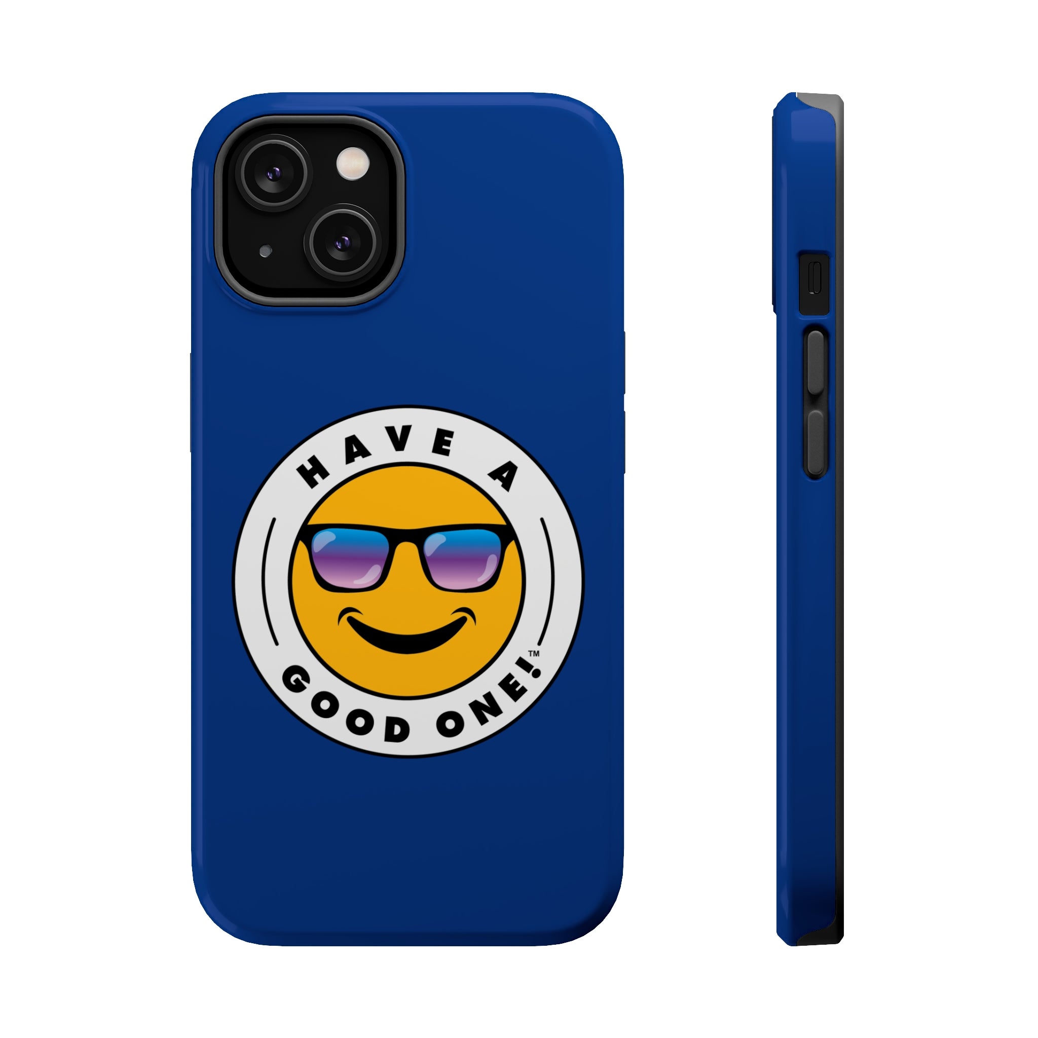 Fun On The Run MagSafe Tough Phone Case - Dark Blue Color With Blue Purple Have a Good One! Logo